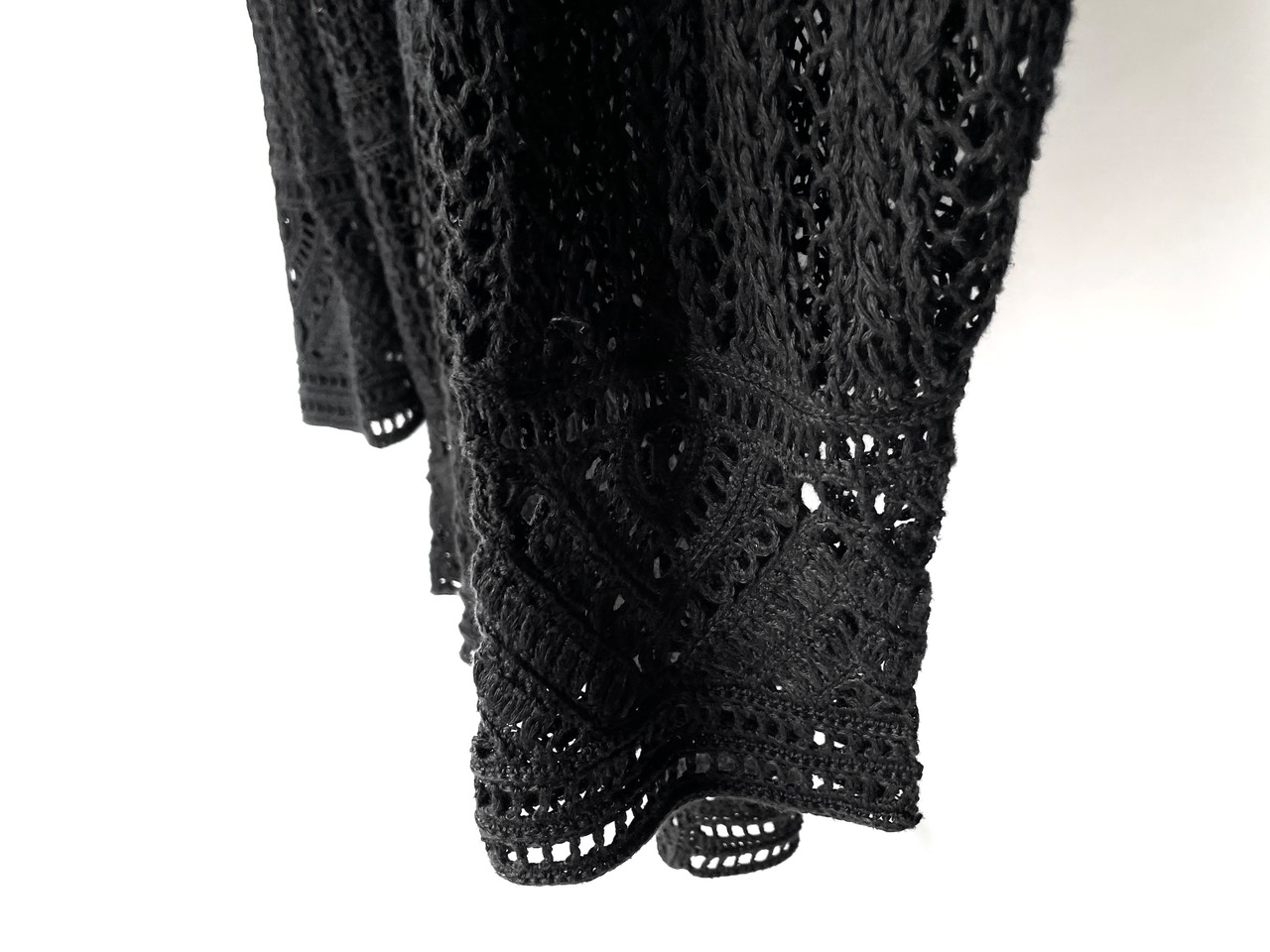 Hand knit with a knitting pattern with large gaps.