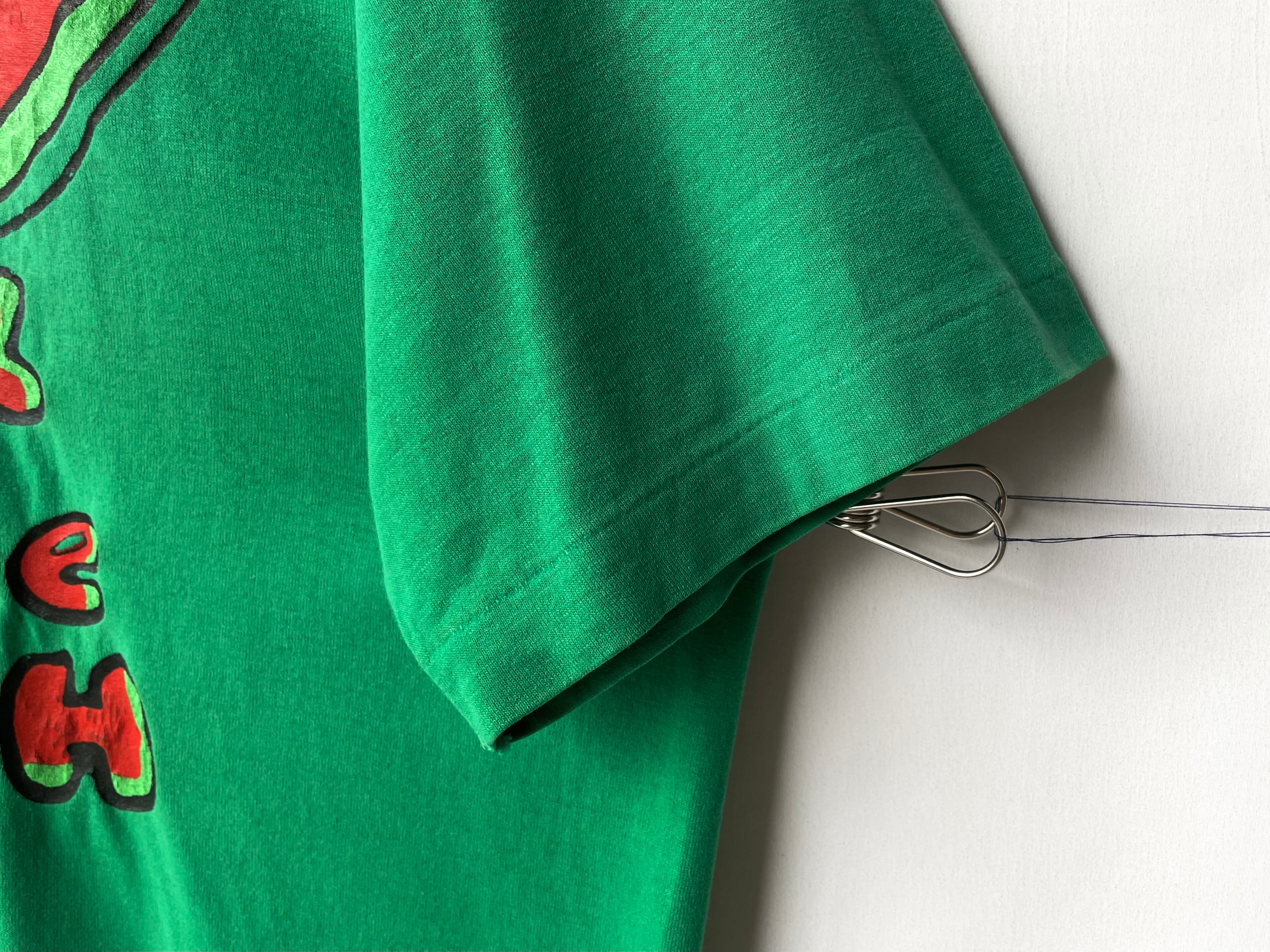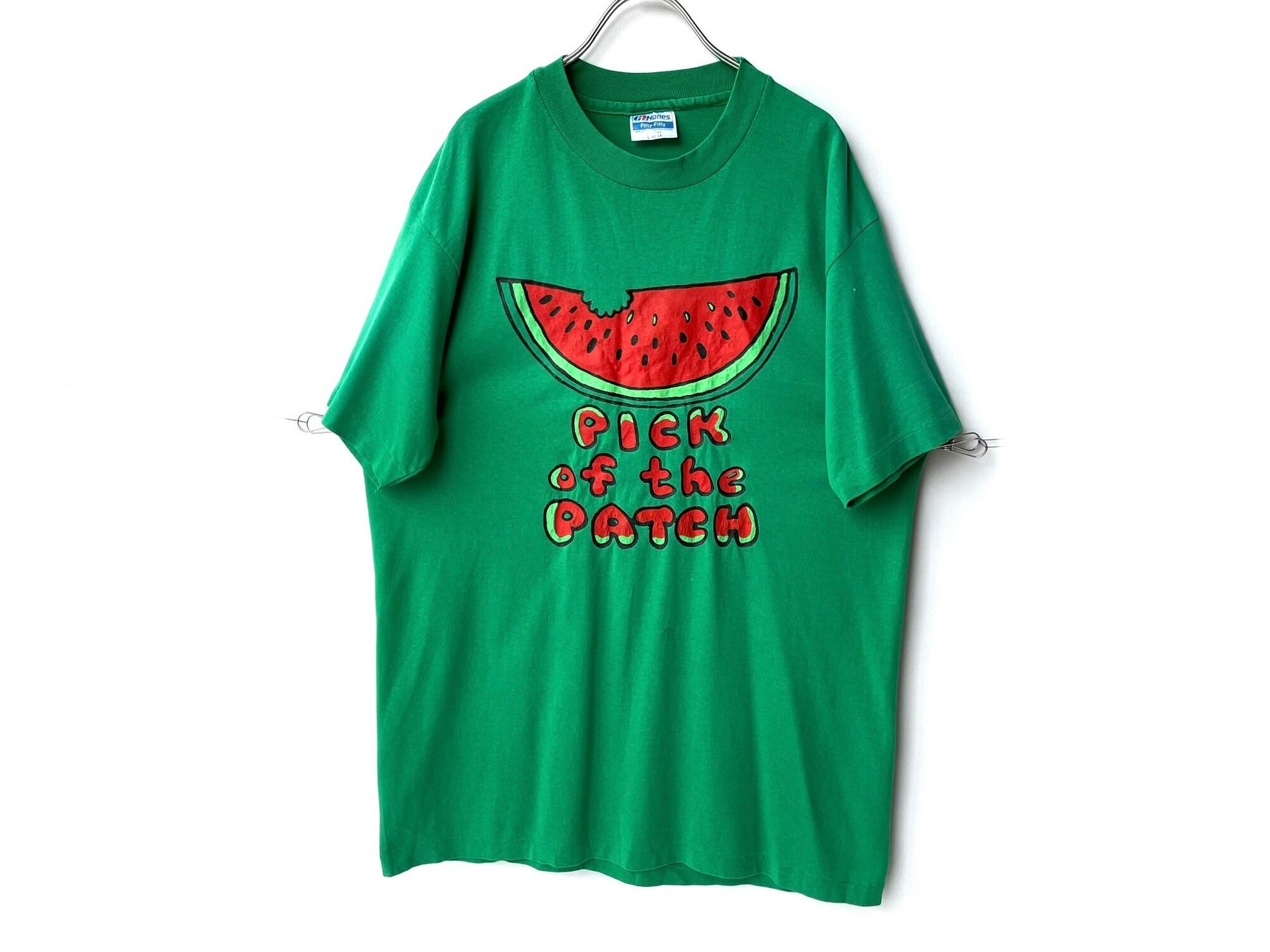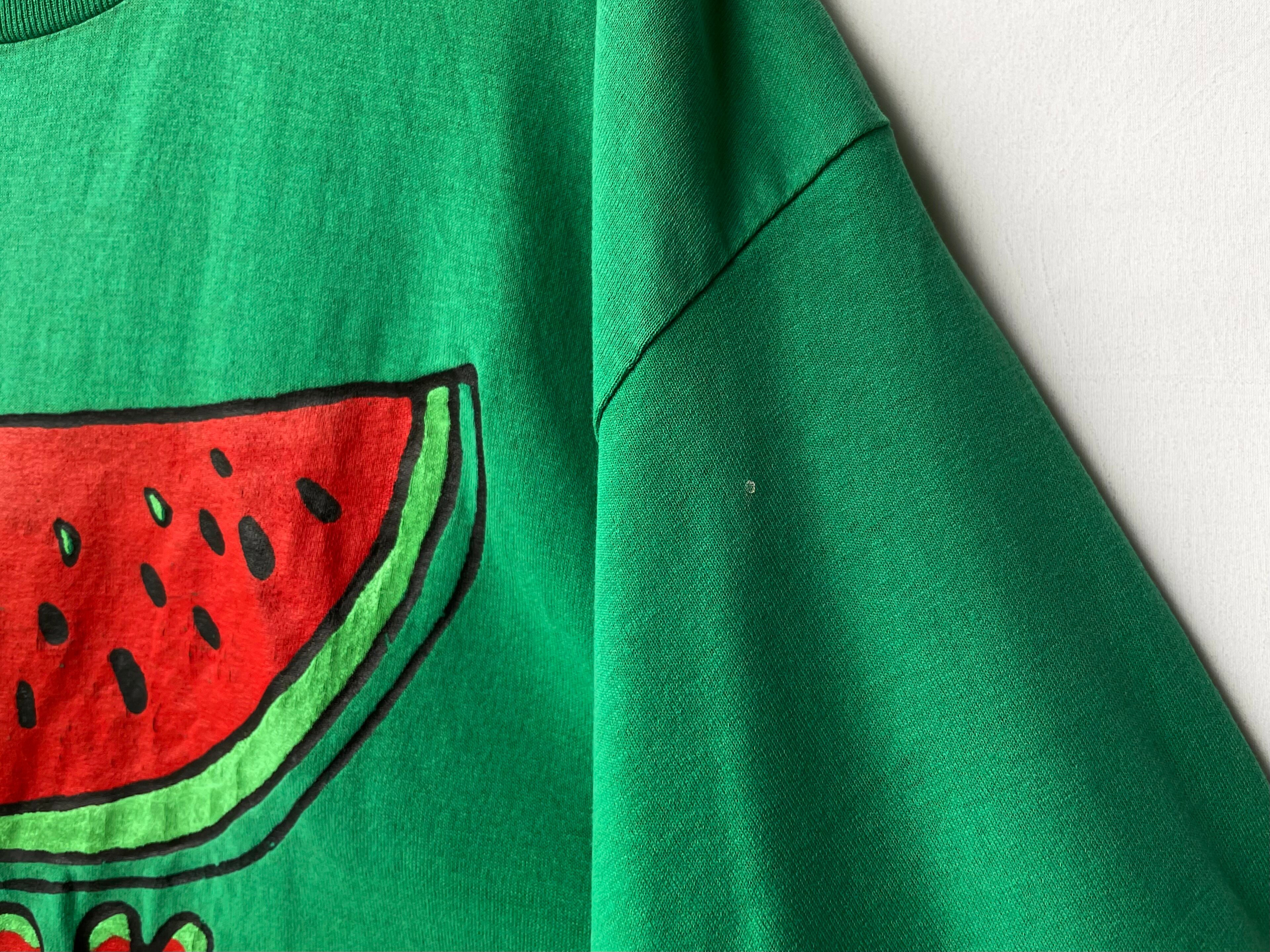 袖裾共にシングルステッチの古いボディに、好きが伝わるスイカプリント。
