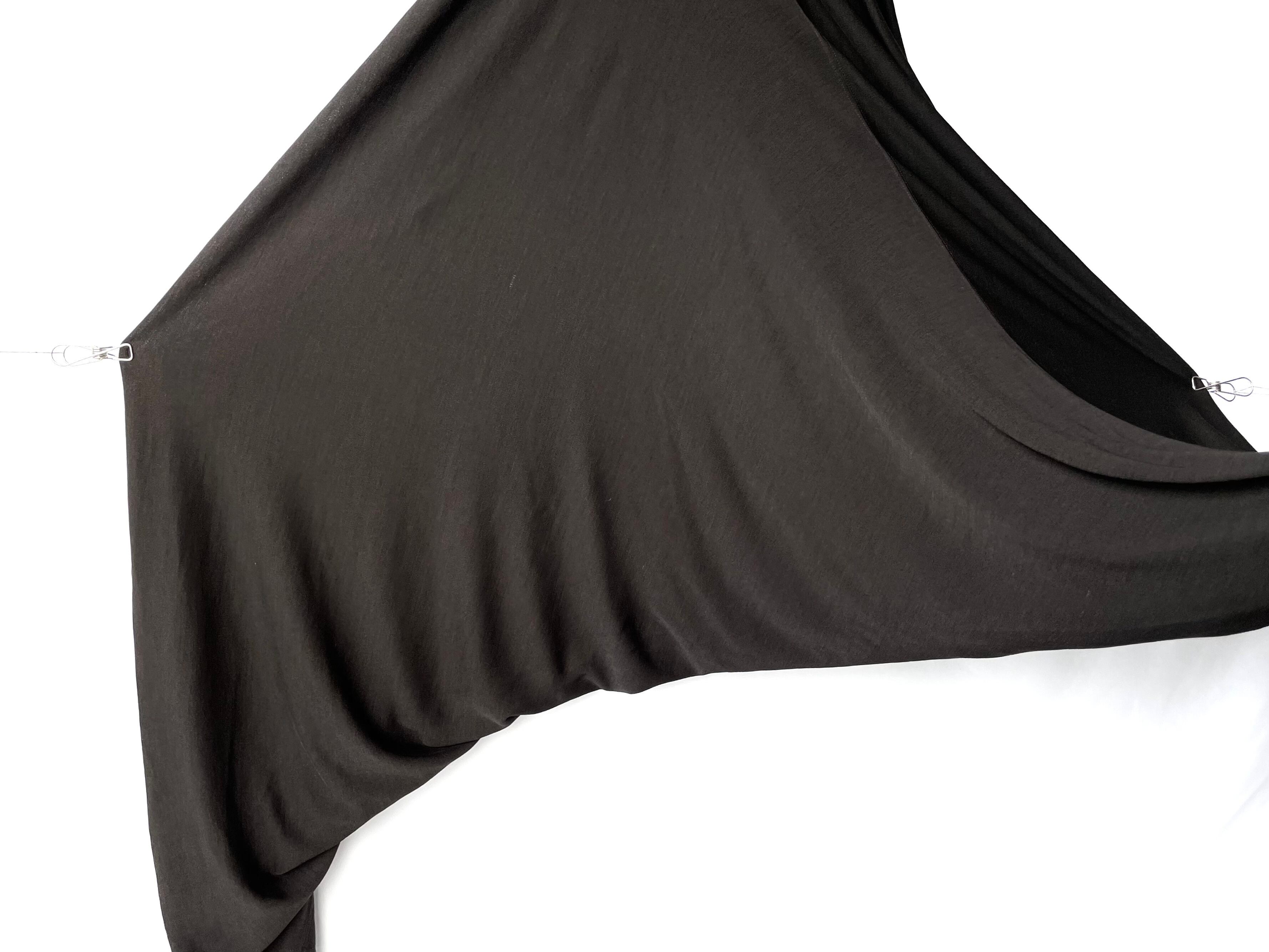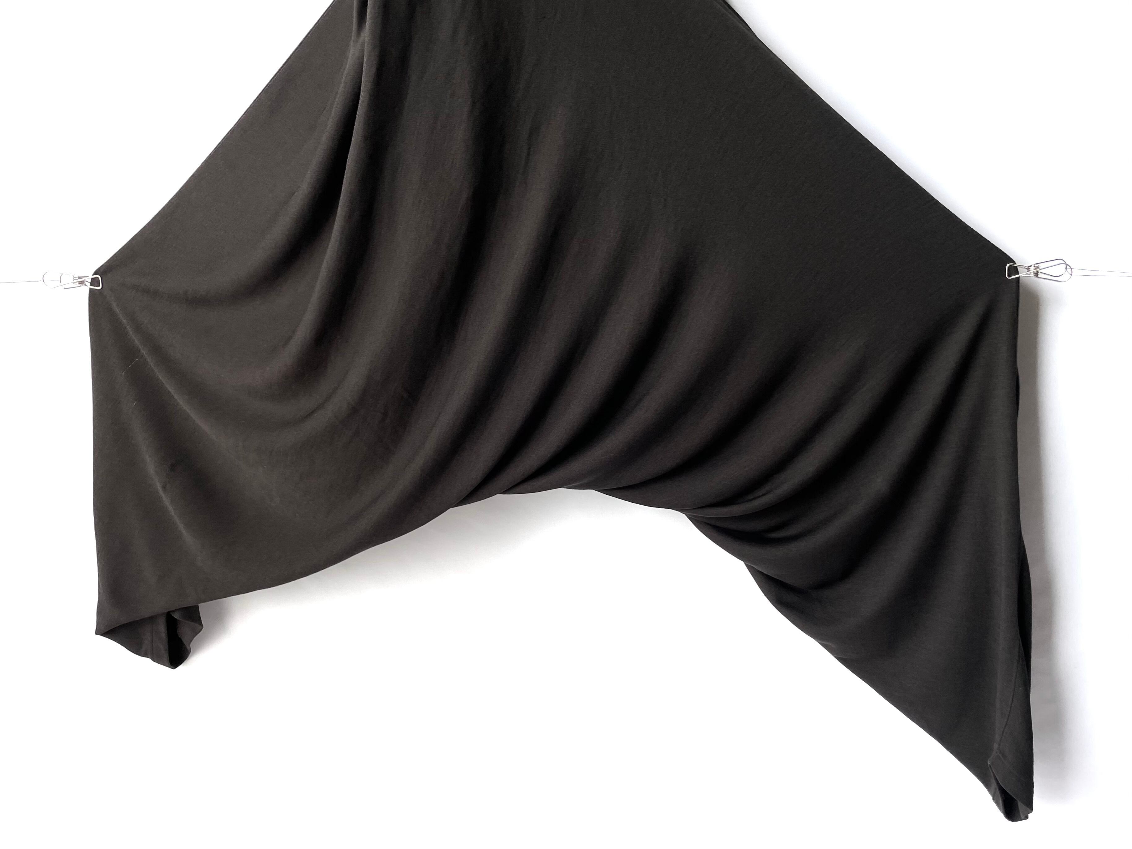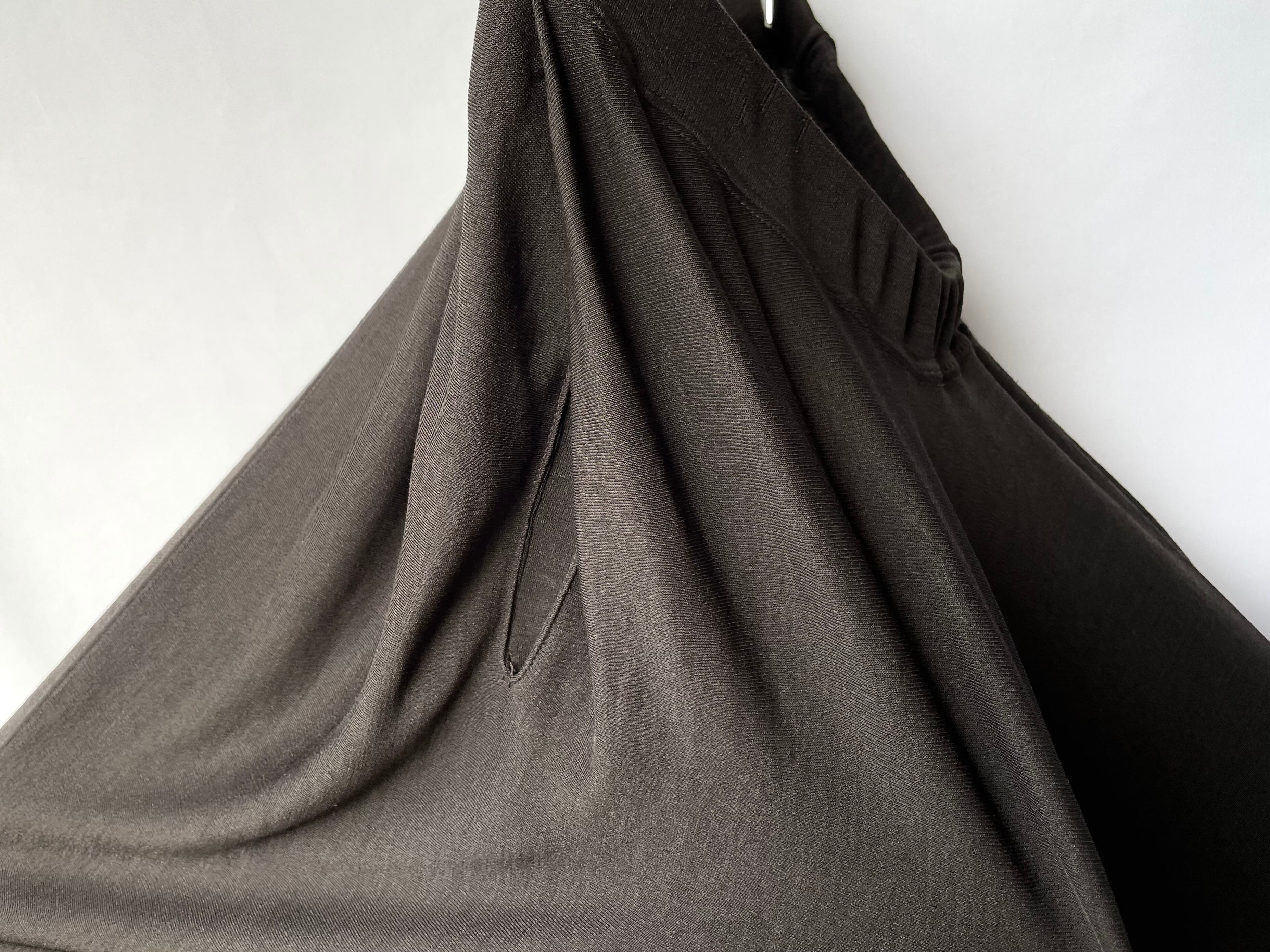 柔らかな手触り、綺麗なドレープの生まれる比較的薄手のニット生地。