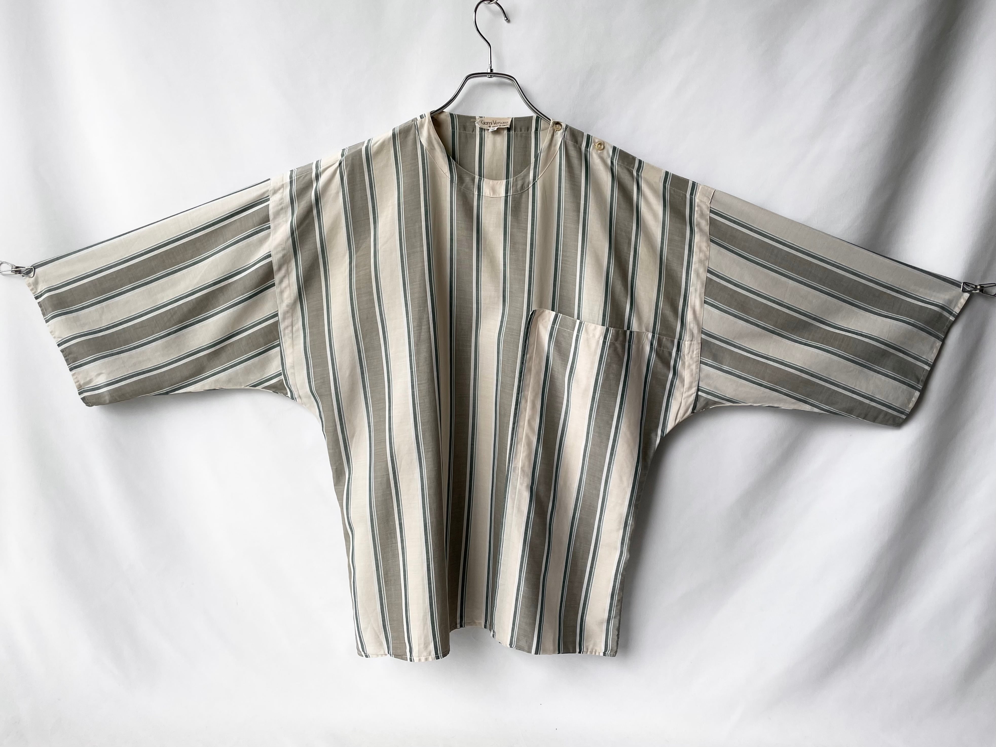 ドロップショルダーのリラックスシルエットに、身頃半分程を占める5-6部袖のワイドスリーブ。