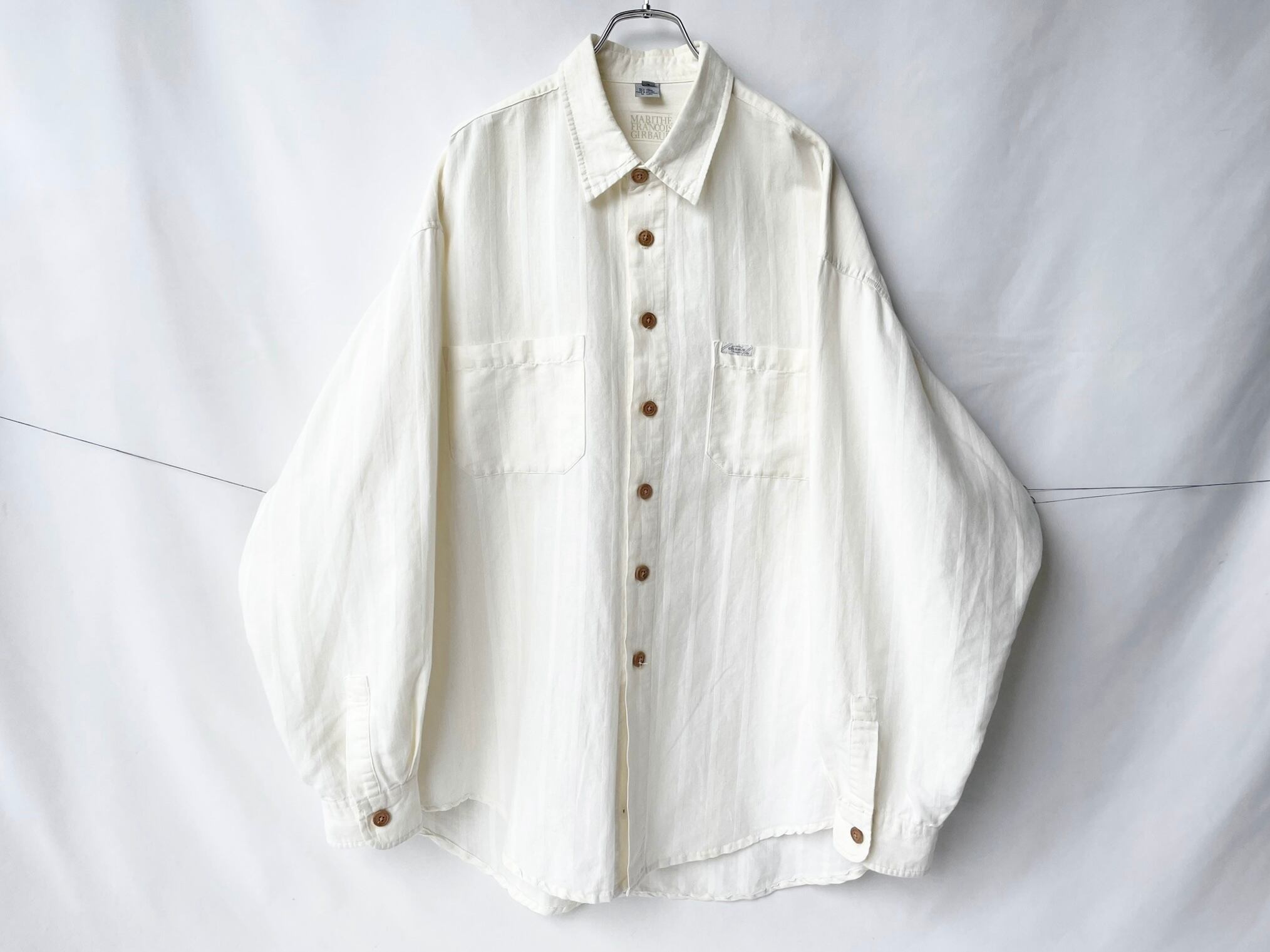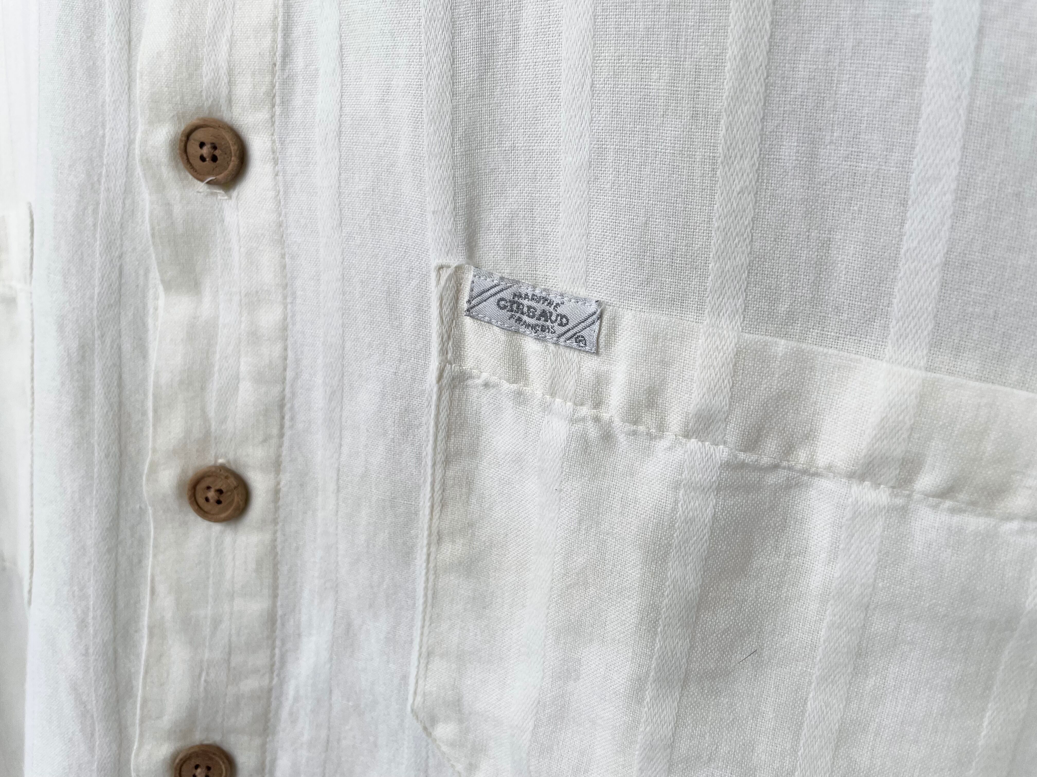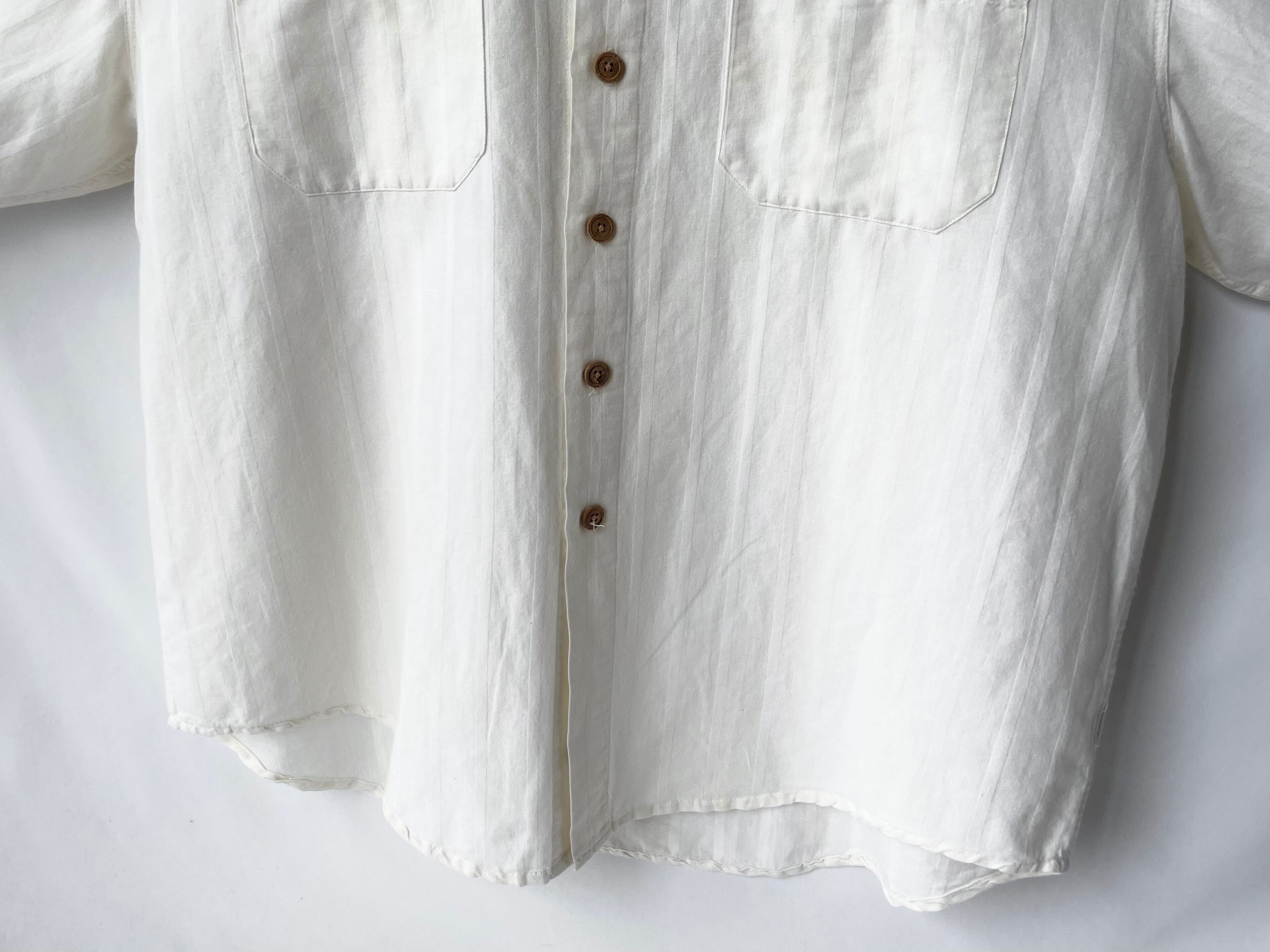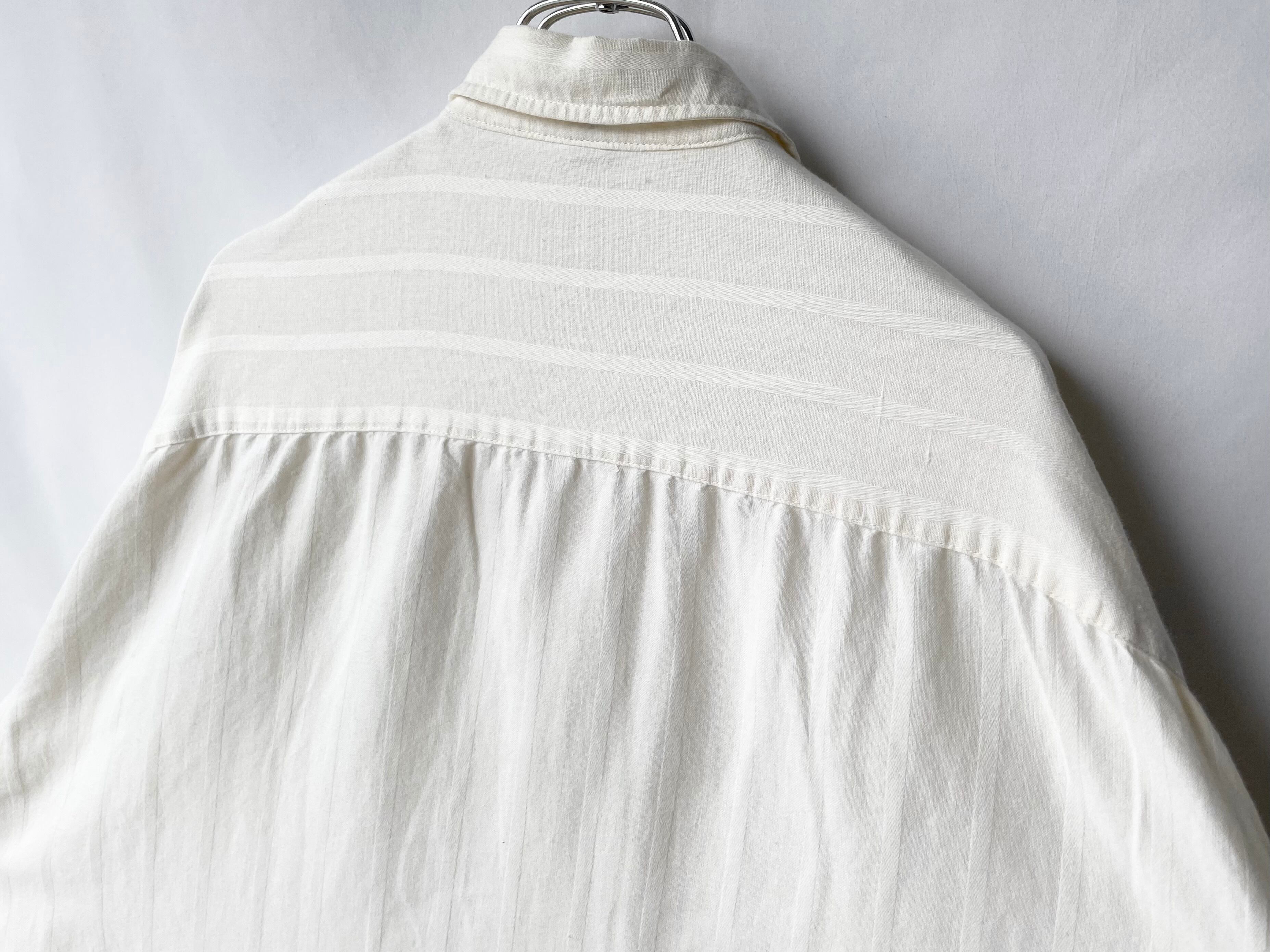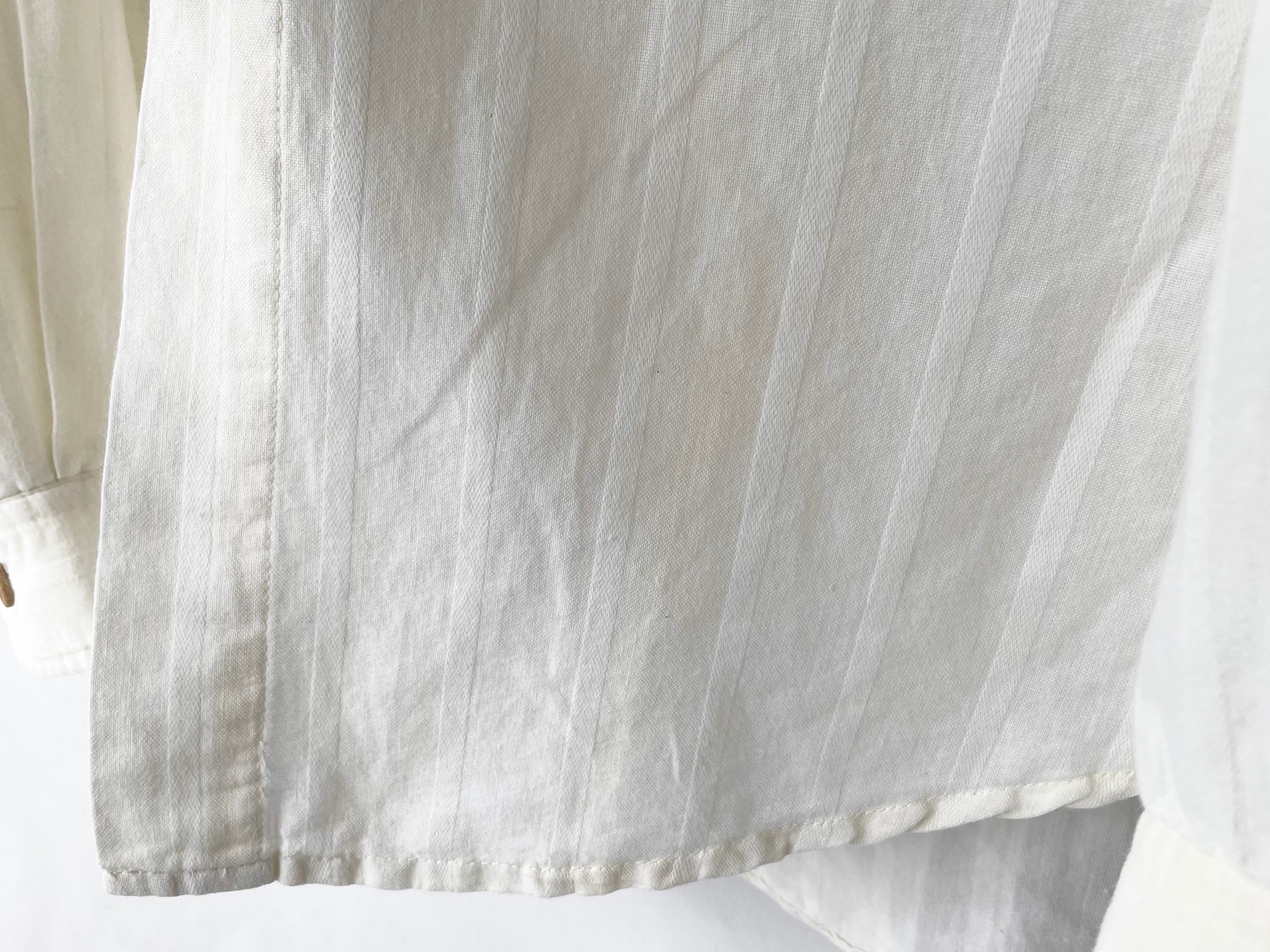 同色/織り違いの縞が乗った、ほんのりと色づいたナチュラルなホワイトカラー。