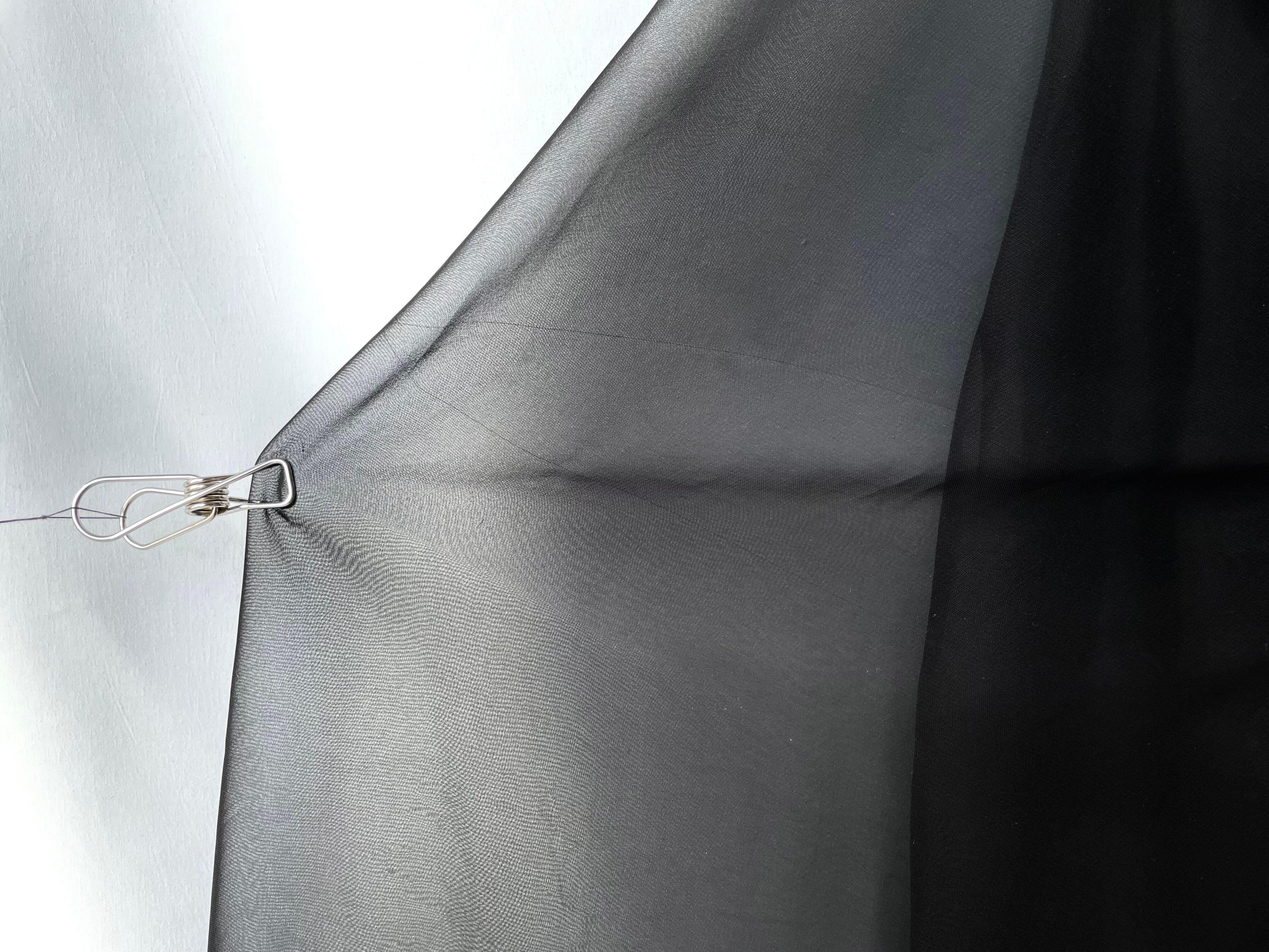 この形がよりよく見える、透け感のあるブラックカラーのエアリーなシフォン生地。