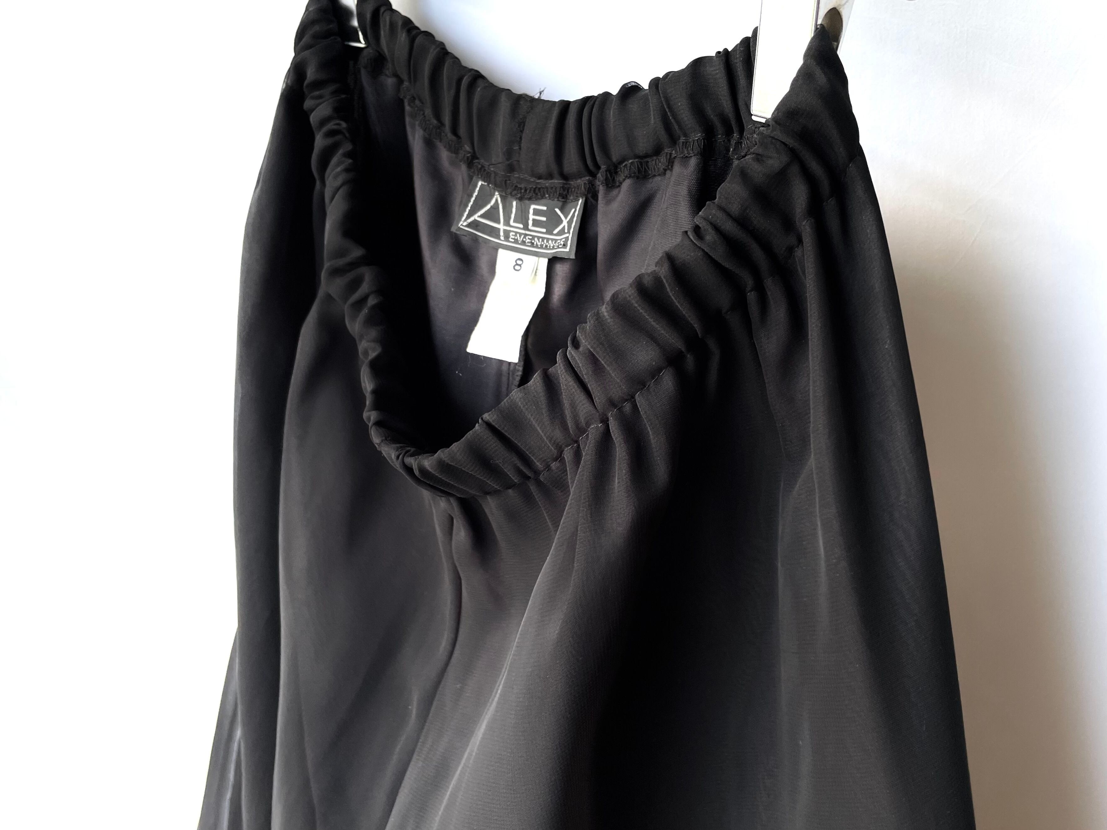 The airy chiffon fabric in a sheer black color shows off the shape even better.