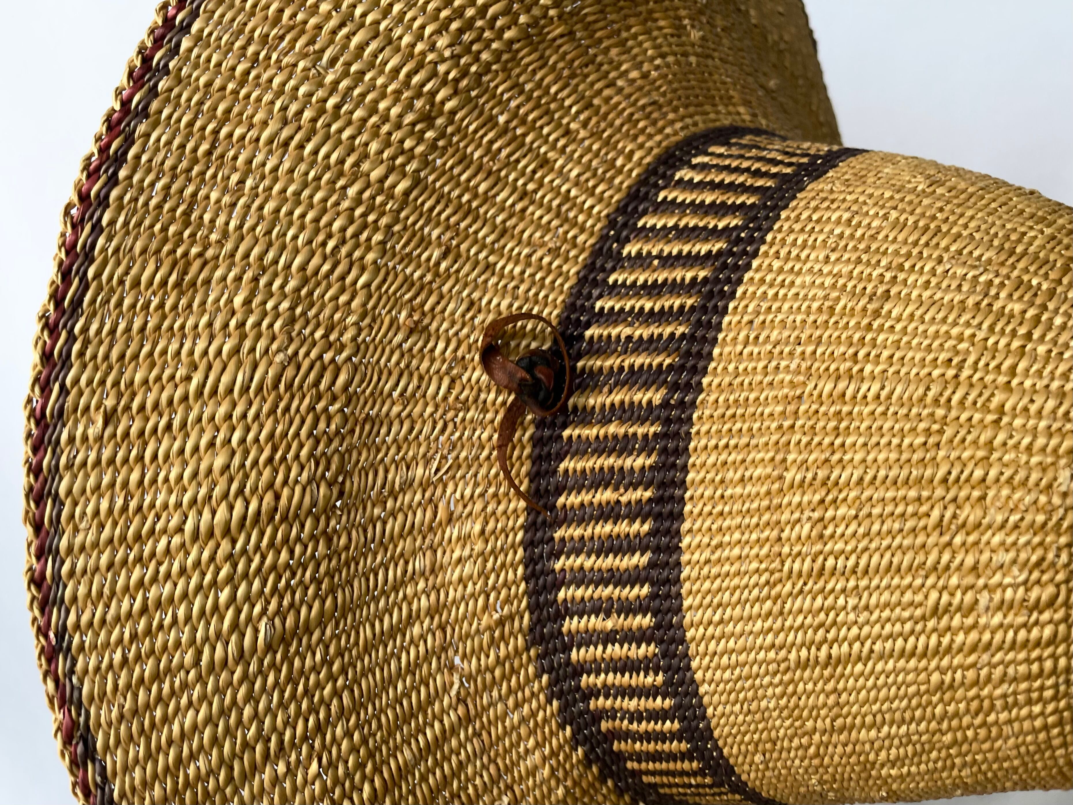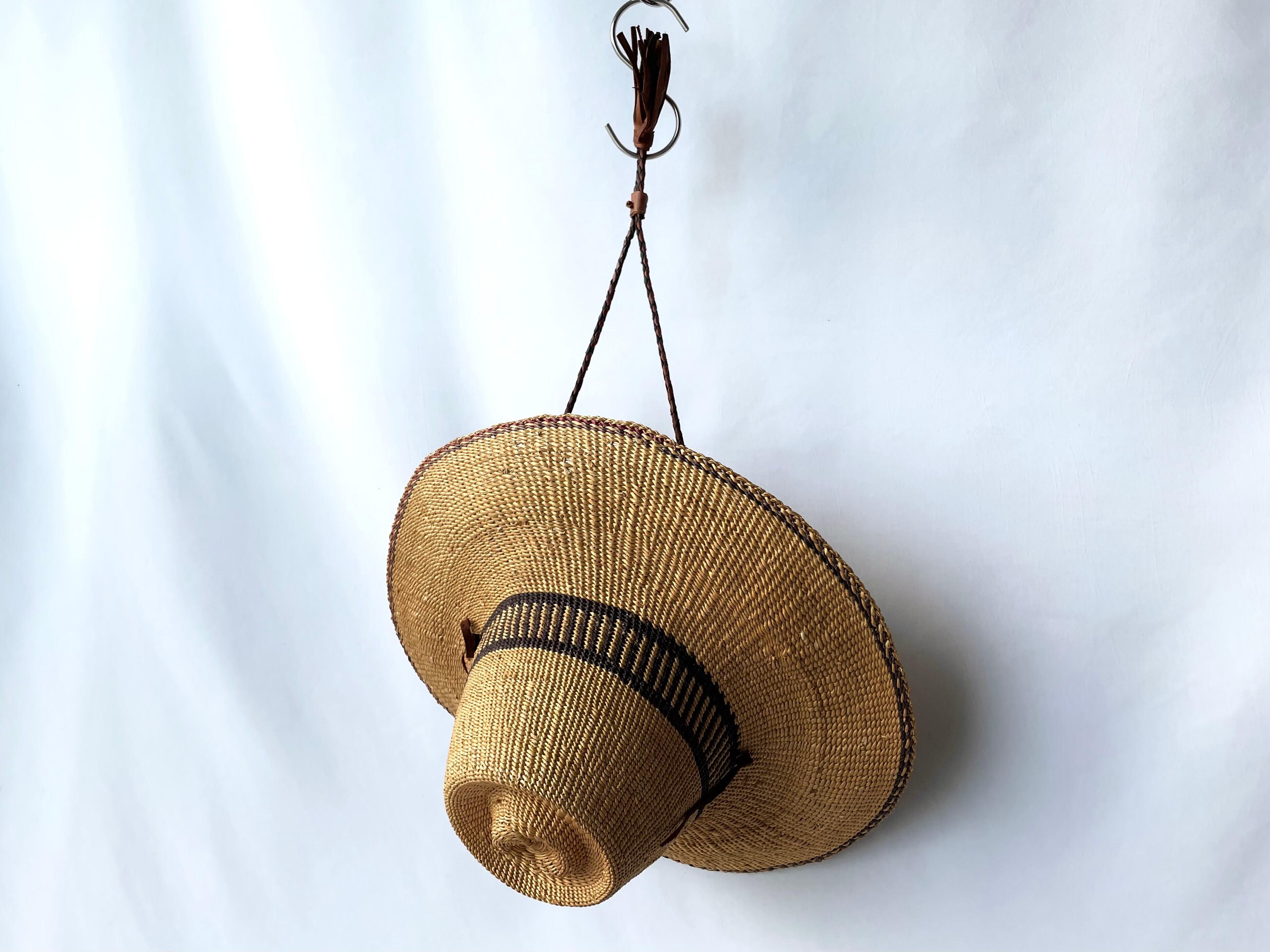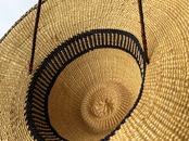 原始的かつどこかラグジュアルな雰囲気のストローハット。