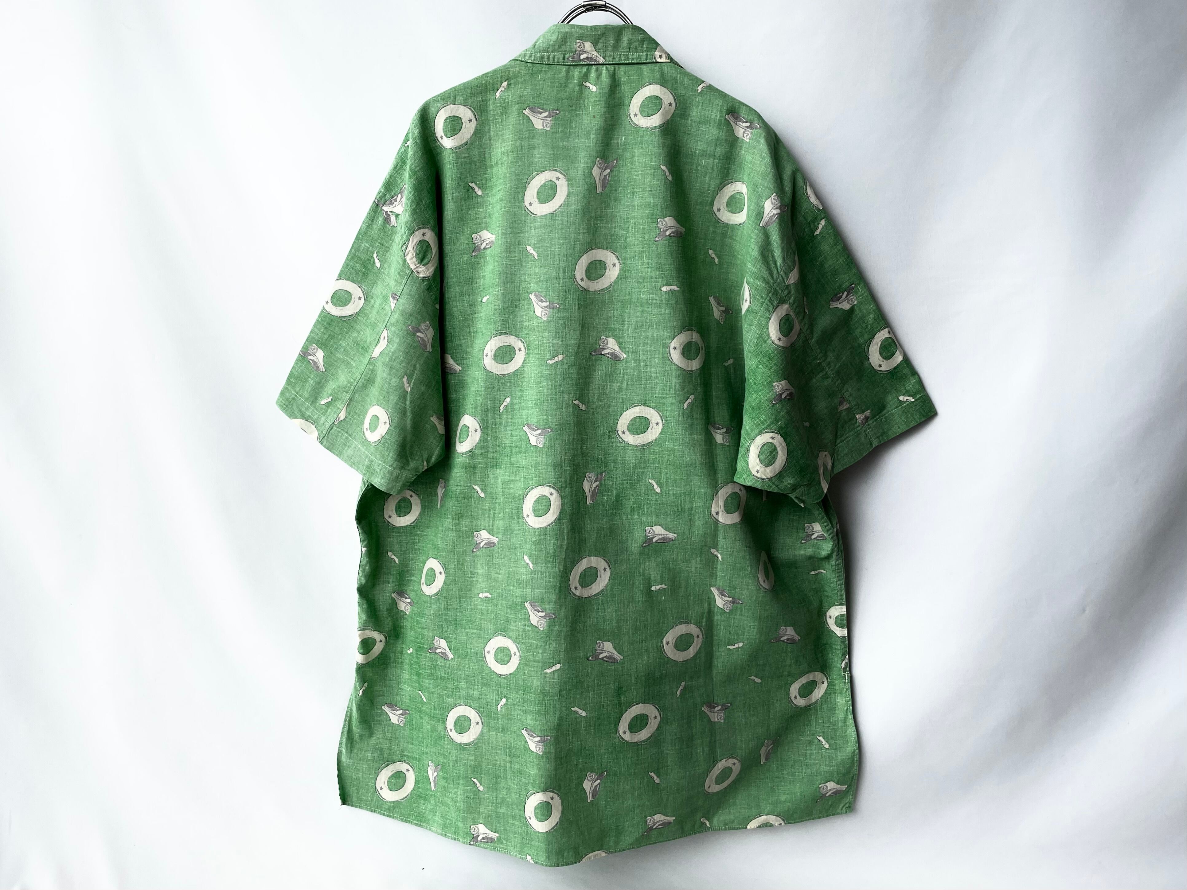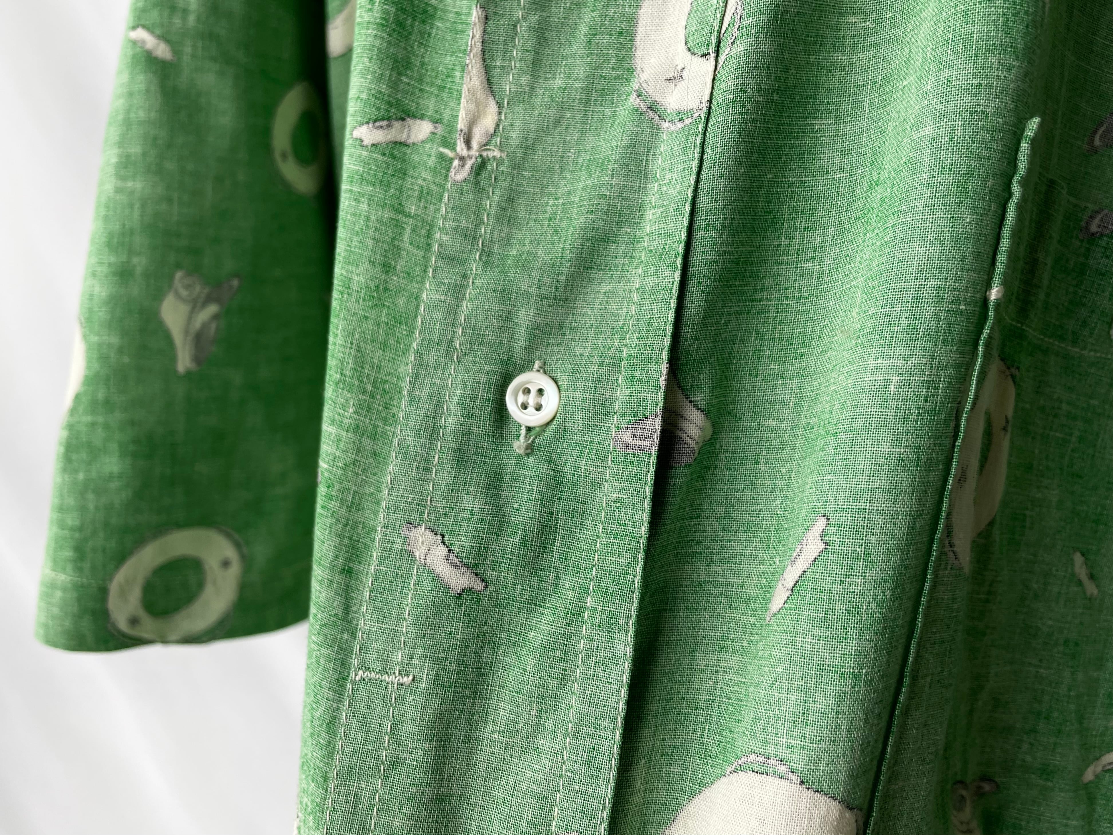 鮮やかな発色が内、白く霞んだぼやけたグリーンが外面に使われた、インサイドアウトなファブリックデザイン。