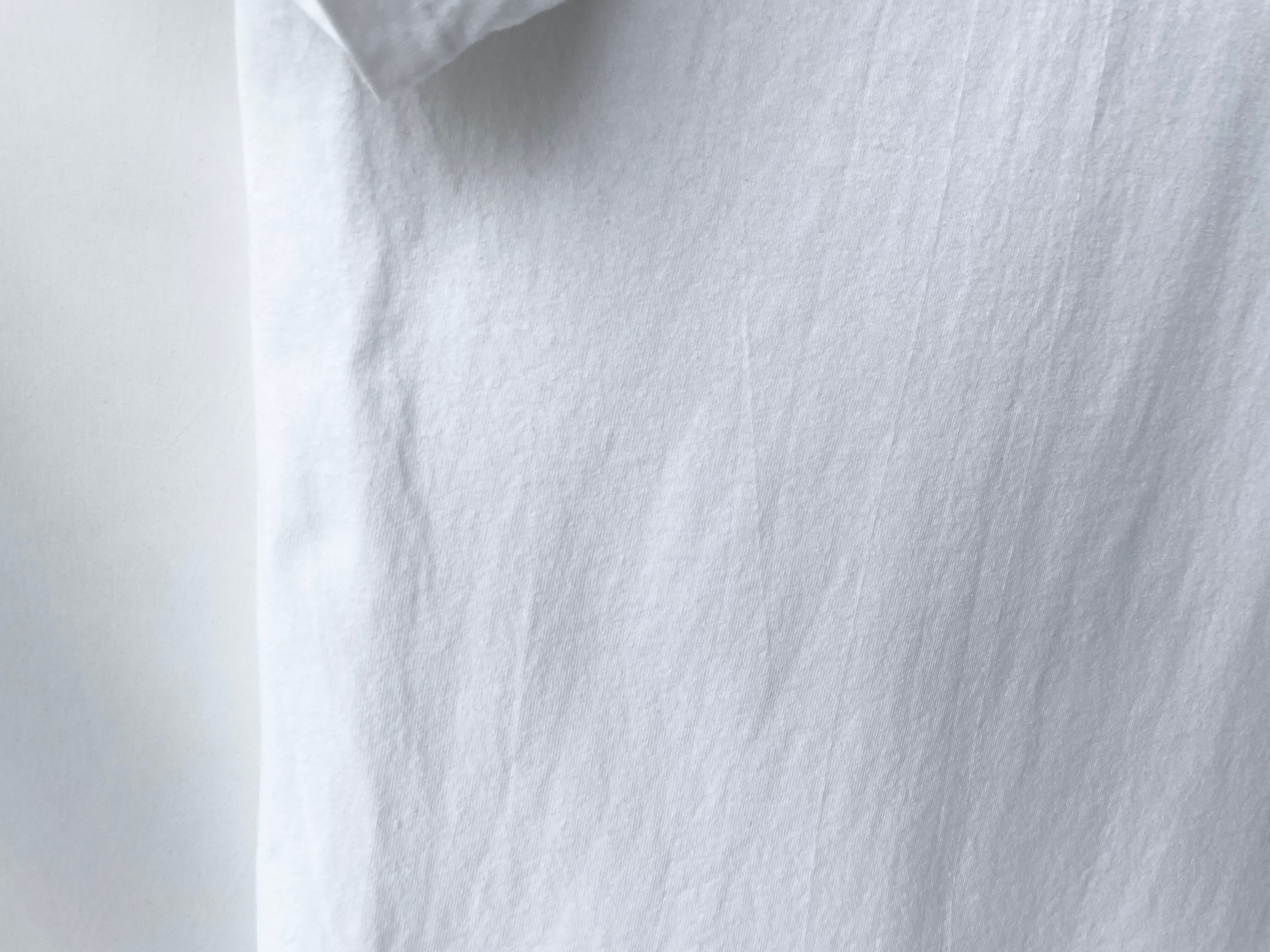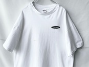 白地に黒のバックプリント、左胸一点の小ぶりなプリントデザイン。