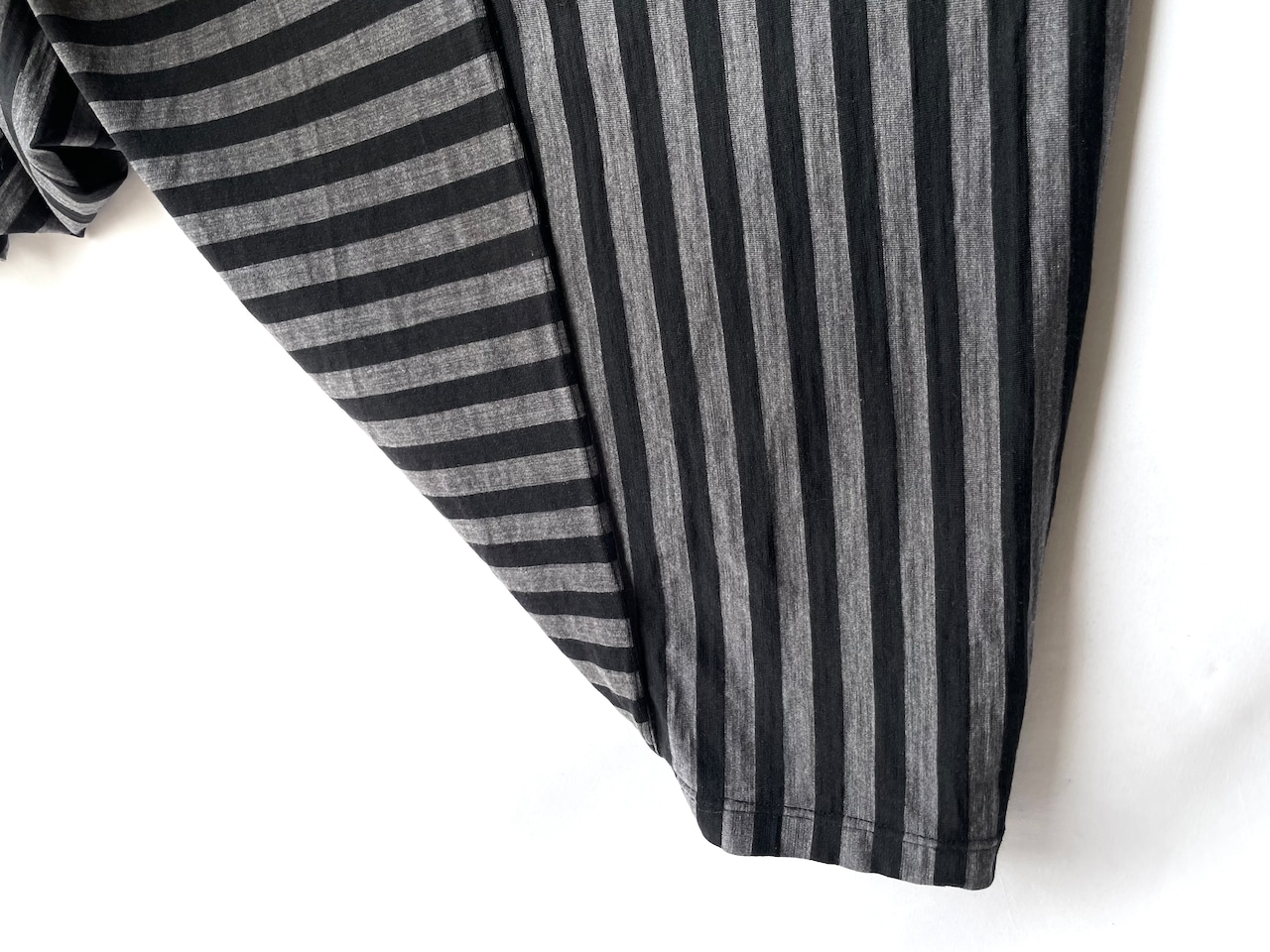 この異質な形がより活きる、黒/グレーの動きのある縞模様。