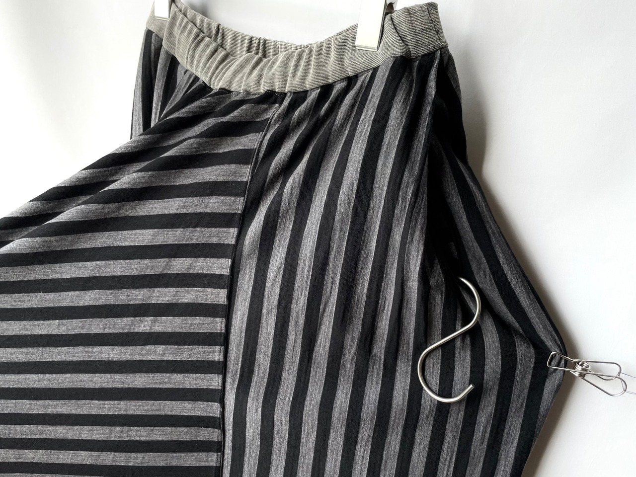 両サイドのシームは存在せず、フロント/バック共に左右非対称な継ぎが見られます。