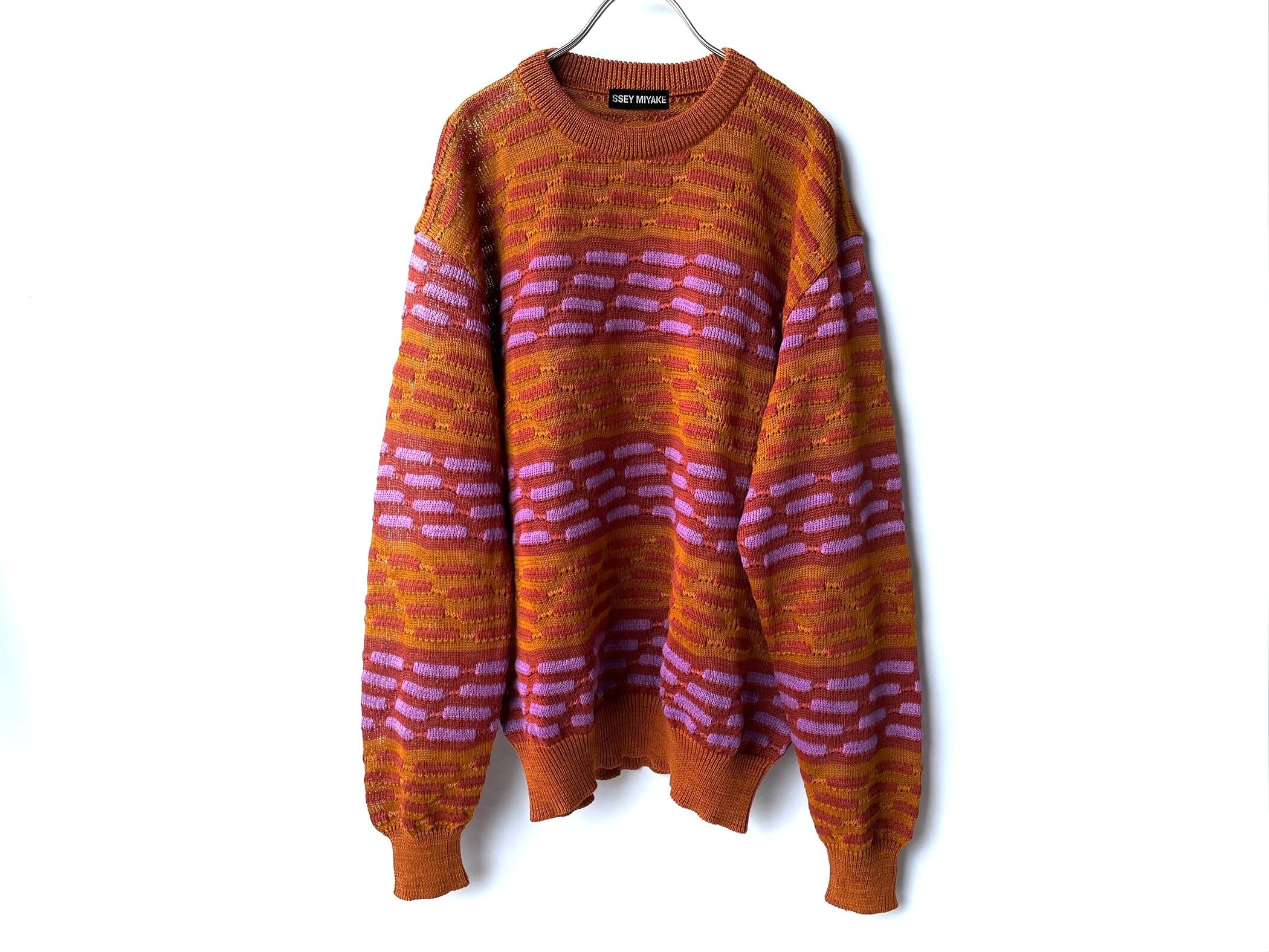 マスタード×オレンジブラウンに、透明感のある紫の糸も使用されたユニークな色使い。