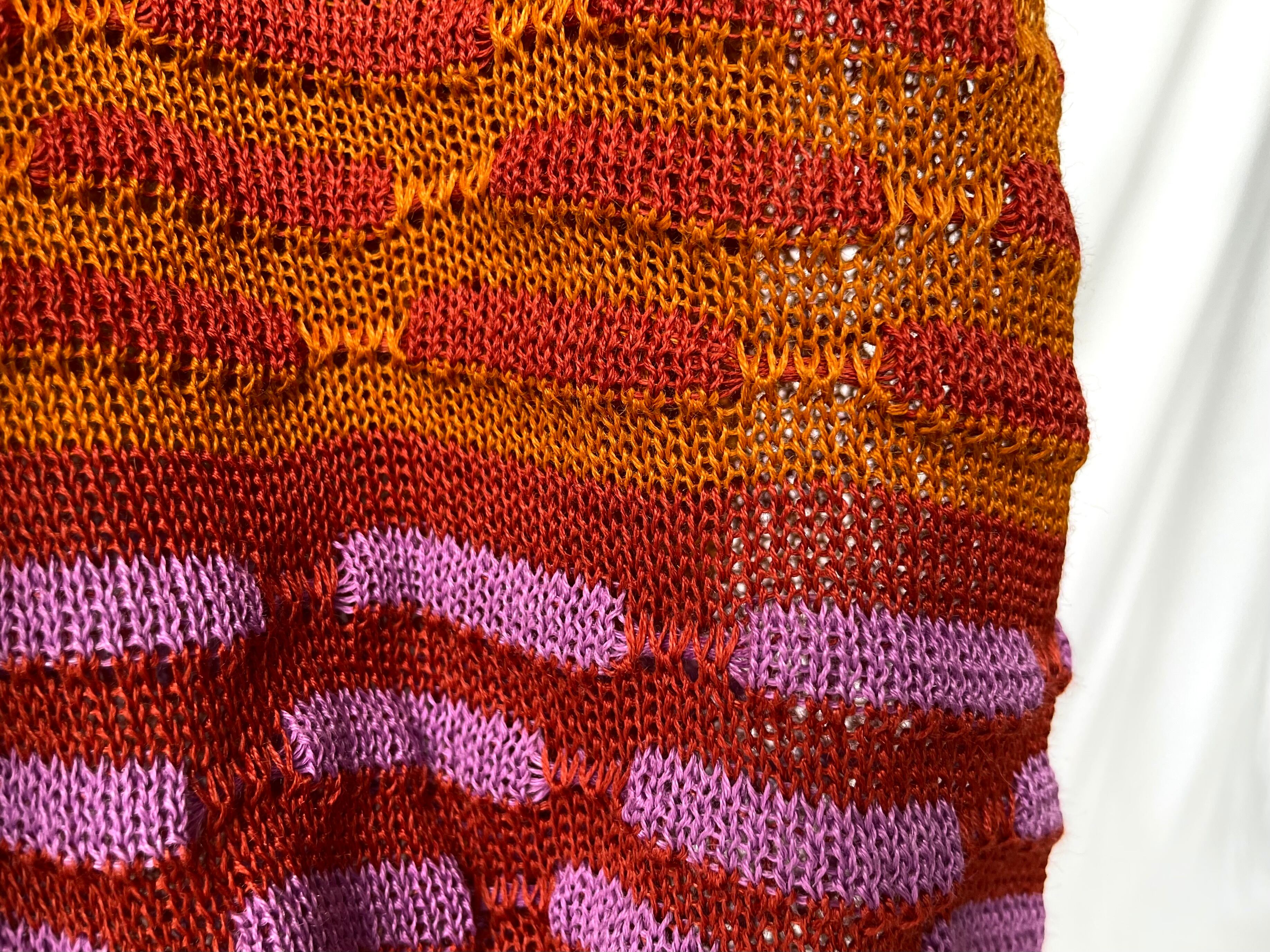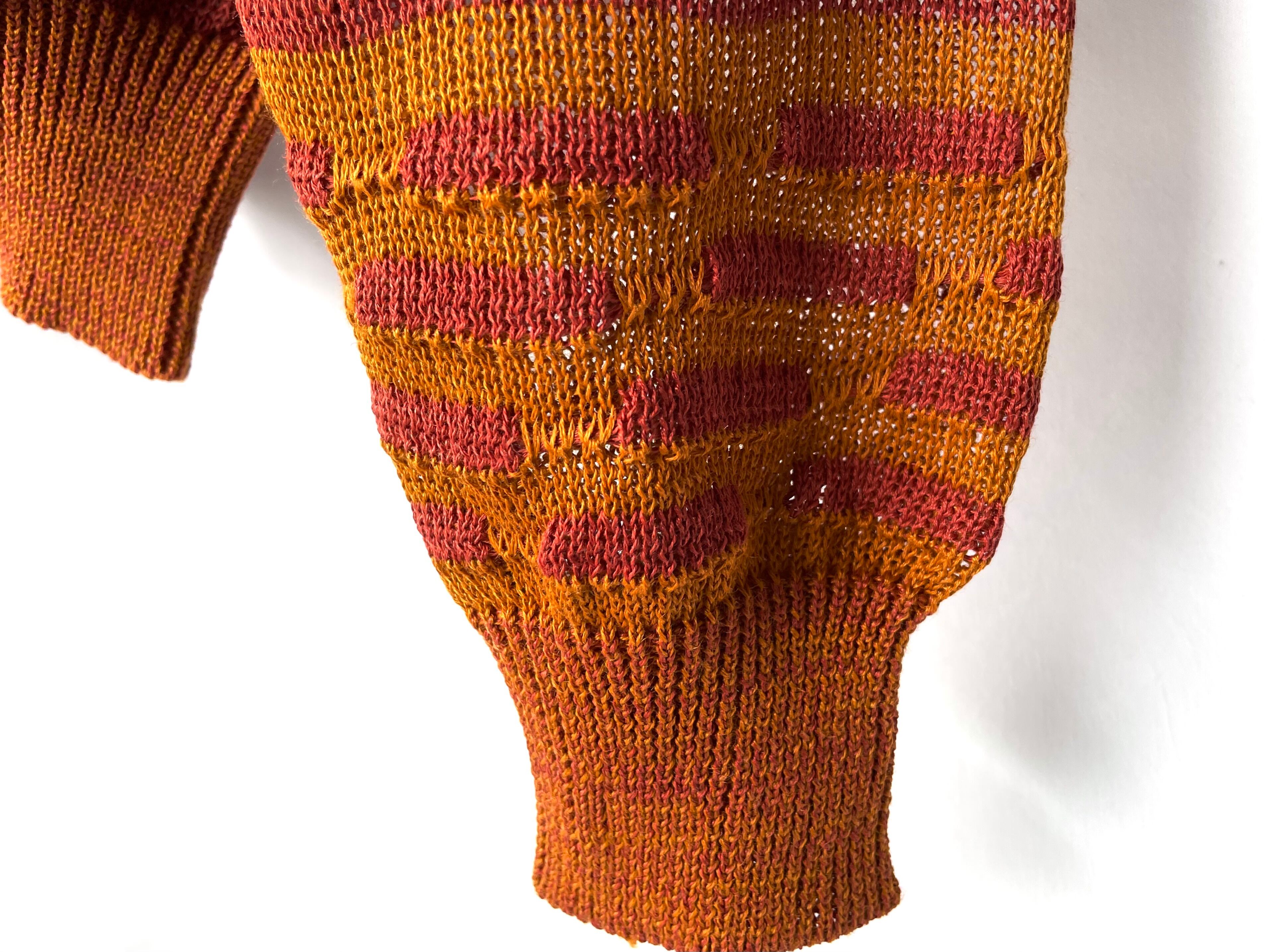 A pure linen knit with a sheer, loose knit but with just the right amount of stiffness/tension, giving it a unique feel that is characteristic of this label.