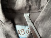 Small button-down collar, shallow round cut hem that looks almost boxy.