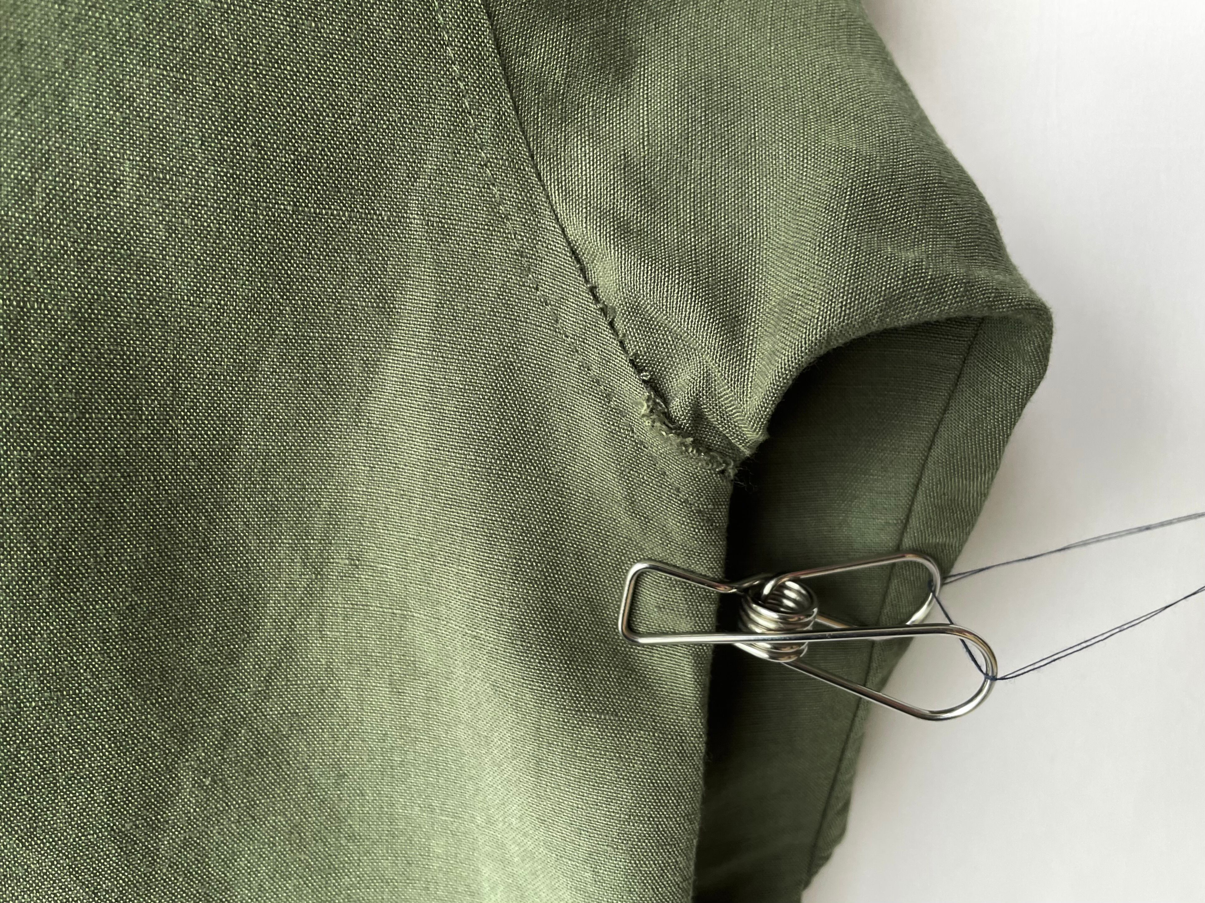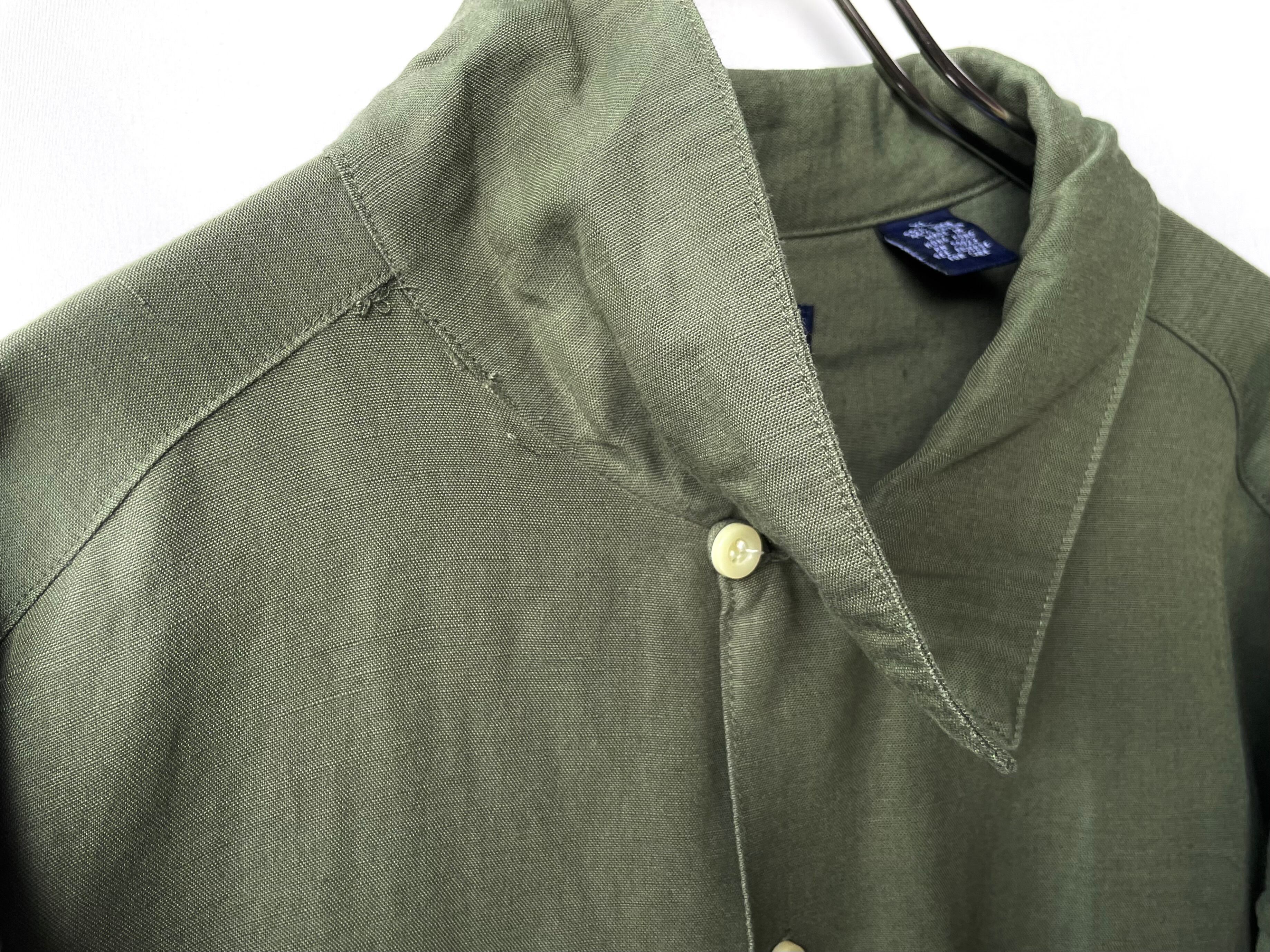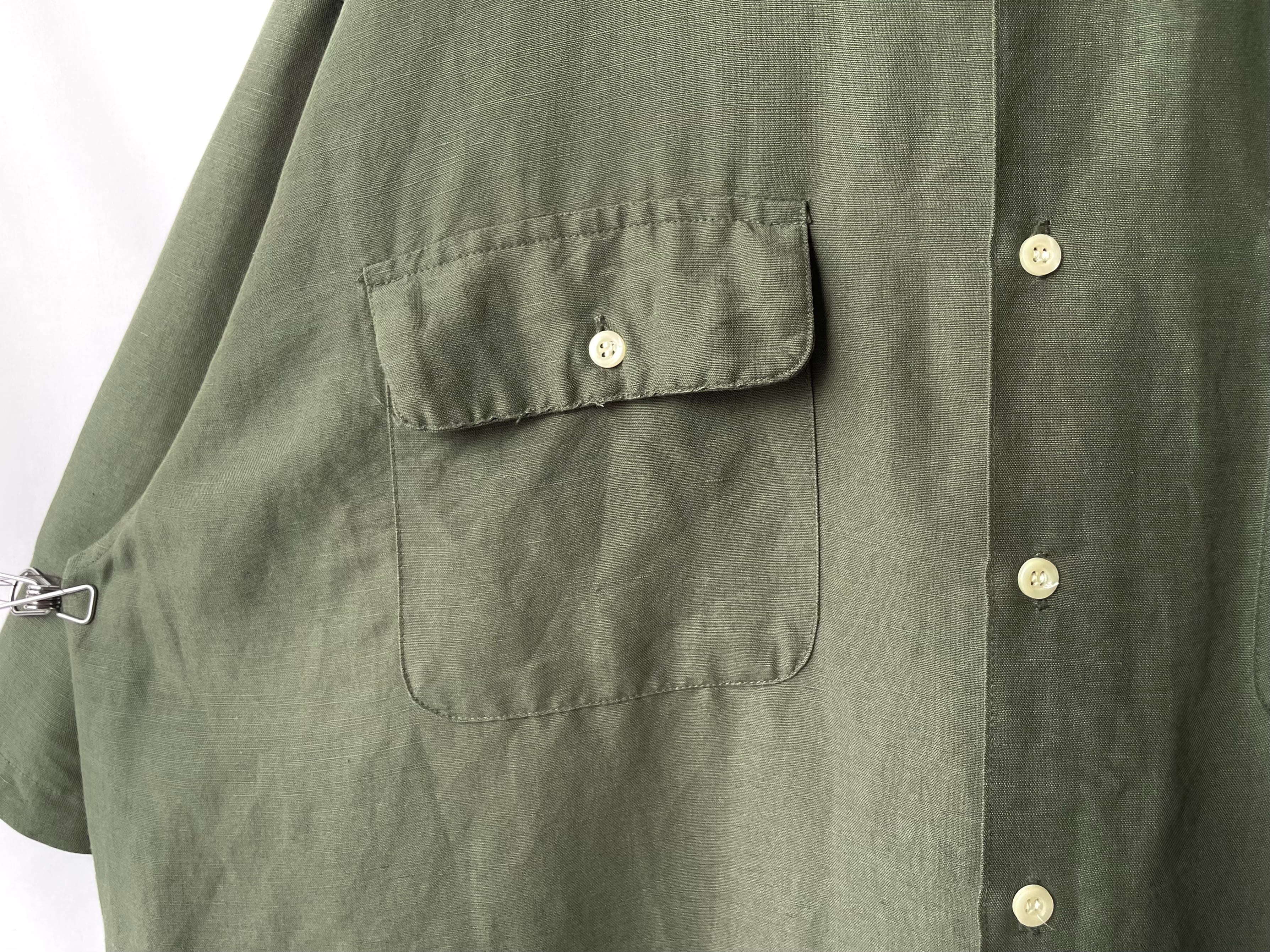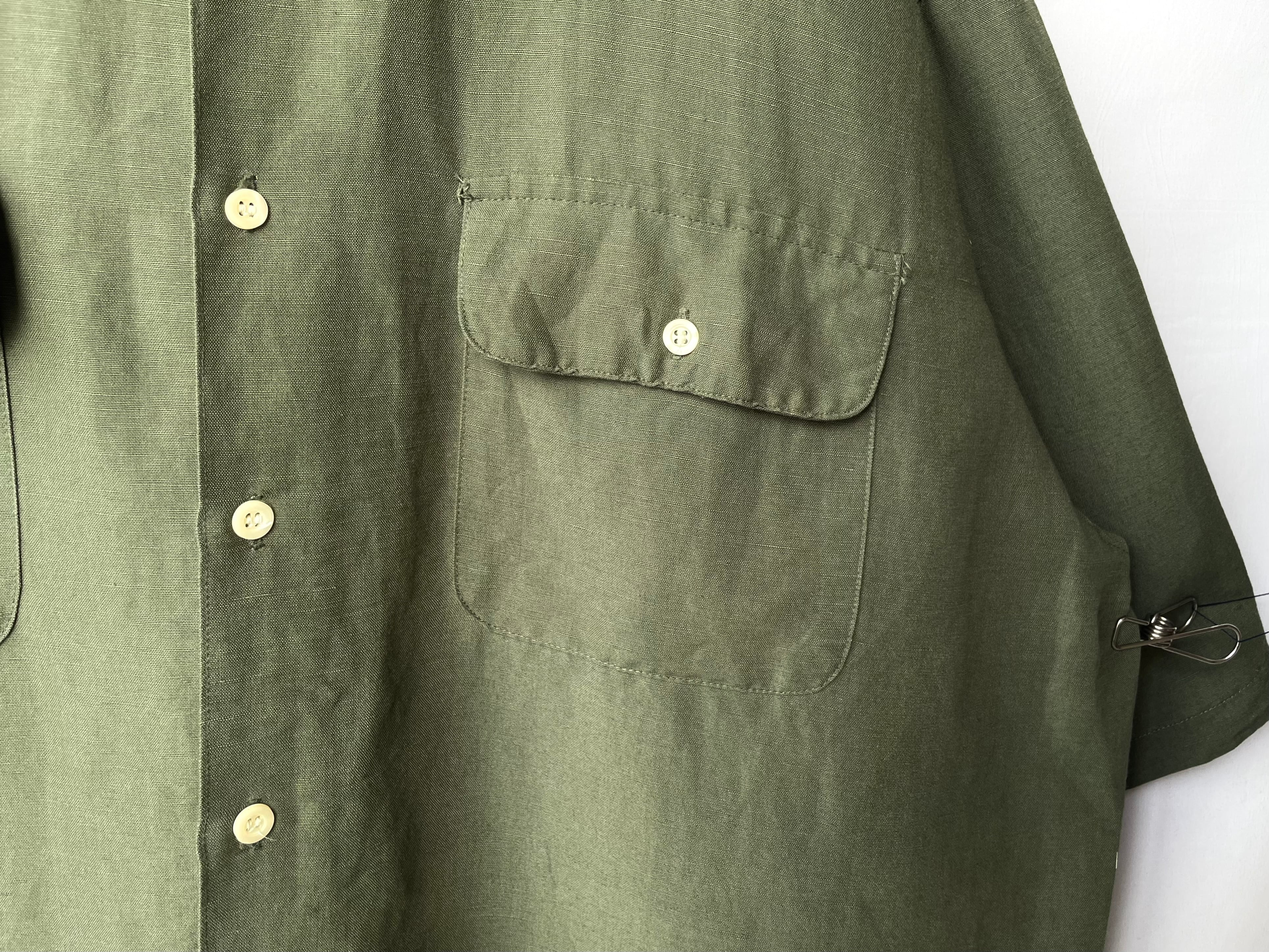 丸みを帯びたチェストポケット、オープンカラー仕様の古いディテール。