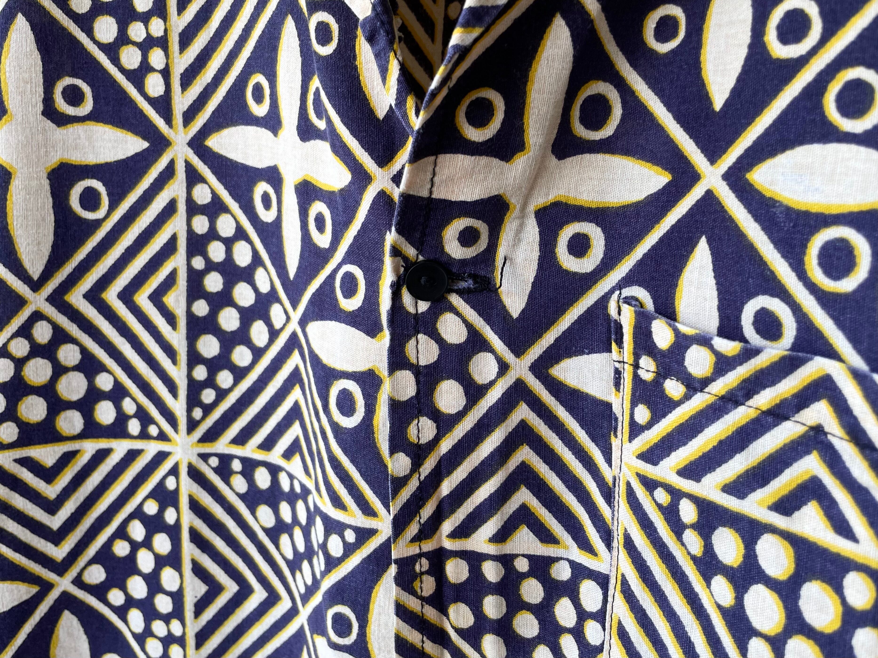 1970年代頃の物と思われる総柄の開襟シャツ。