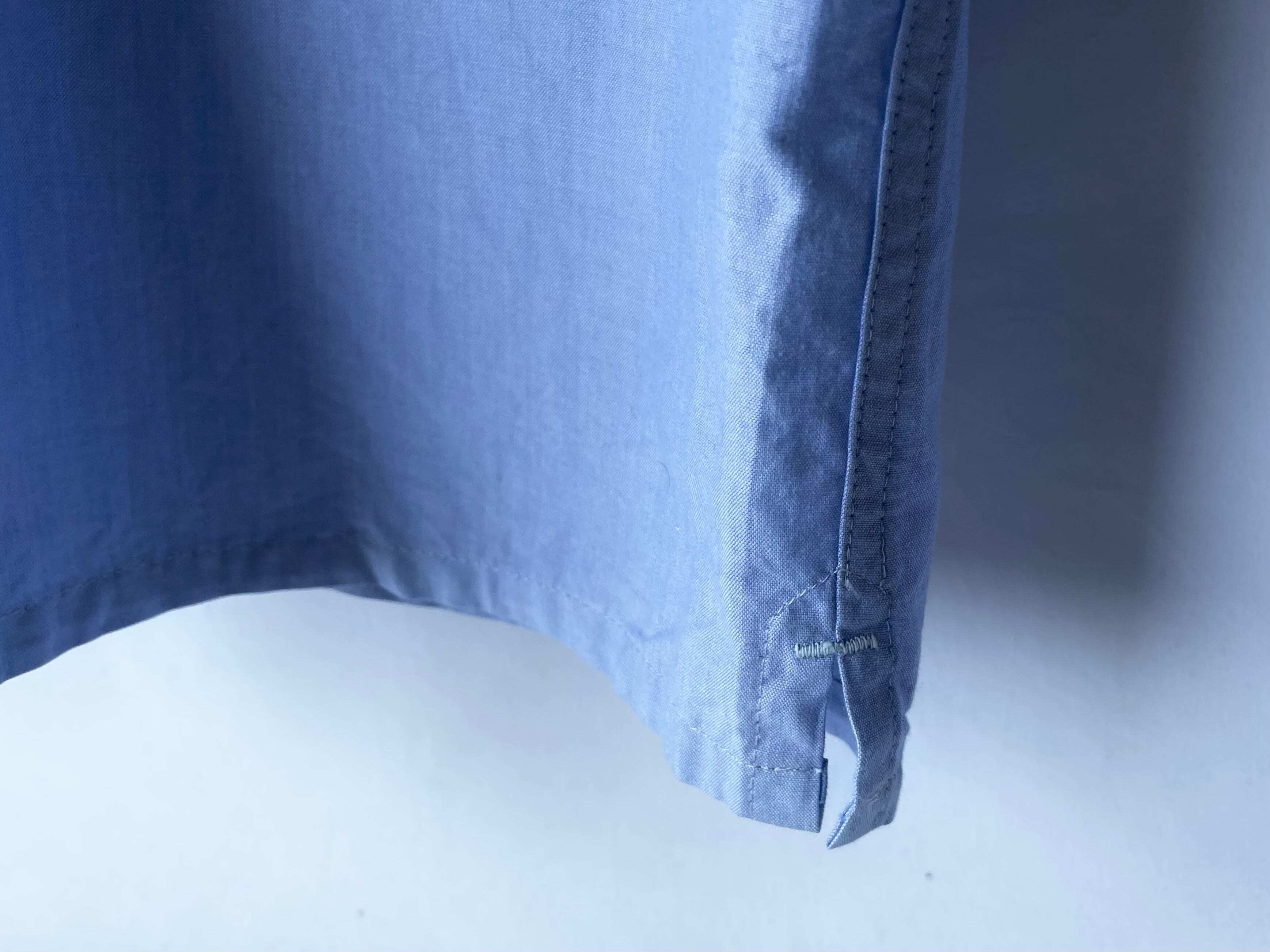 立ち襟の形も素敵な、プルオーバー仕様の開襟デザイン。