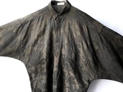 Relaxed silhouette with dropped shoulders and wide sleeves that cover just under half of the body.