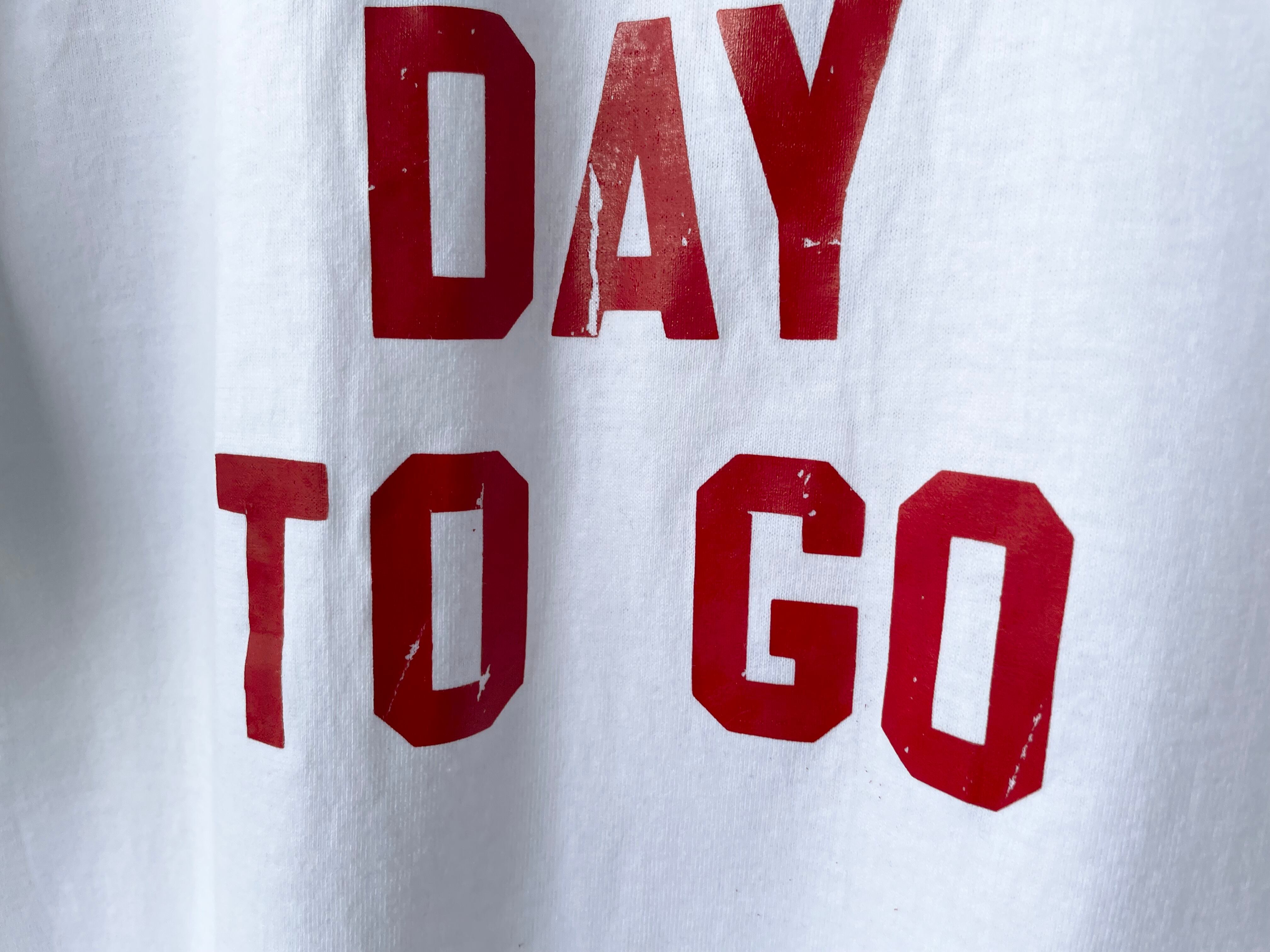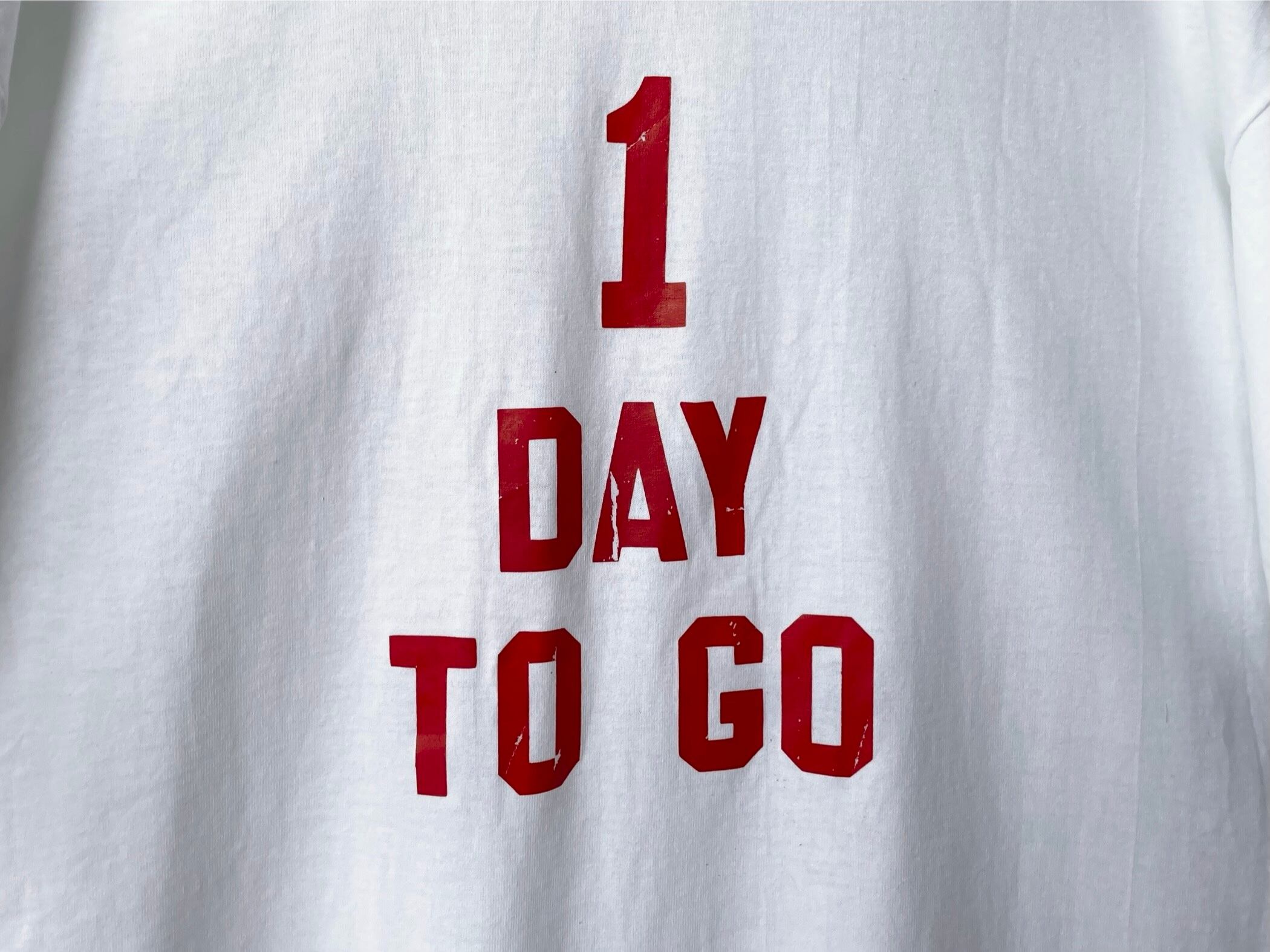 白ボディに赤のプリントが乗った、潔い"1 DAY TO GO"プリント。