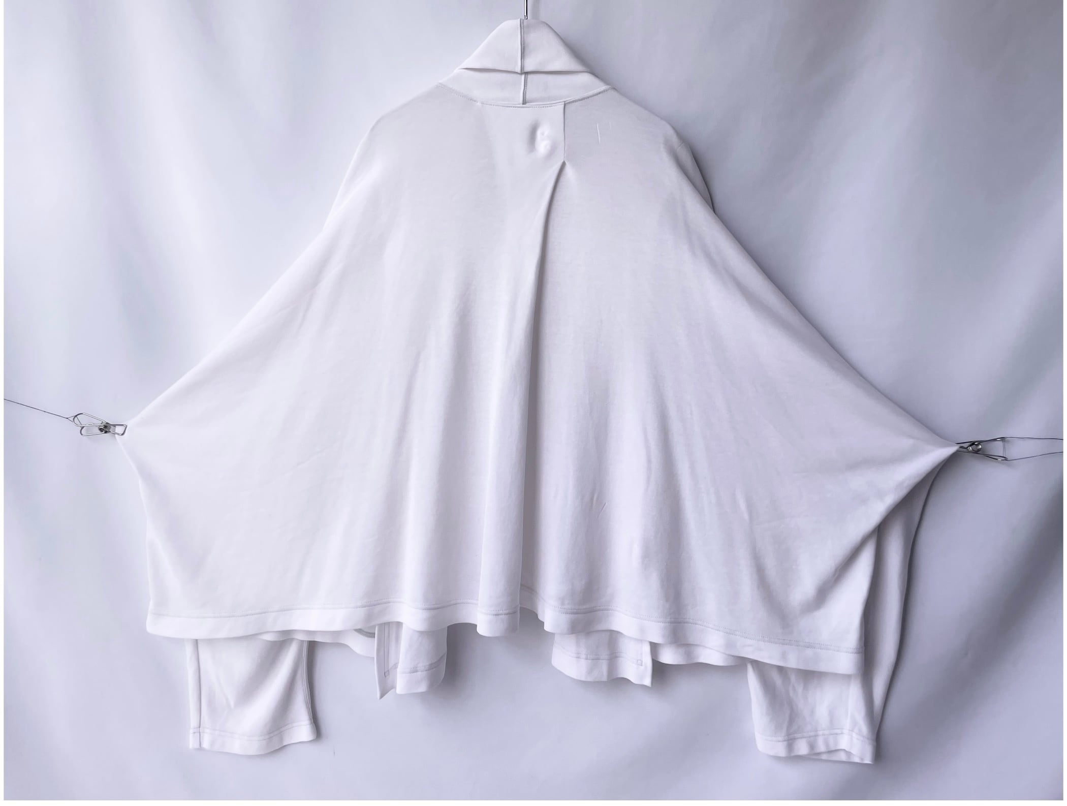 すっきりとしたショート丈×身幅/アーム幅共にゆとりのある羽織りスタイル。(裾幅約104cm)