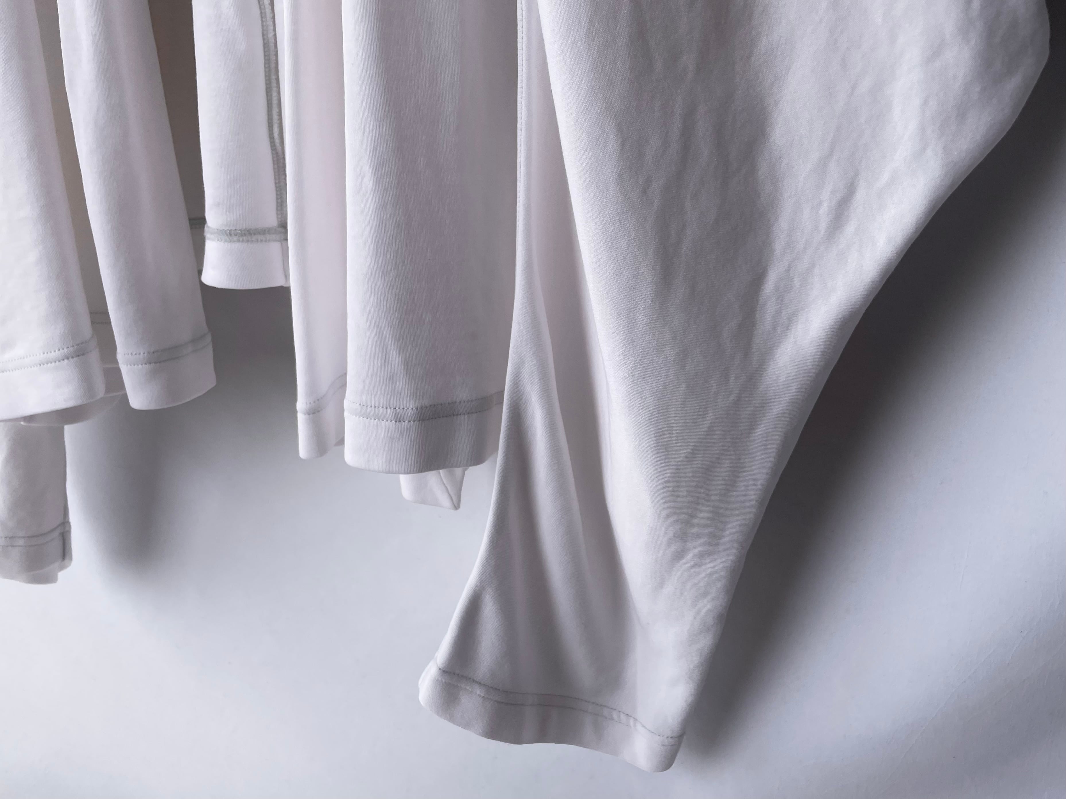生地のとろみが美しい、薄手かつ目の細かなコットンニット。