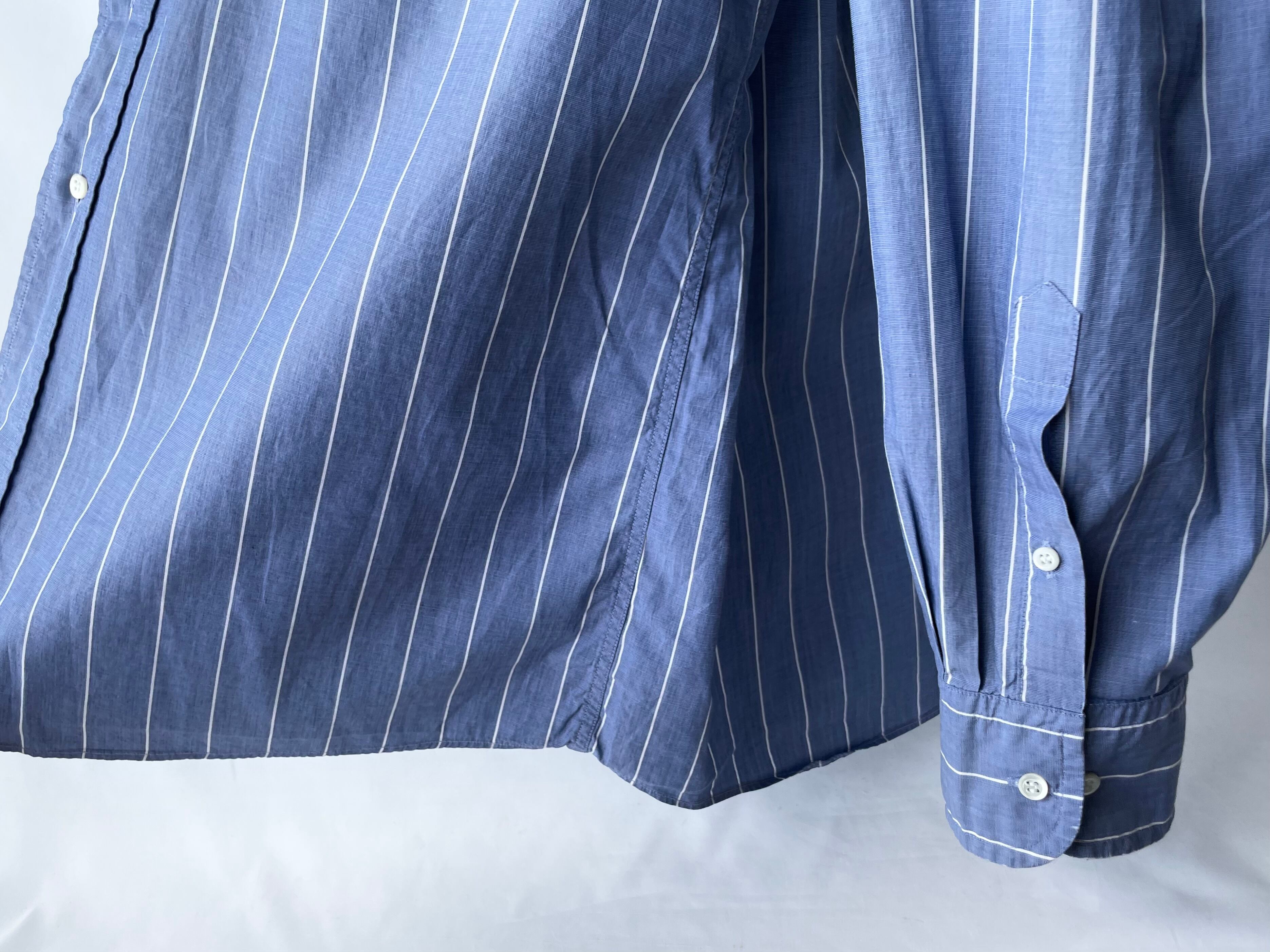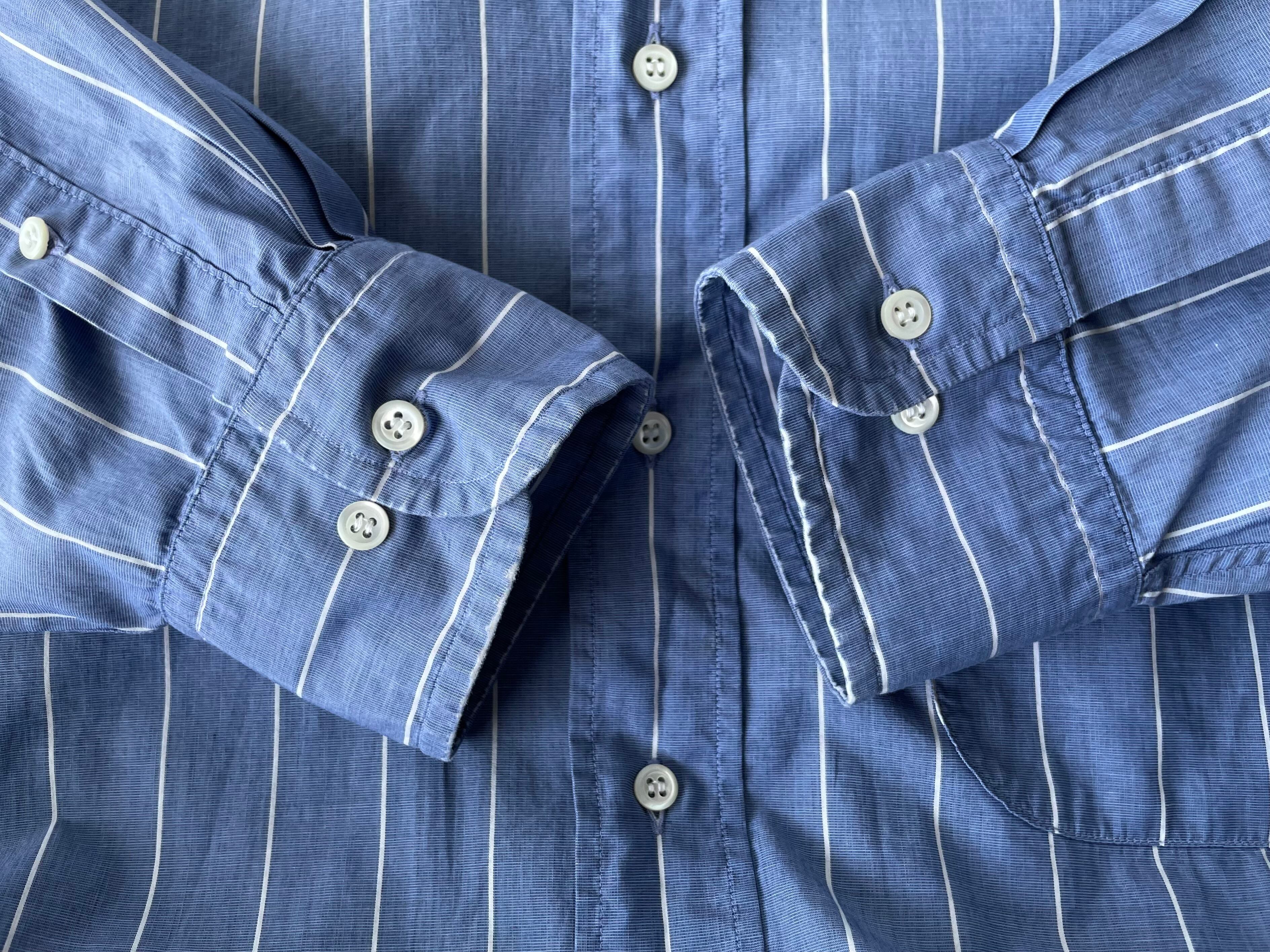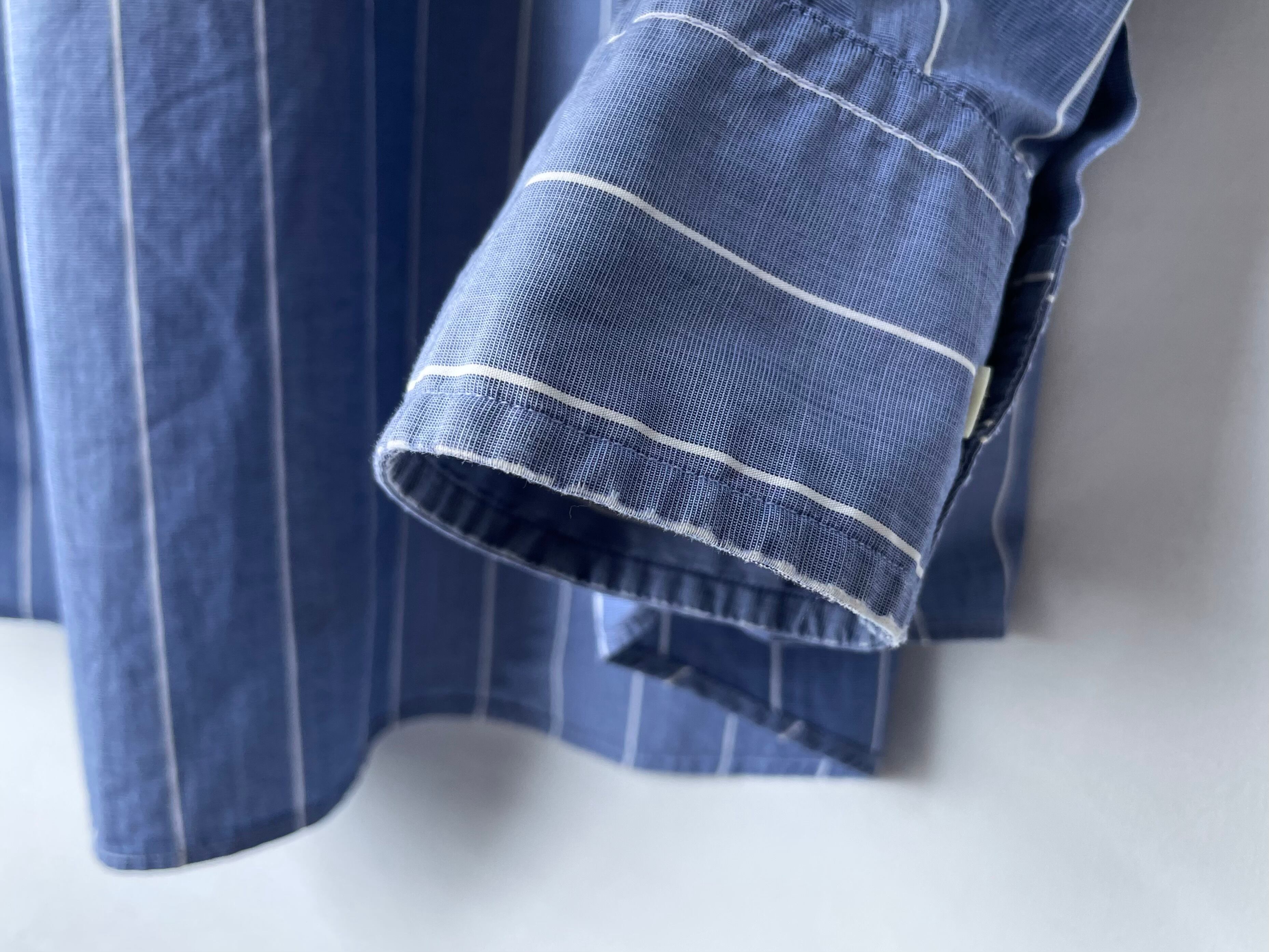 ライトブルー×ホワイトのピッチ幅の広いストライプパターン。