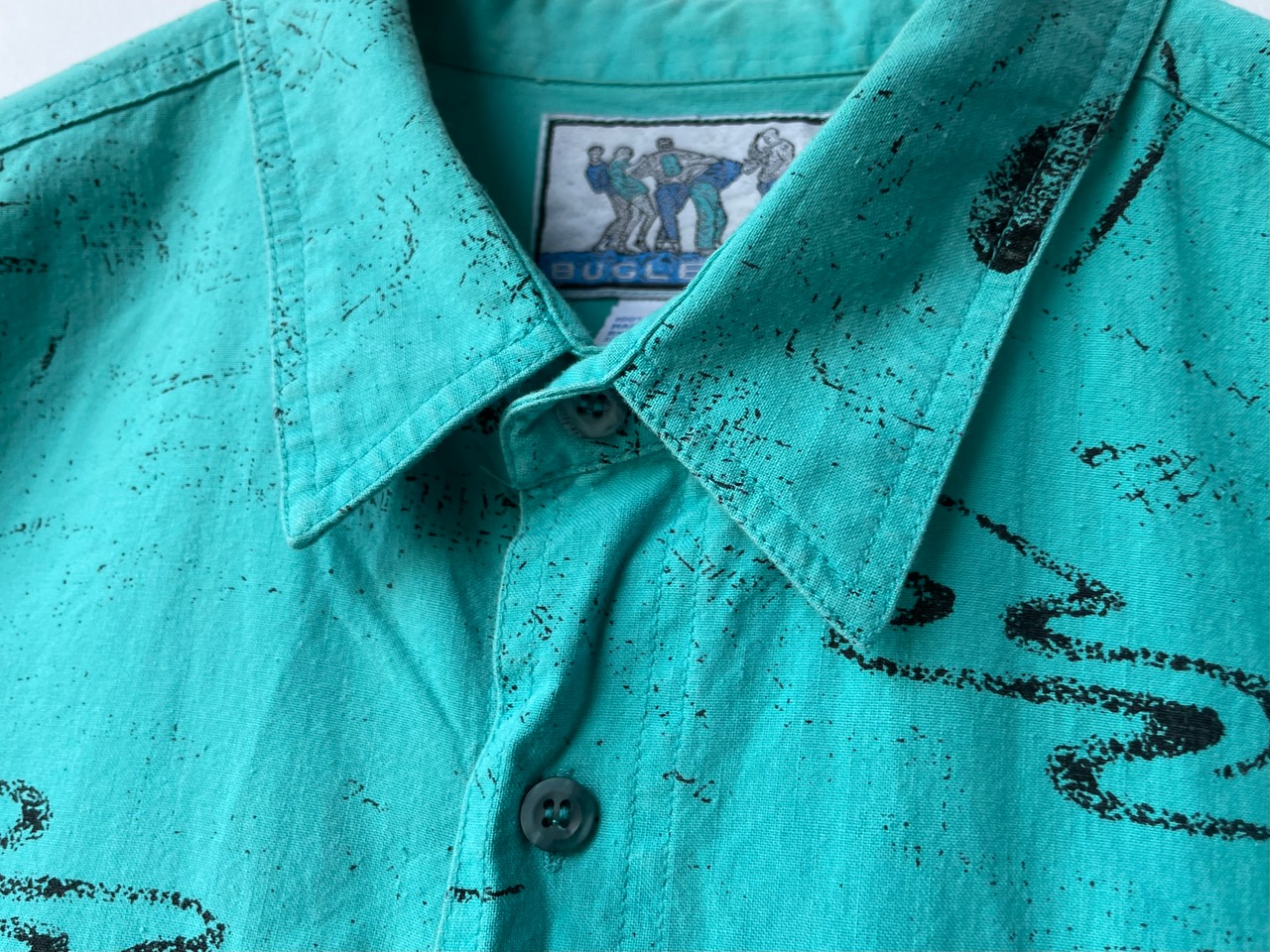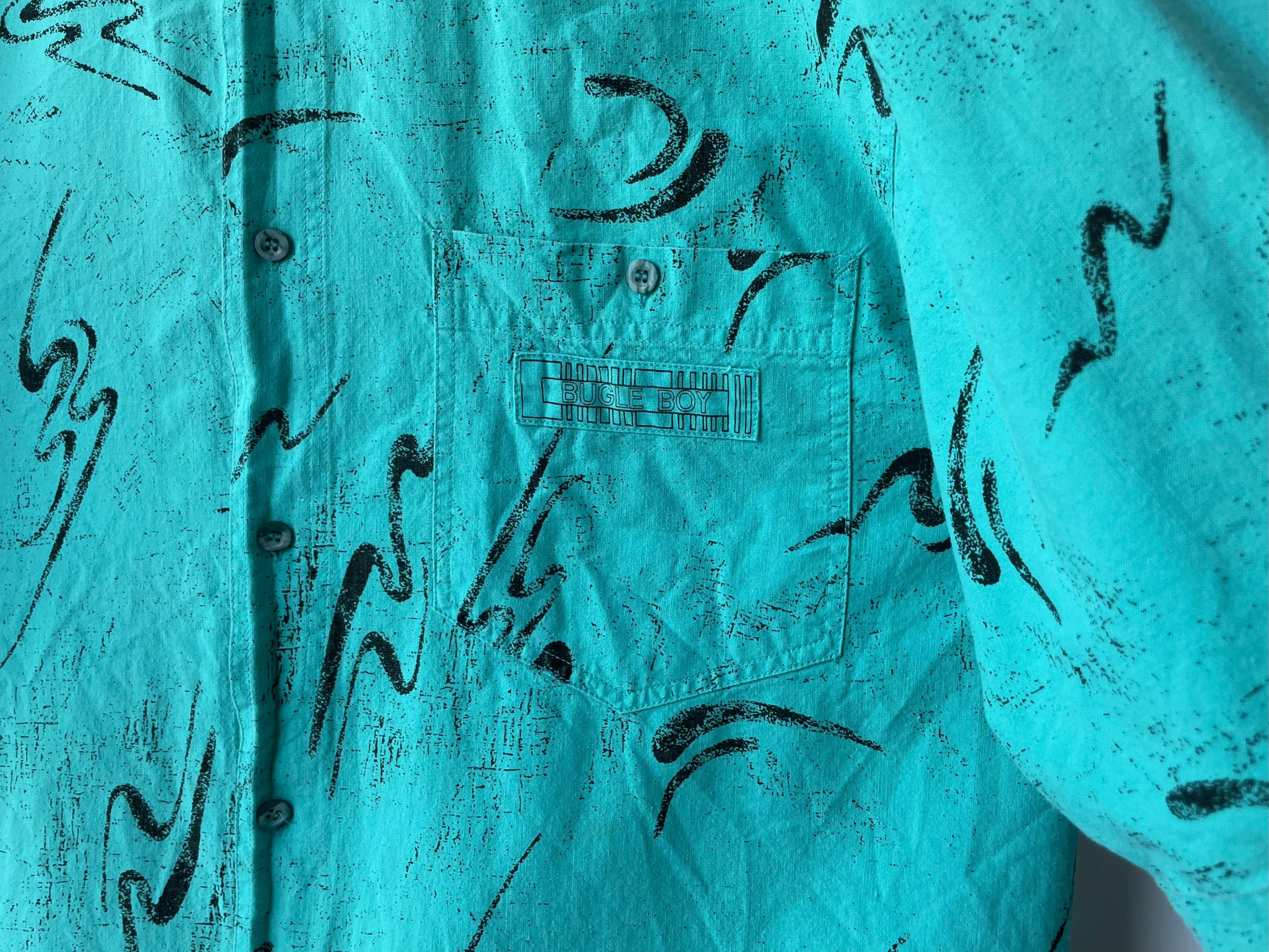 曖昧なブルーグリーンボディに細かなカスリ柄と筆跡が乗った様な、素晴らしい雰囲気のオールパターン。
