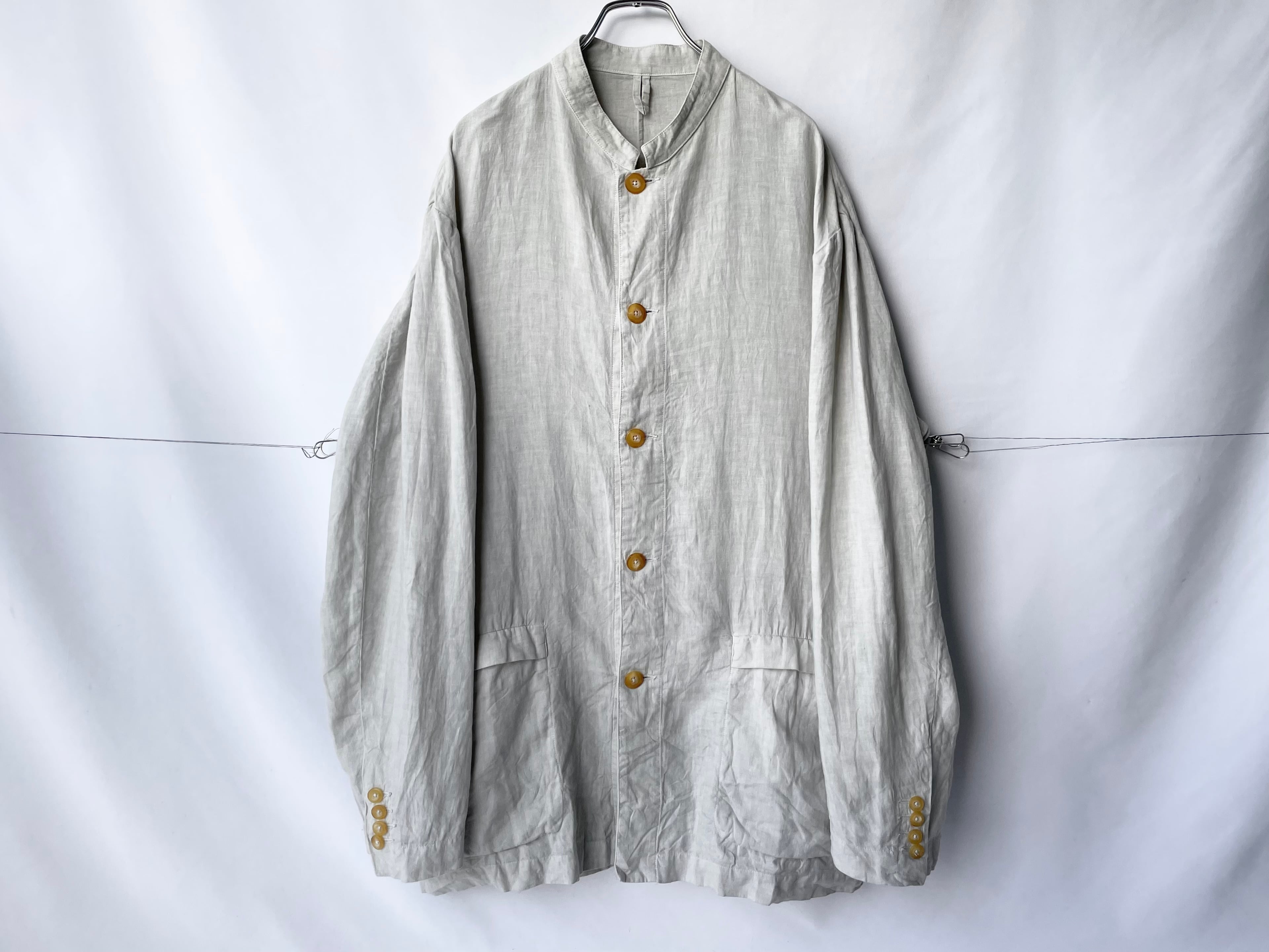 上質なピュアリネンで仕立てられた、リラックスフィットのマオカラージャケット。