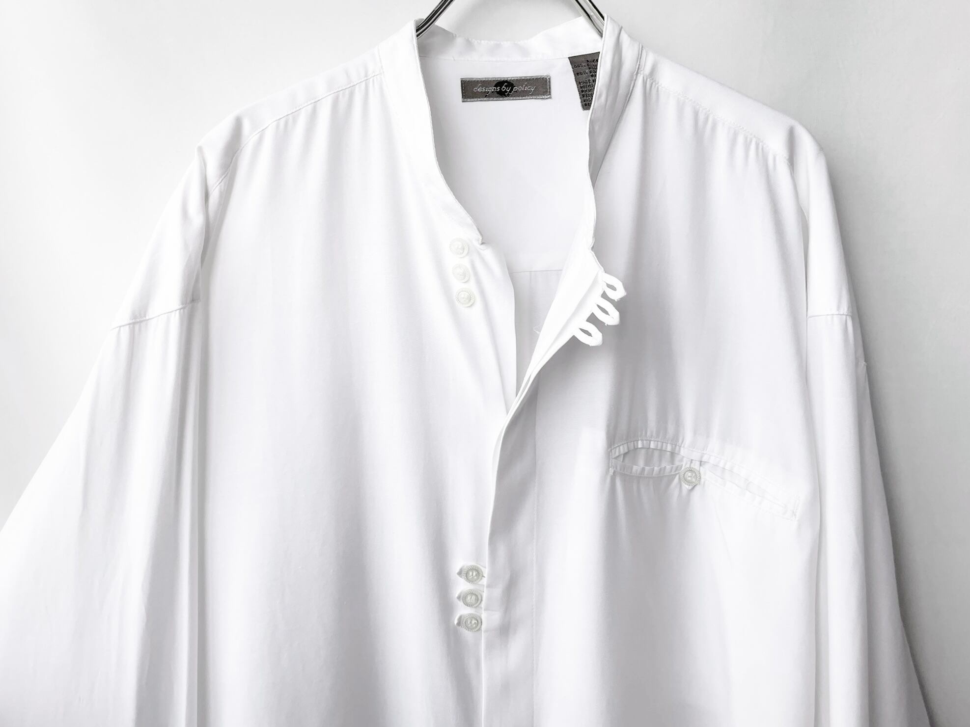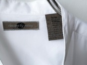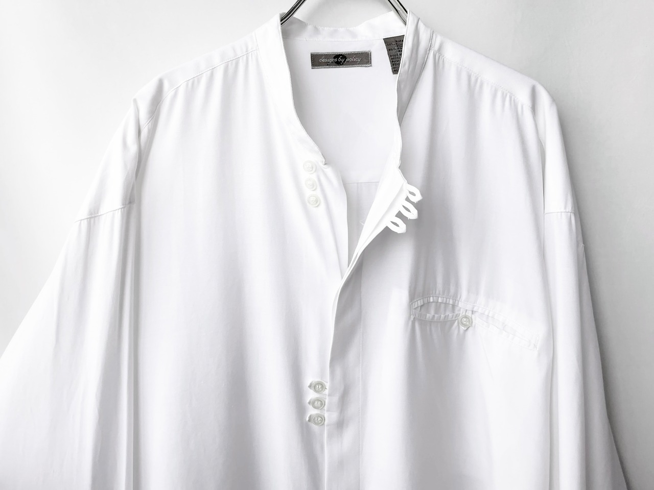 幅狭の比翼の前立てに、3連のループボタンが3箇所に配置された特別なディテール。