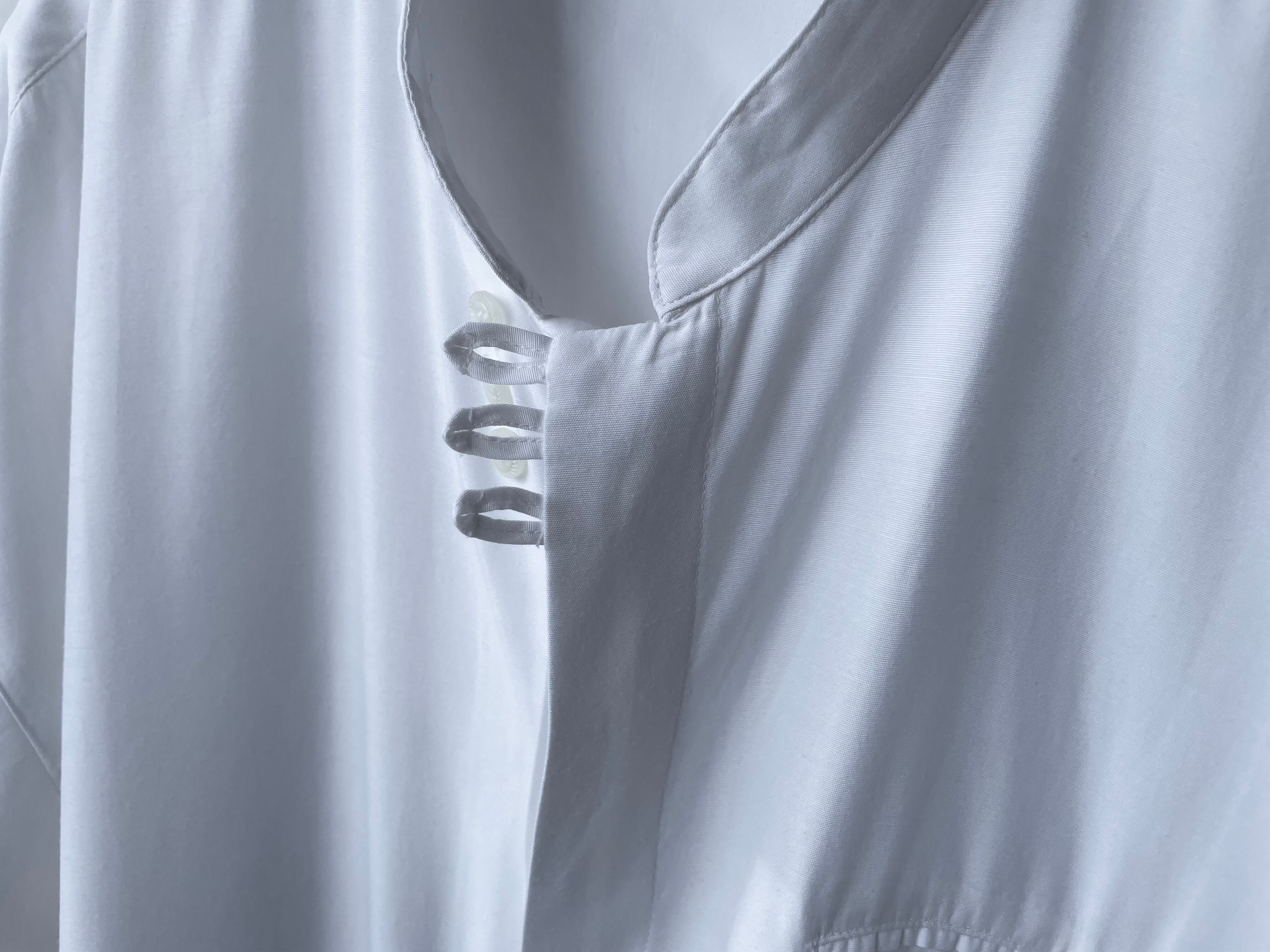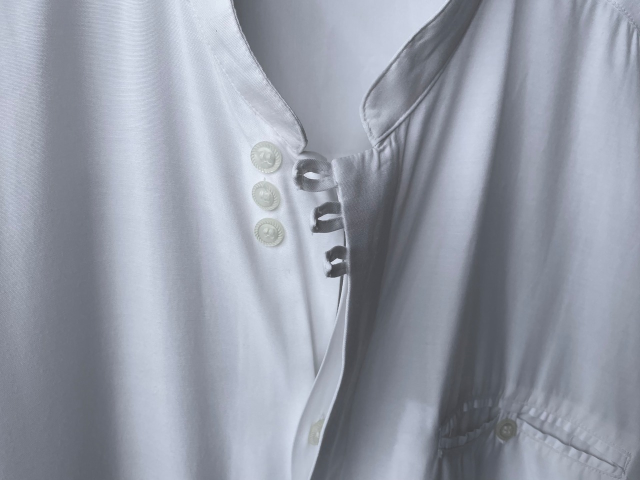 A special detail with three loop buttons arranged in three places on the narrow placket.