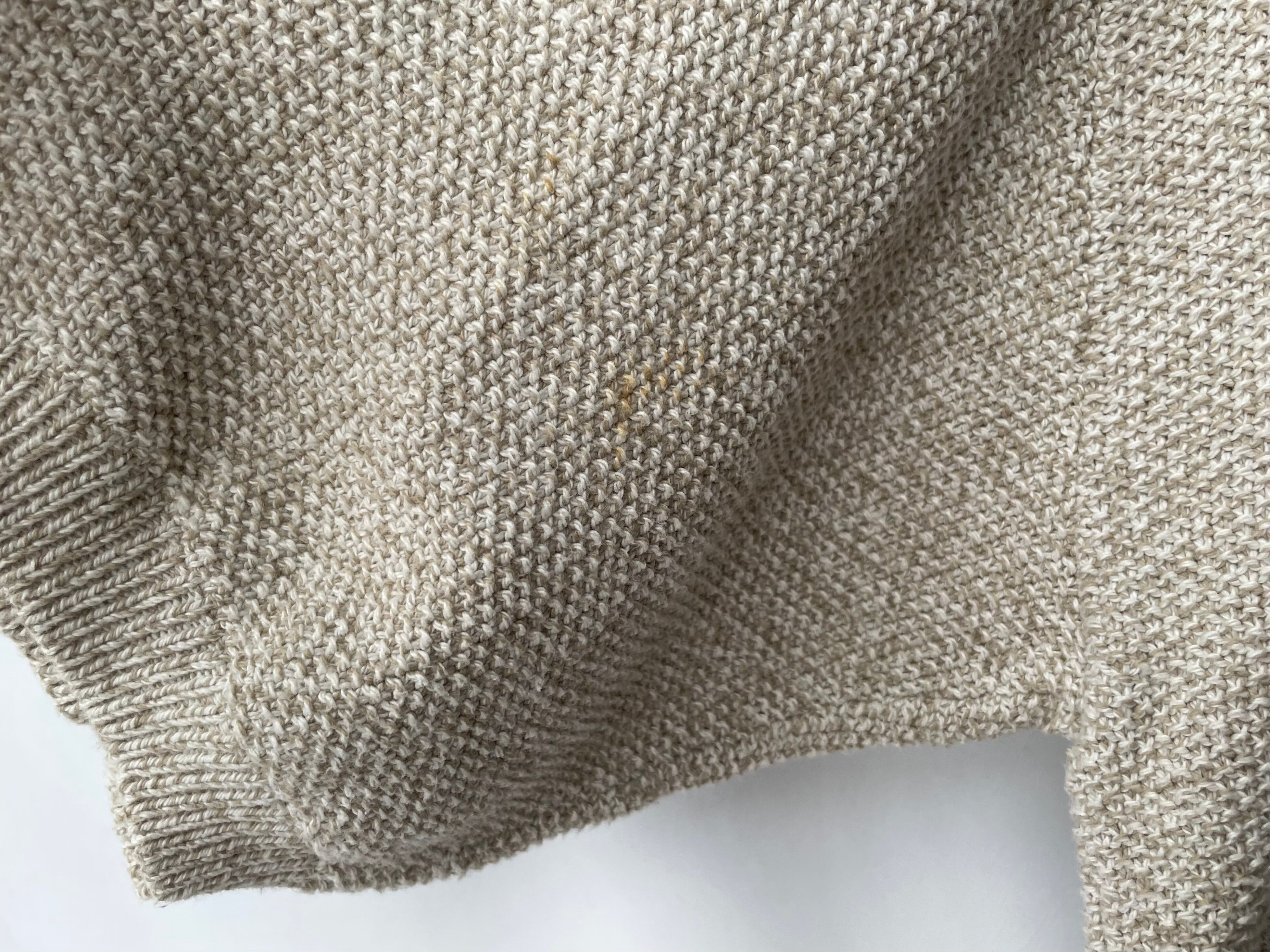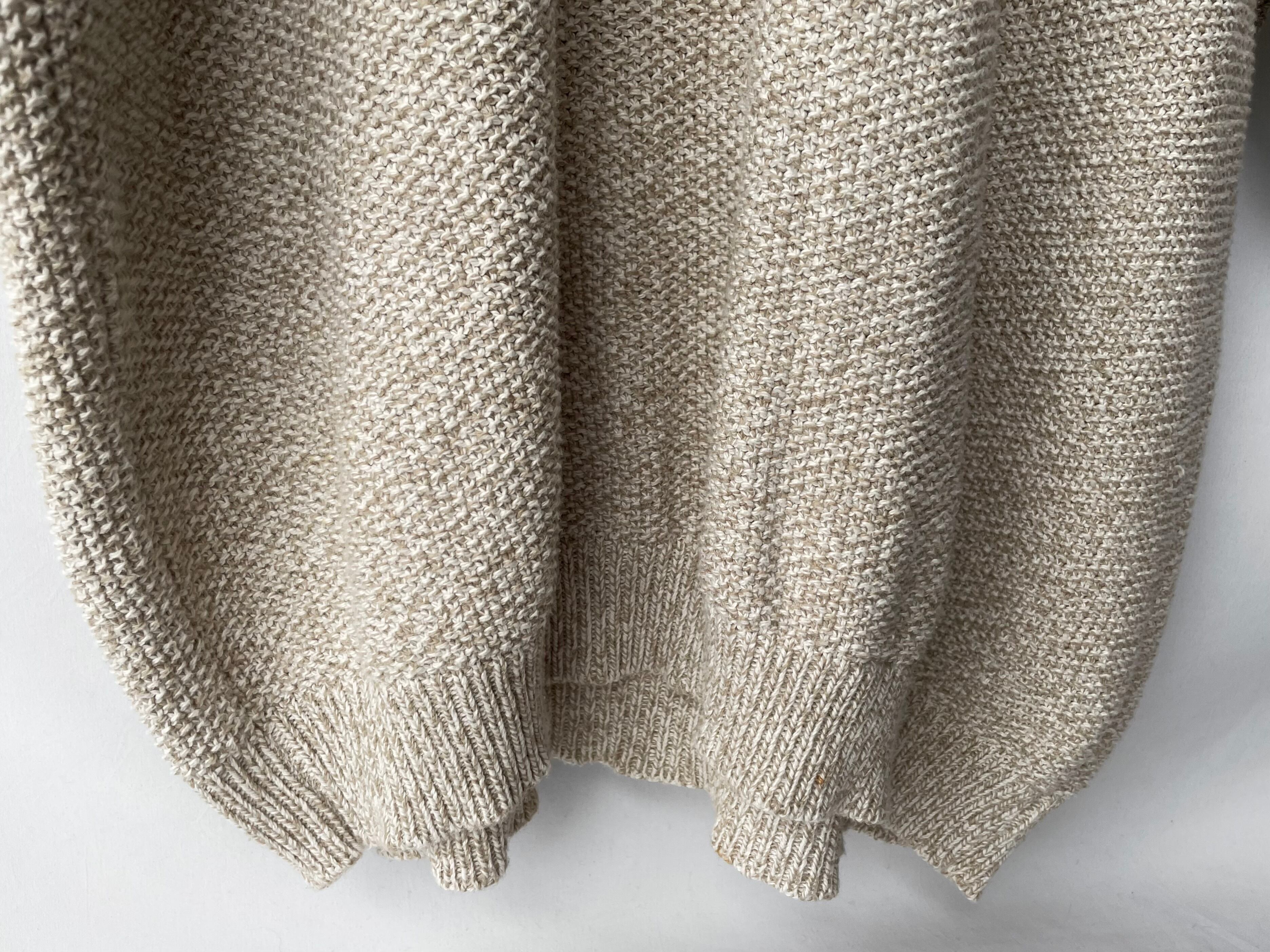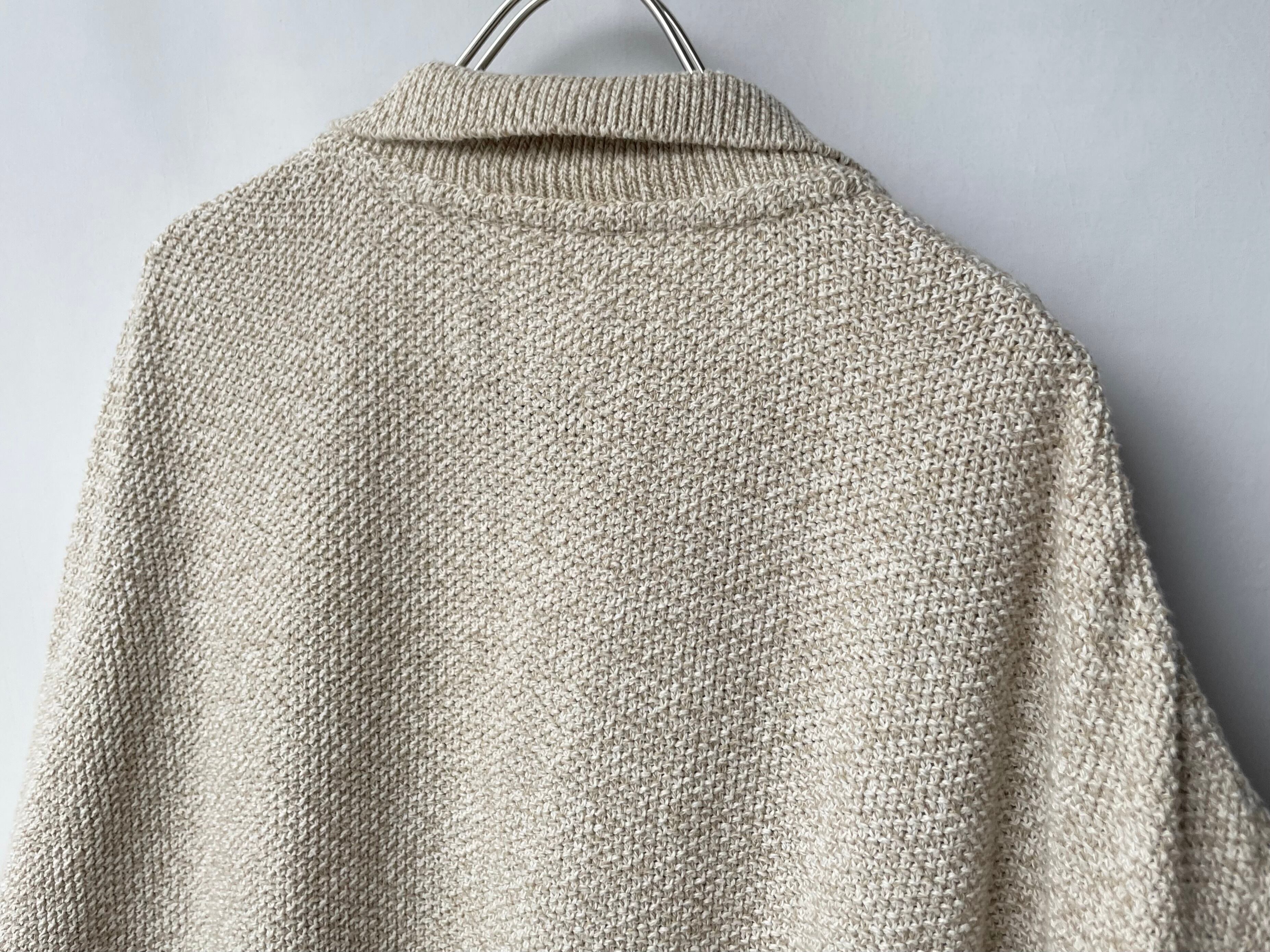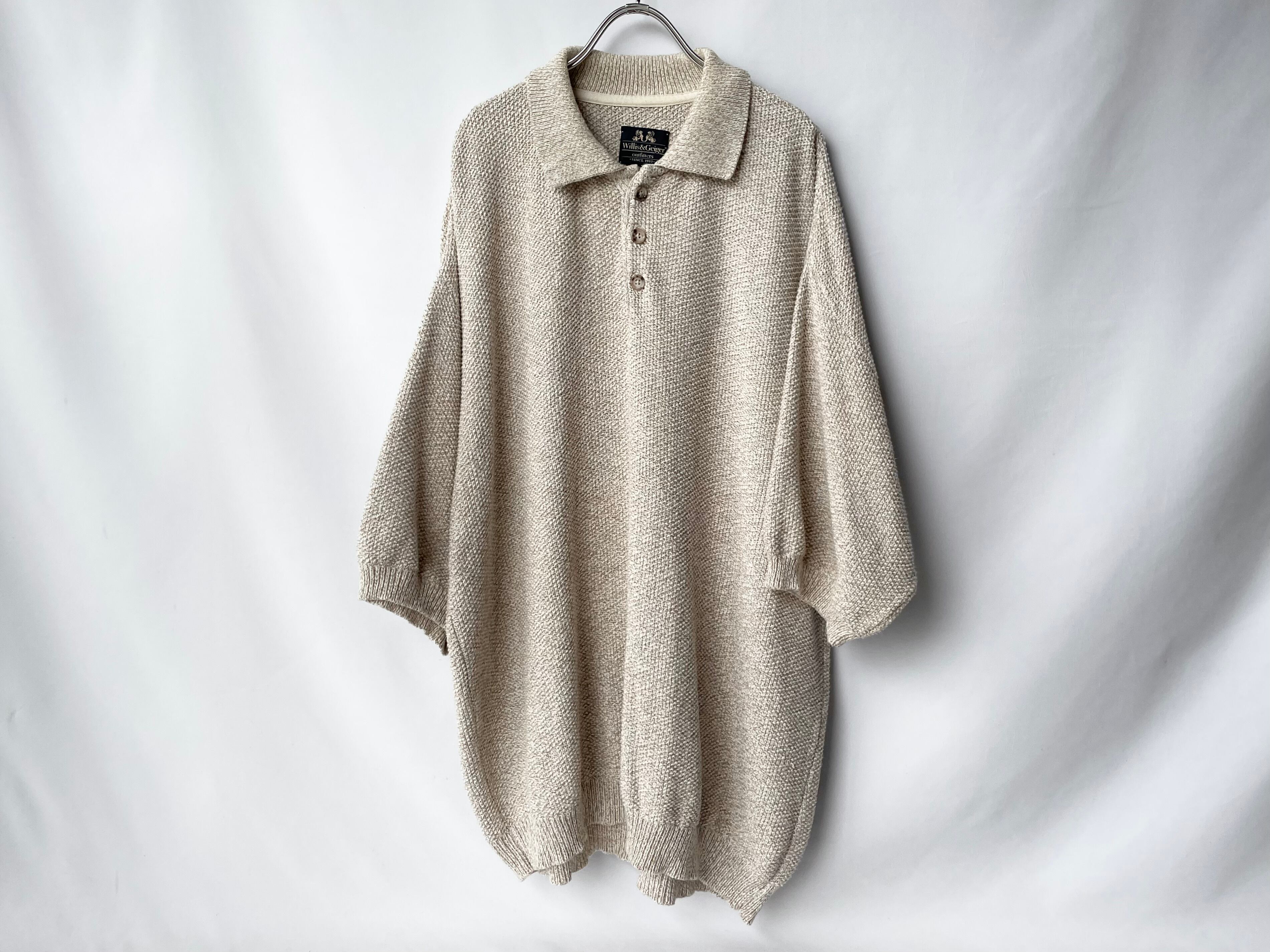 A knit polo style with three buttons on the front. Size L, but a loose silhouette with a width of over 65 cm, which seems to be about XL in actual size.