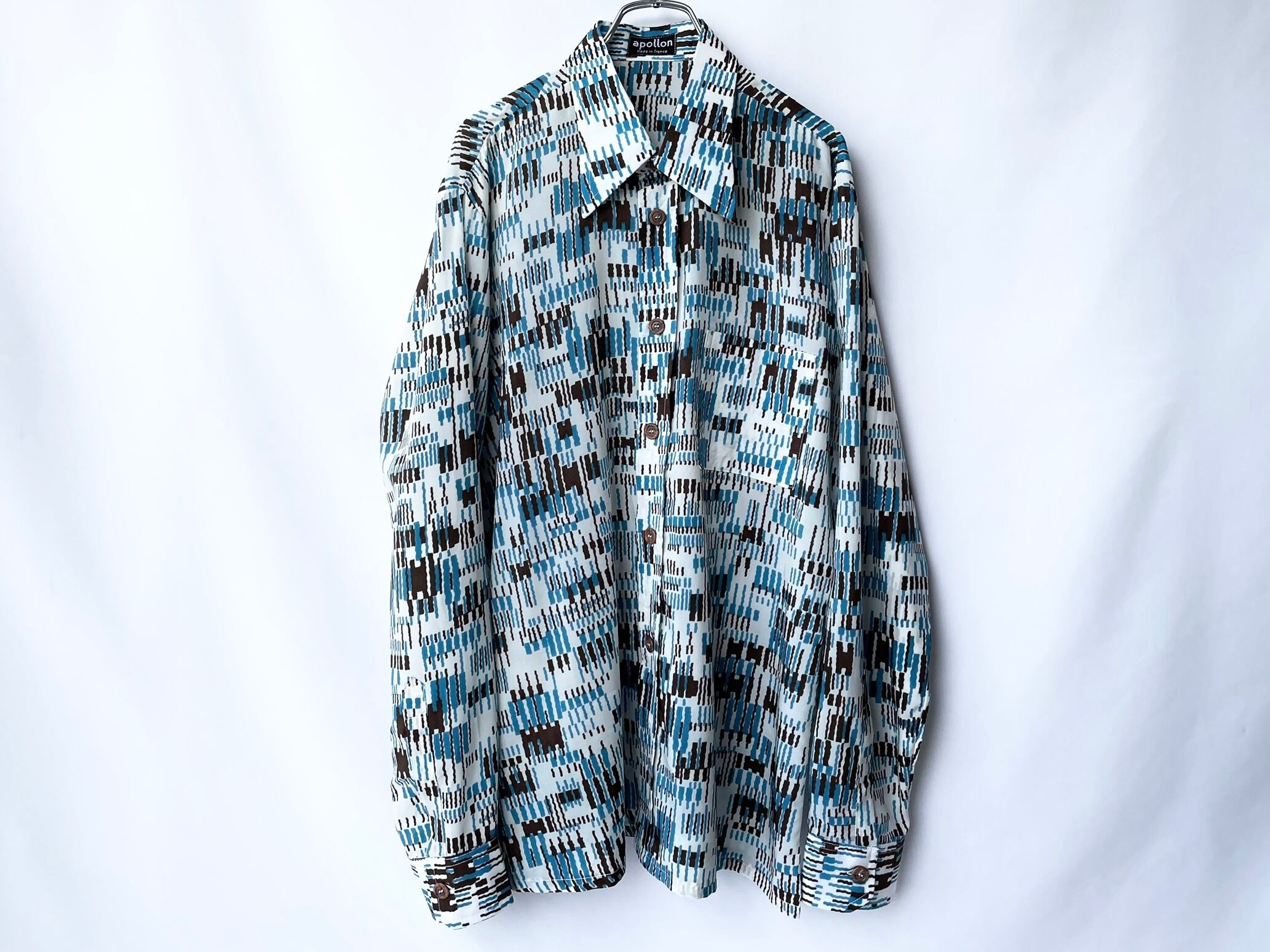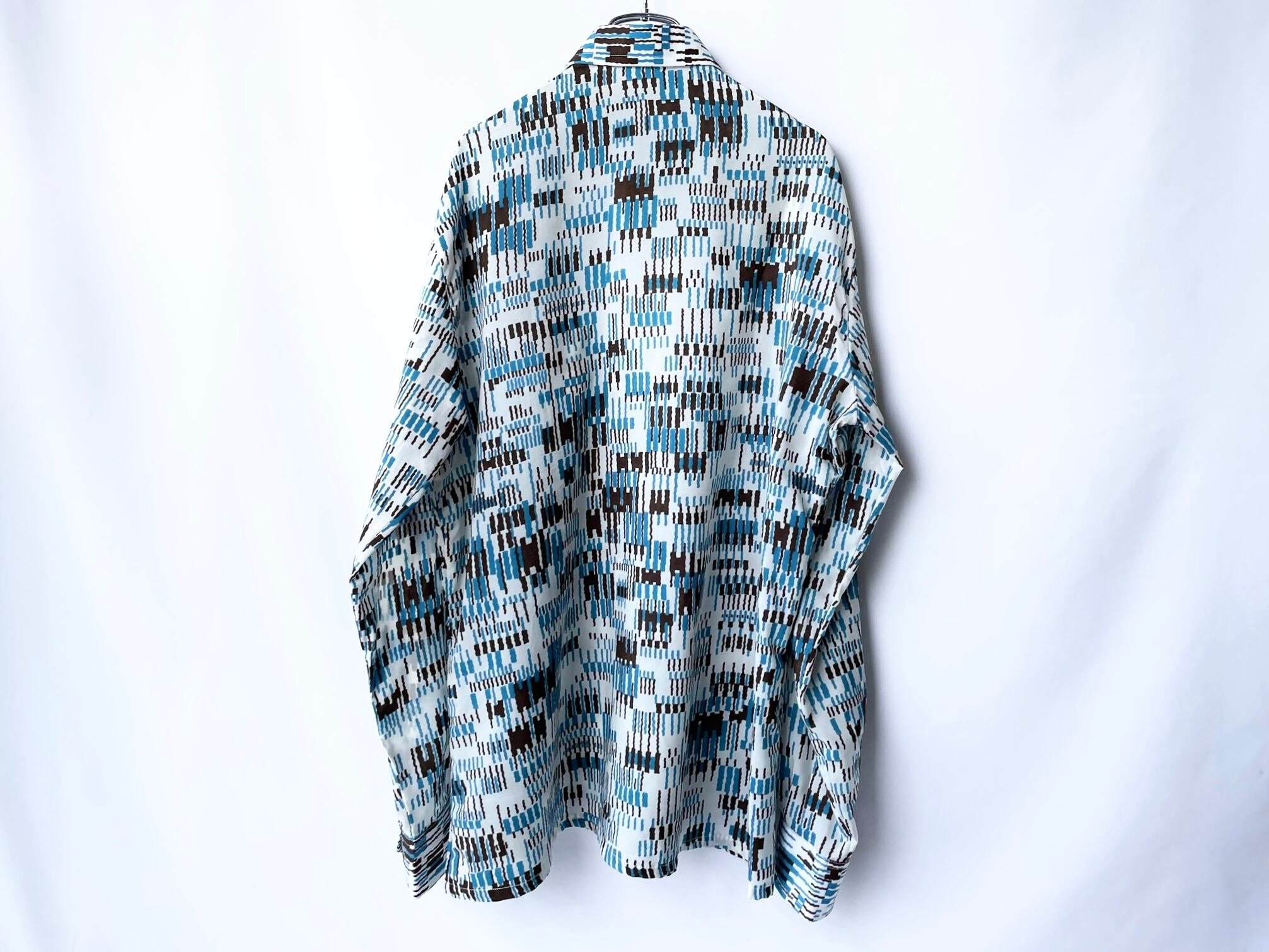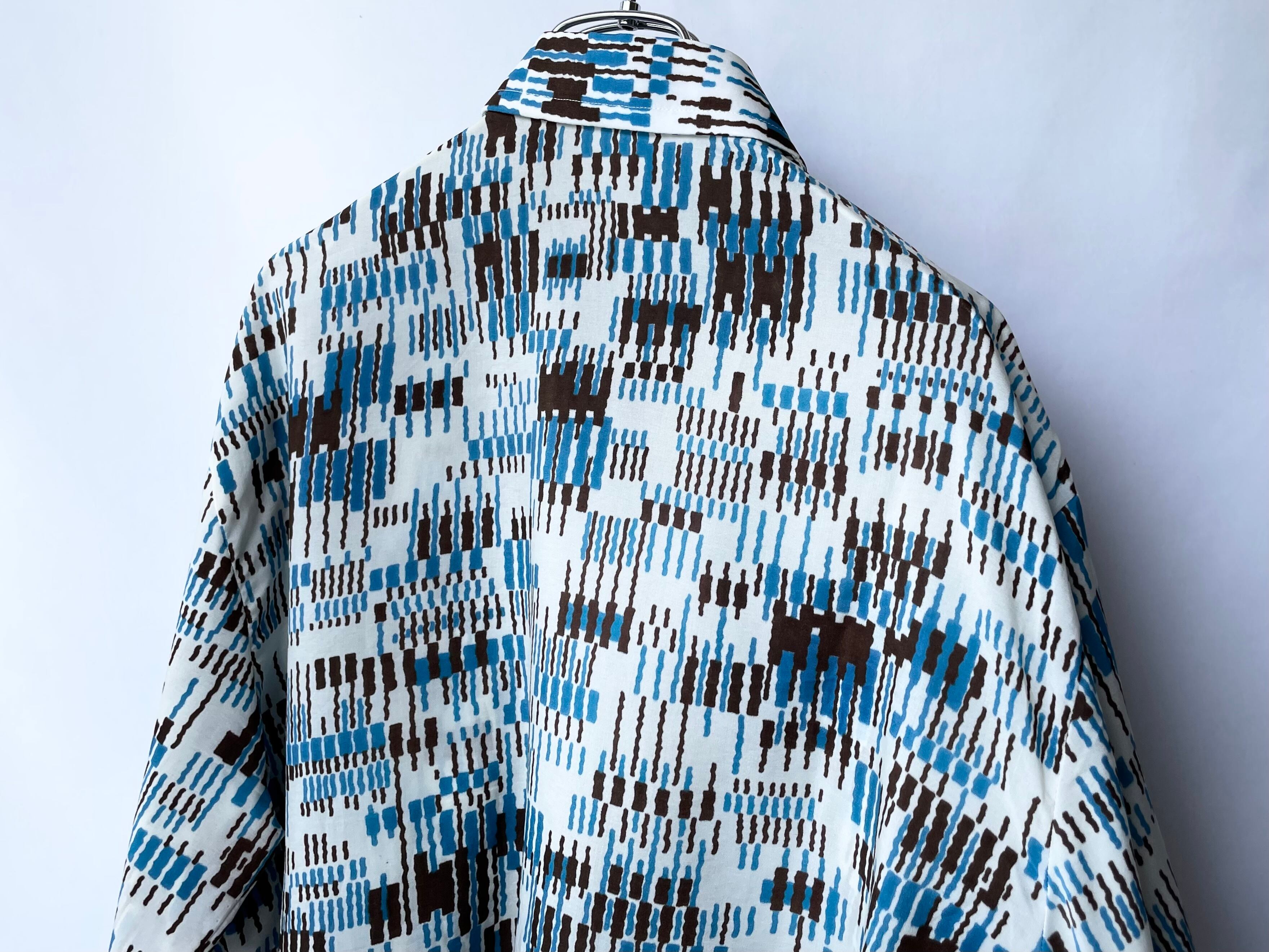 高密度なトリアセテート/ナイロンによる、白/茶/ライトブルーの総柄生地。