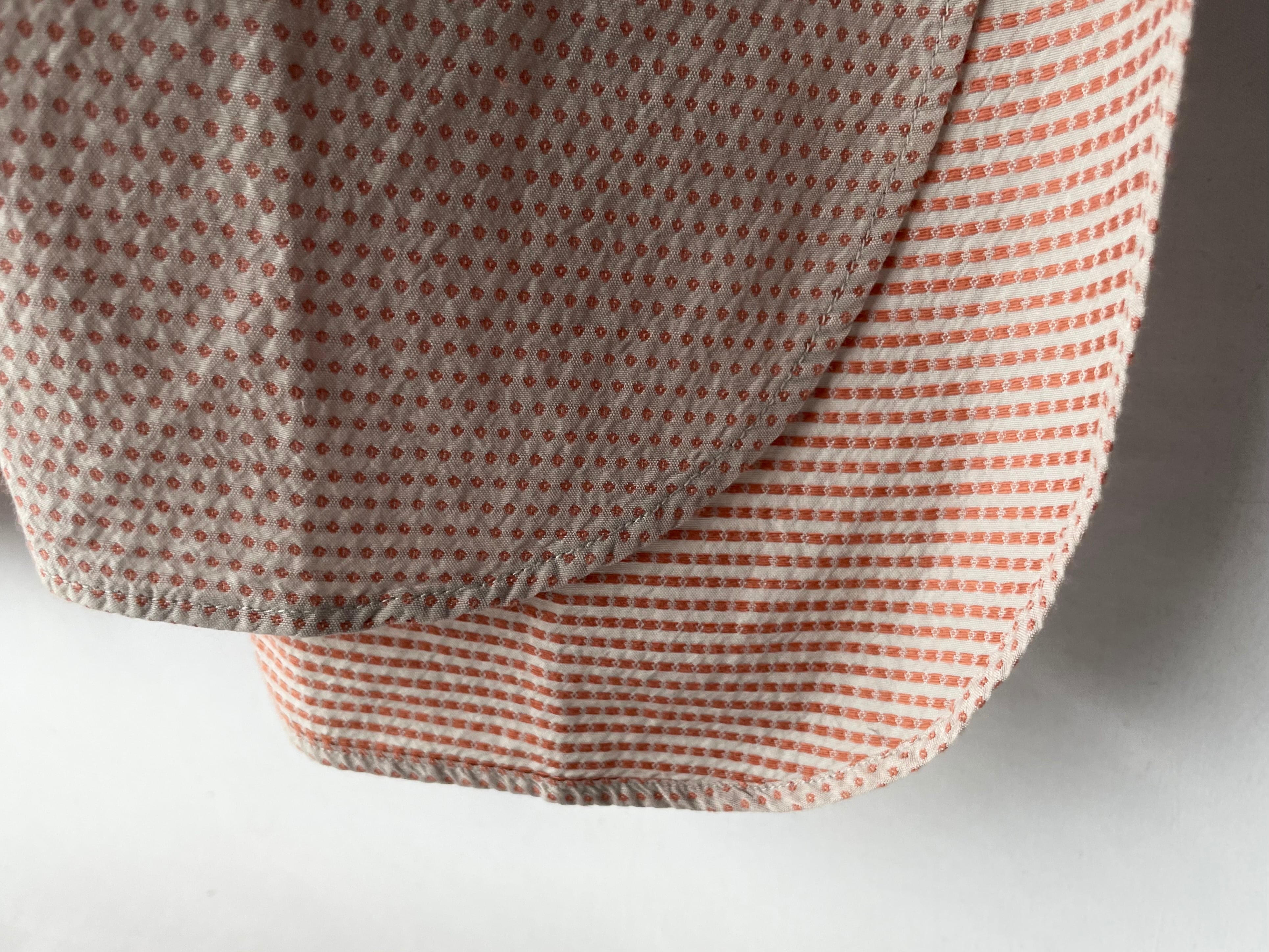 表記はつきませんが、ポリ/レーヨン辺りの混紡生地だと推測します。