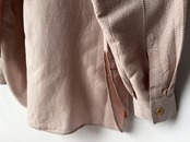 開襟の形も似合う特殊な襟型、両裾深く割れる丸みを帯びたサイドスリット。