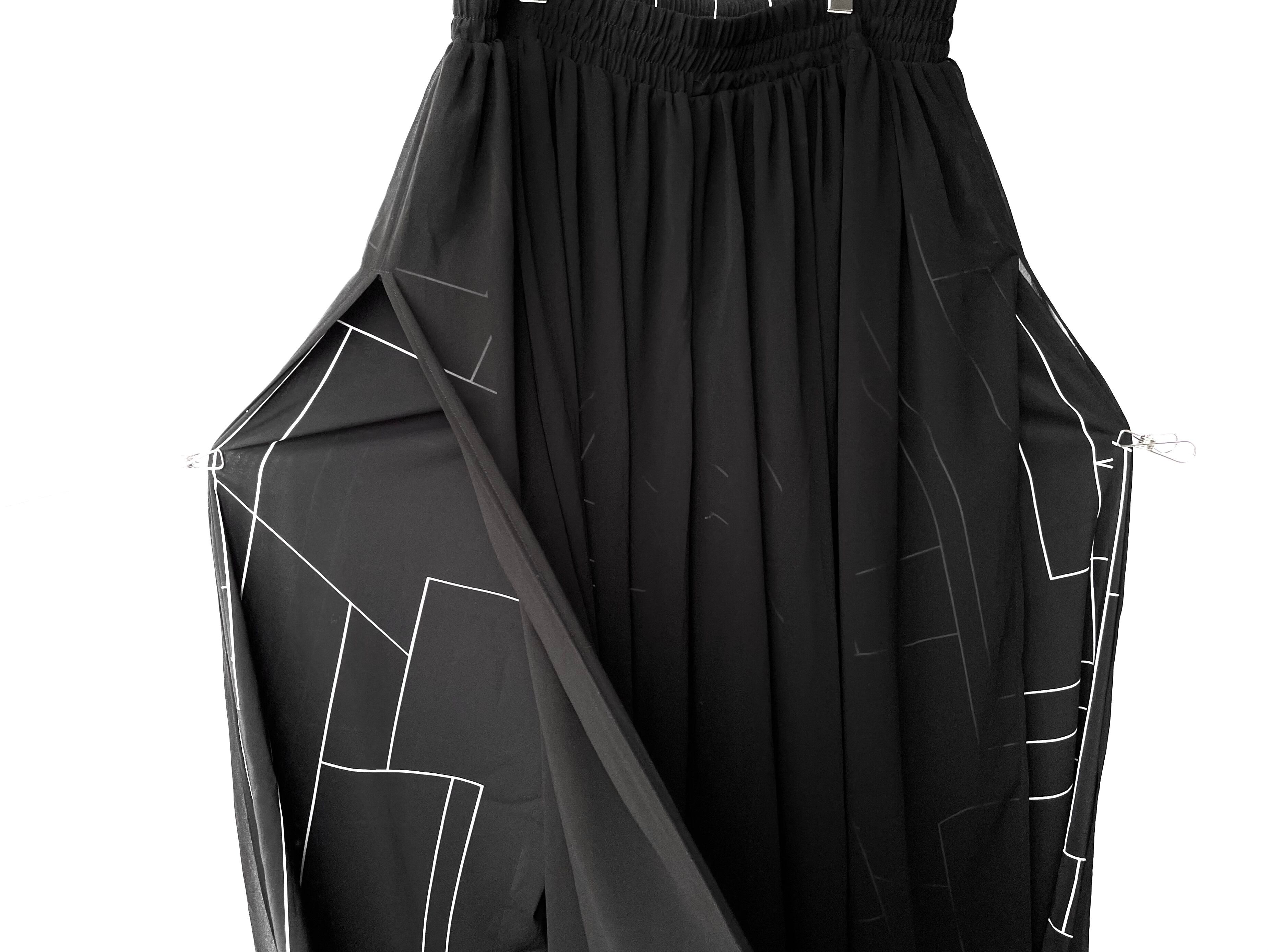 A slightly sheer black-based all-over pattern.