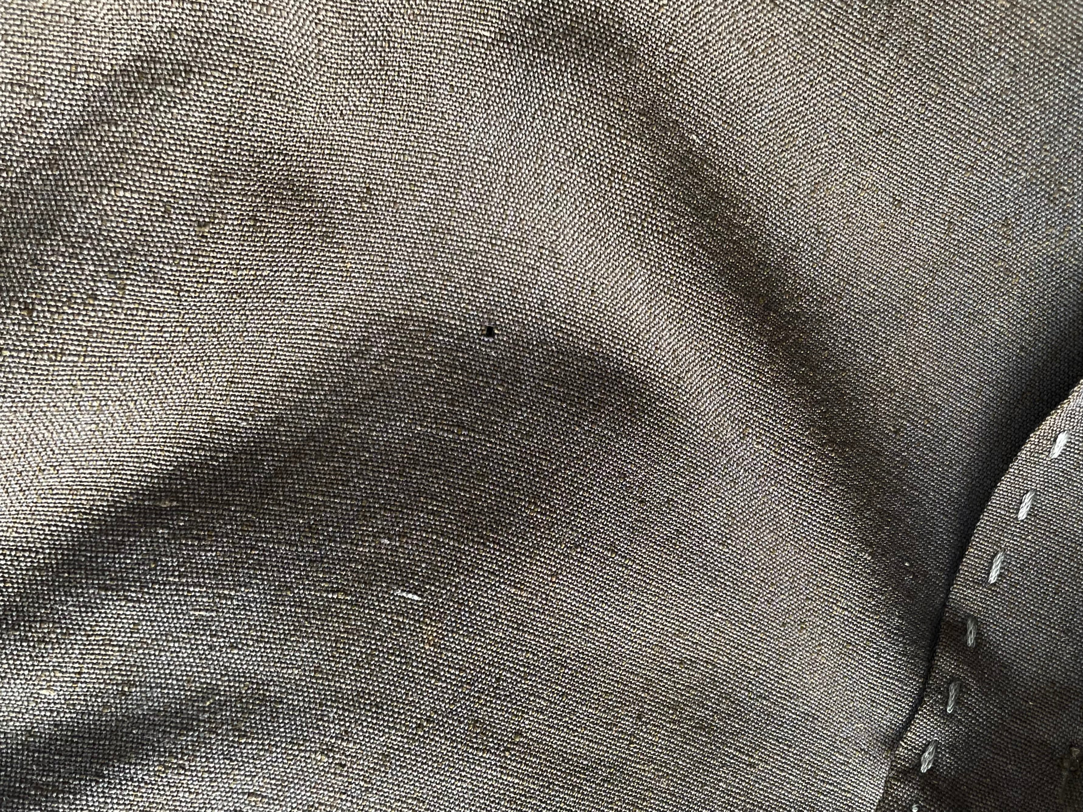 深いカーキブラウンカラー、上質なコットン65/シルク35による素晴らしい表情の染め生地。