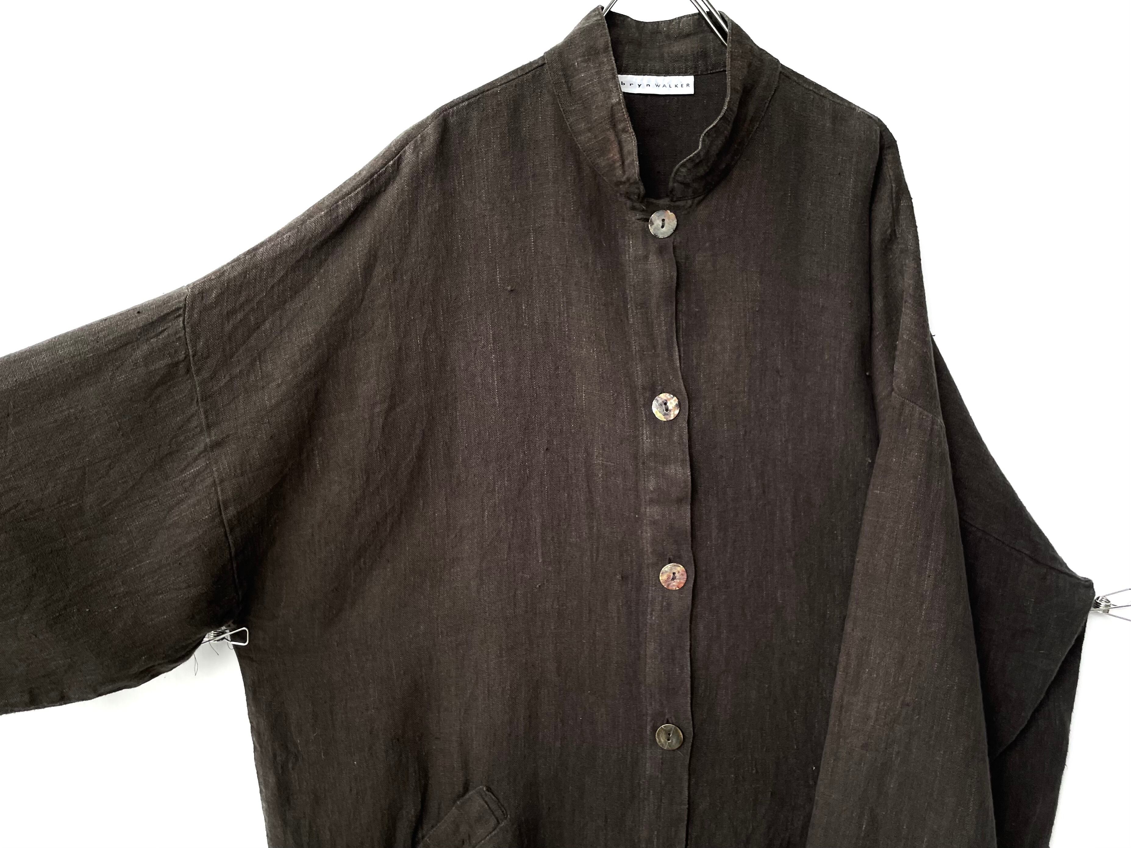 大判なシェルボタンフロント、角の取れた小ぶりなマオカラー。