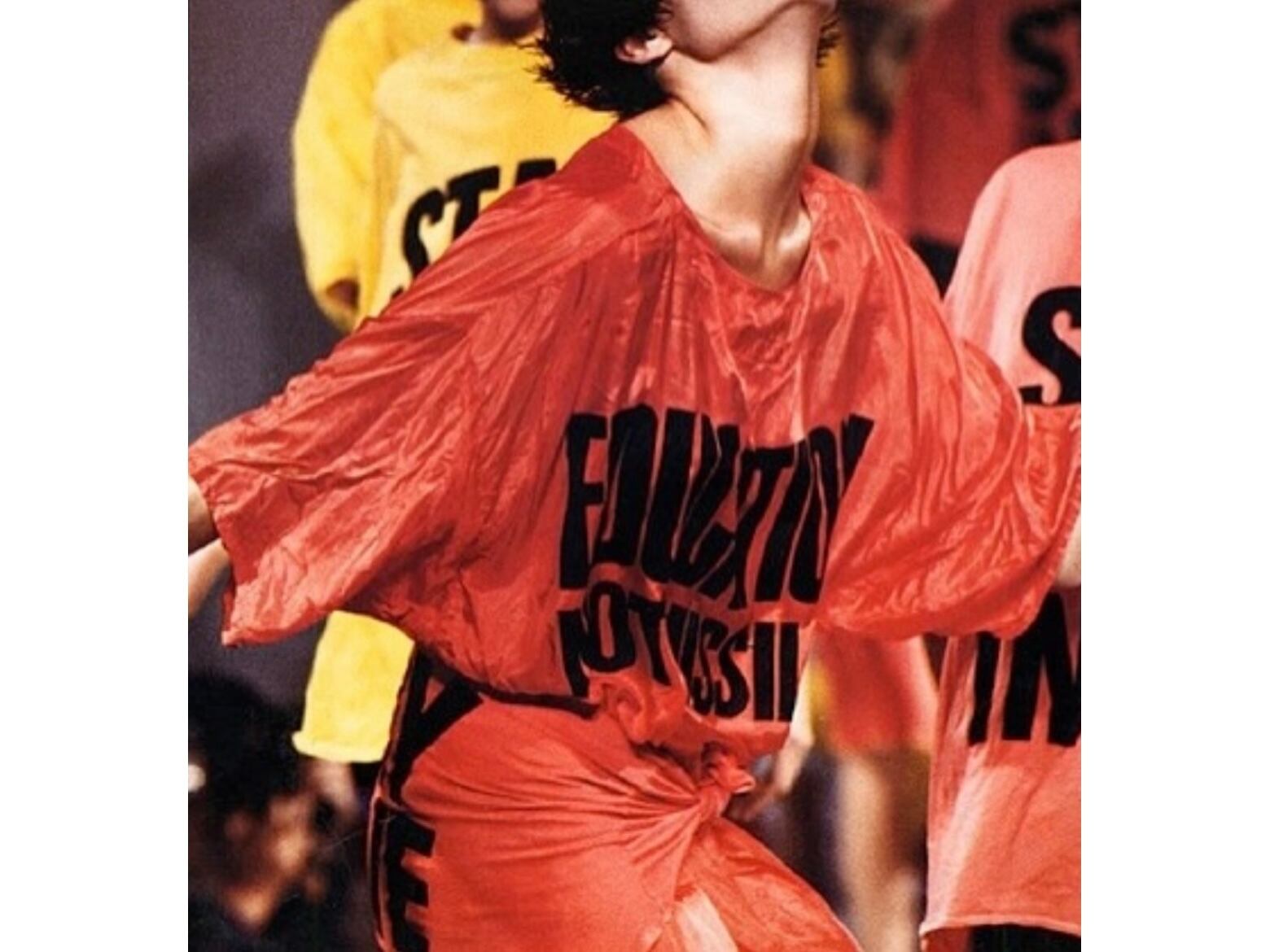 当時のランウェイでもメッセージの乗った同モデルが数着確認できますが、(画像6-8枚目)