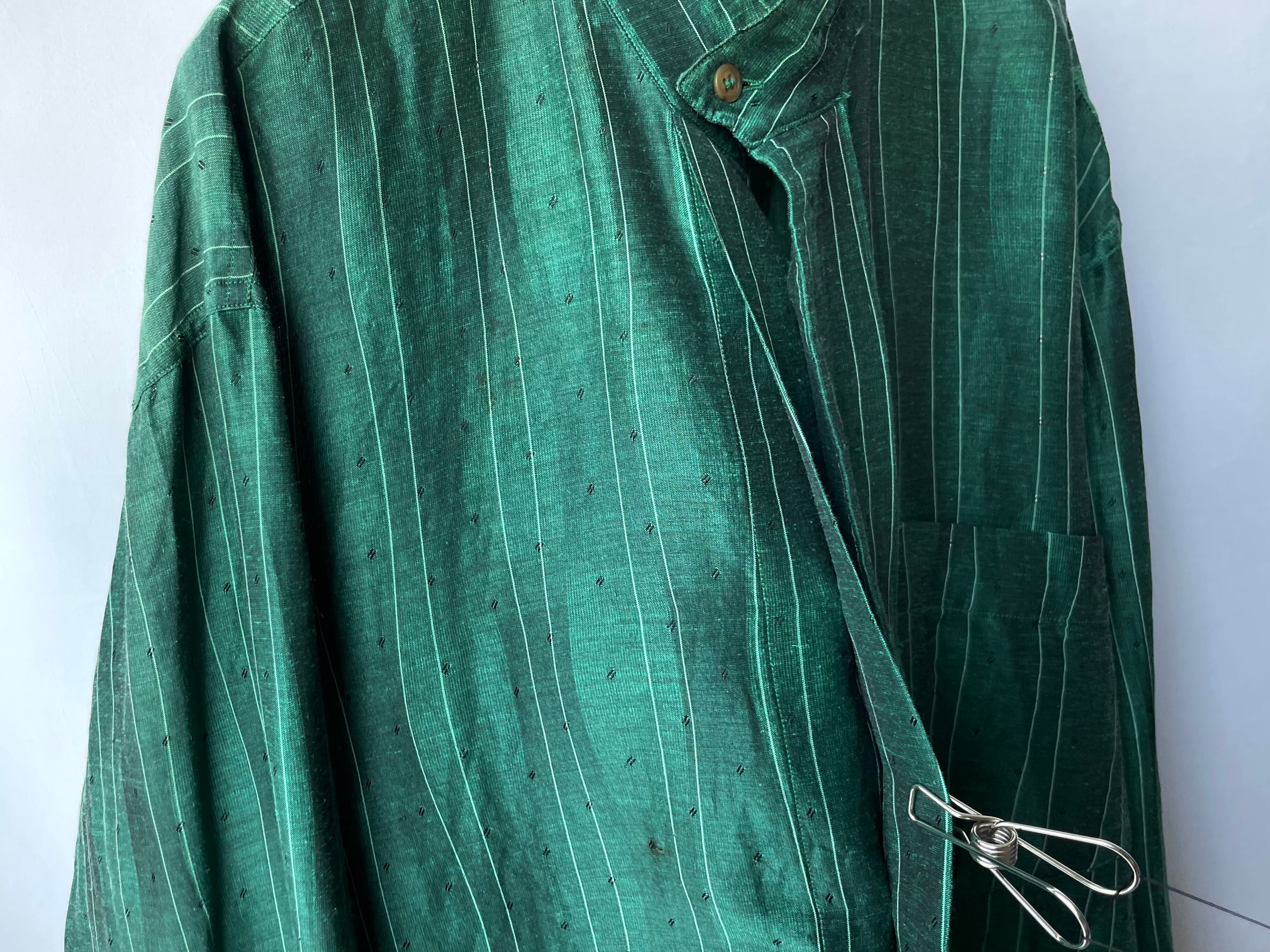 キュプラ特有の艶のある鮮色、麻/綿生地の素朴な風合いと柔らかな肌触りが同居した、面白い質感の生地が使用されております。