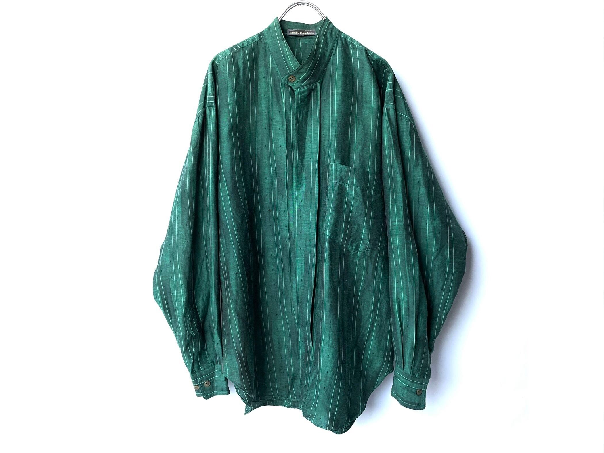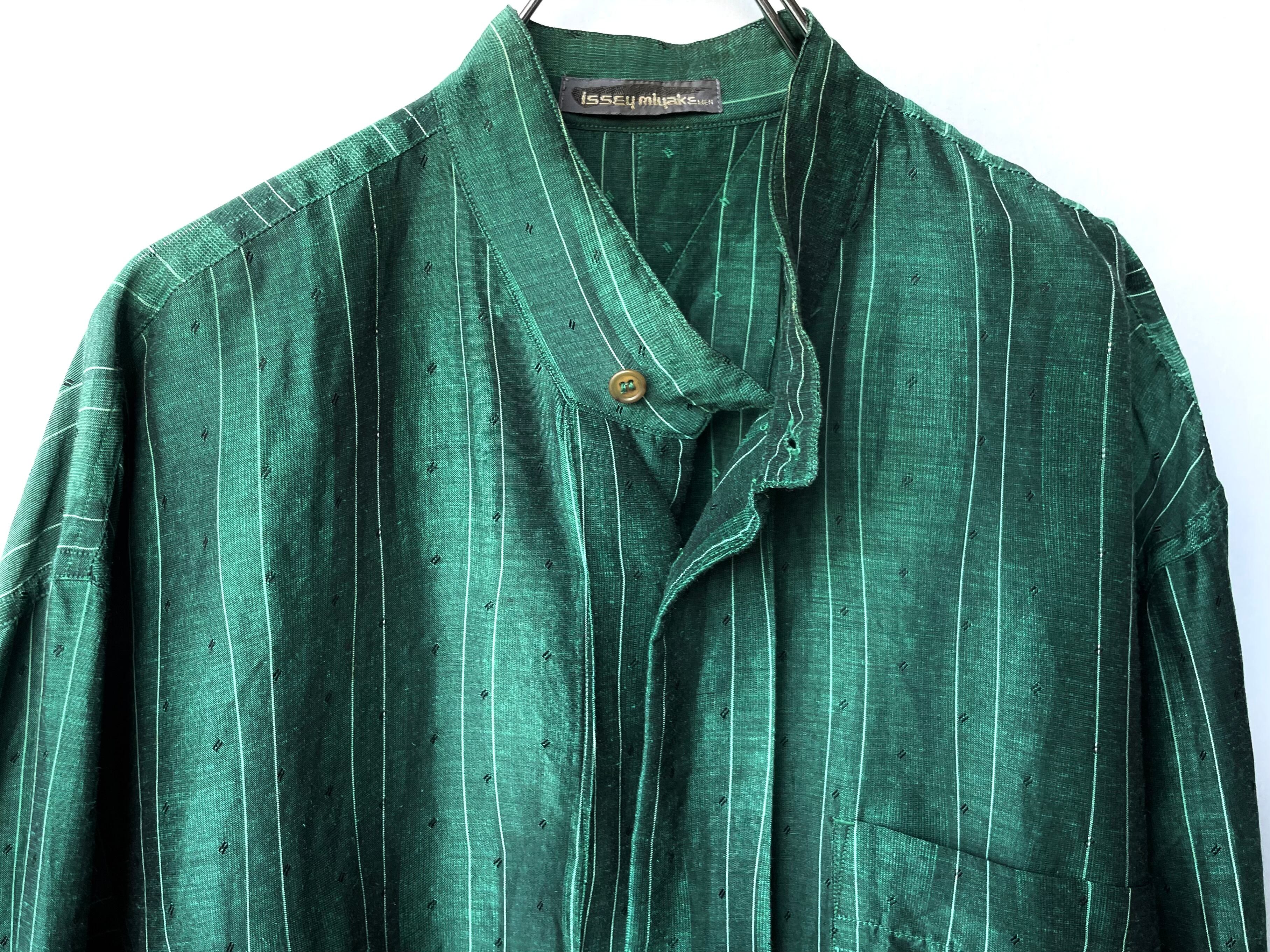 遊びのある比翼の前立てに、首に巻きつく様な角のあるスタンドカラー。