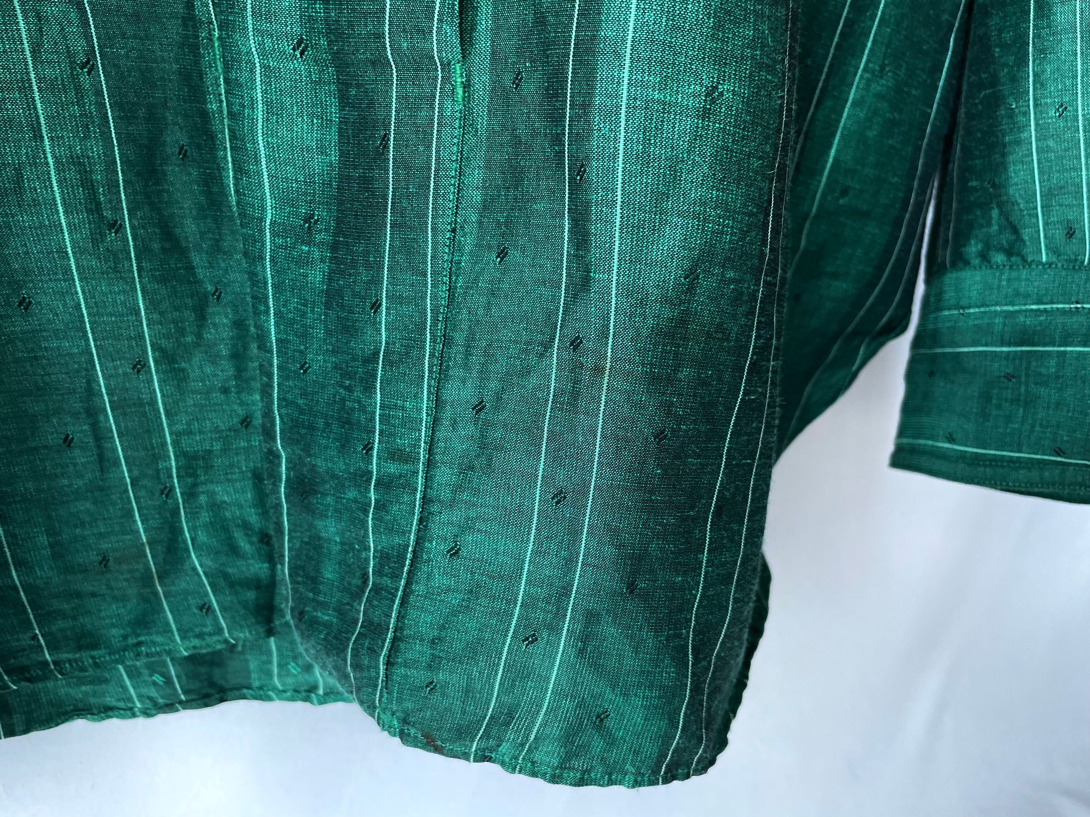 This fabric combines the lustrous, vibrant color of cupra with the rustic feel and soft touch of linen and cotton, creating an interesting texture.