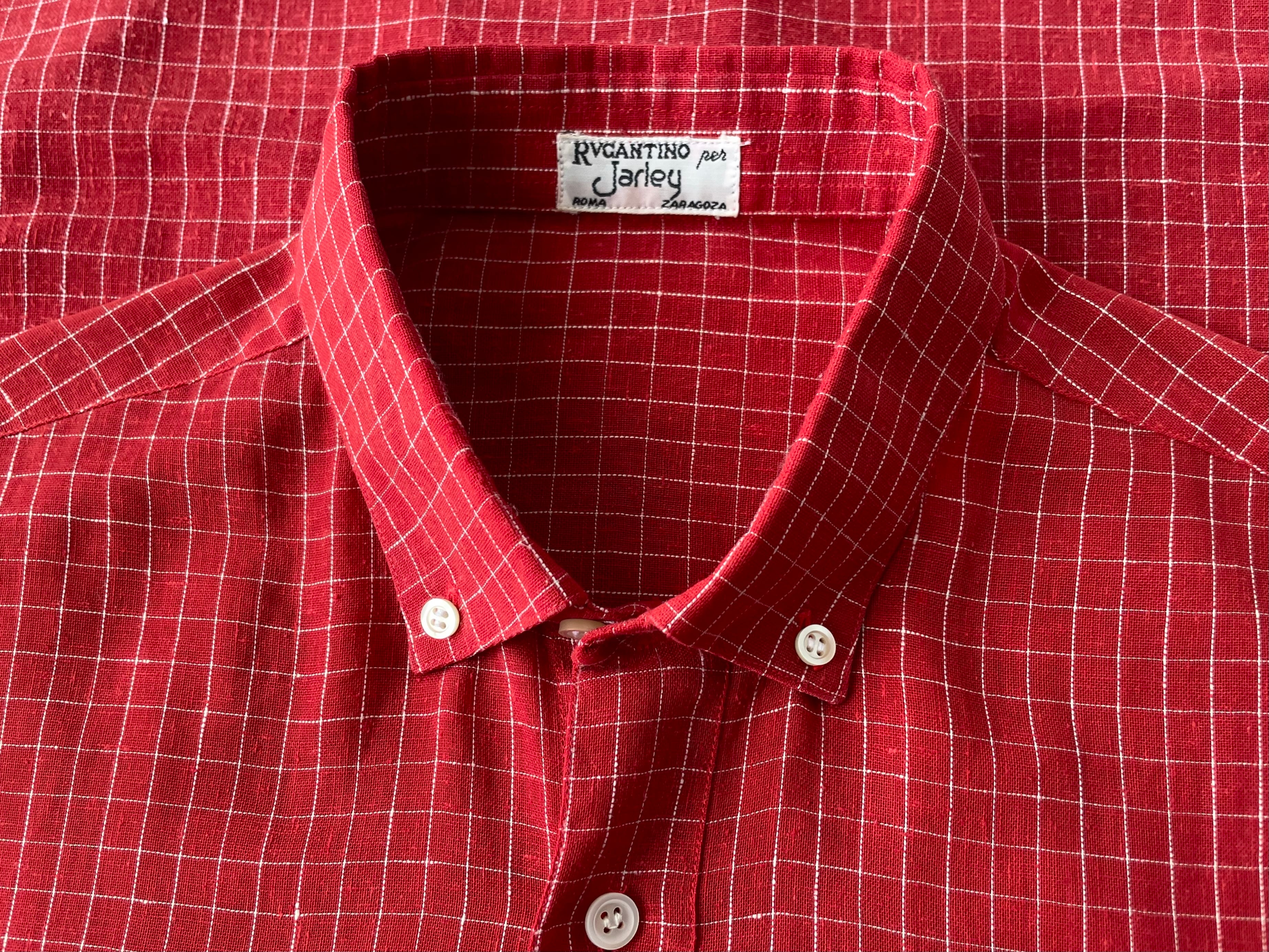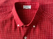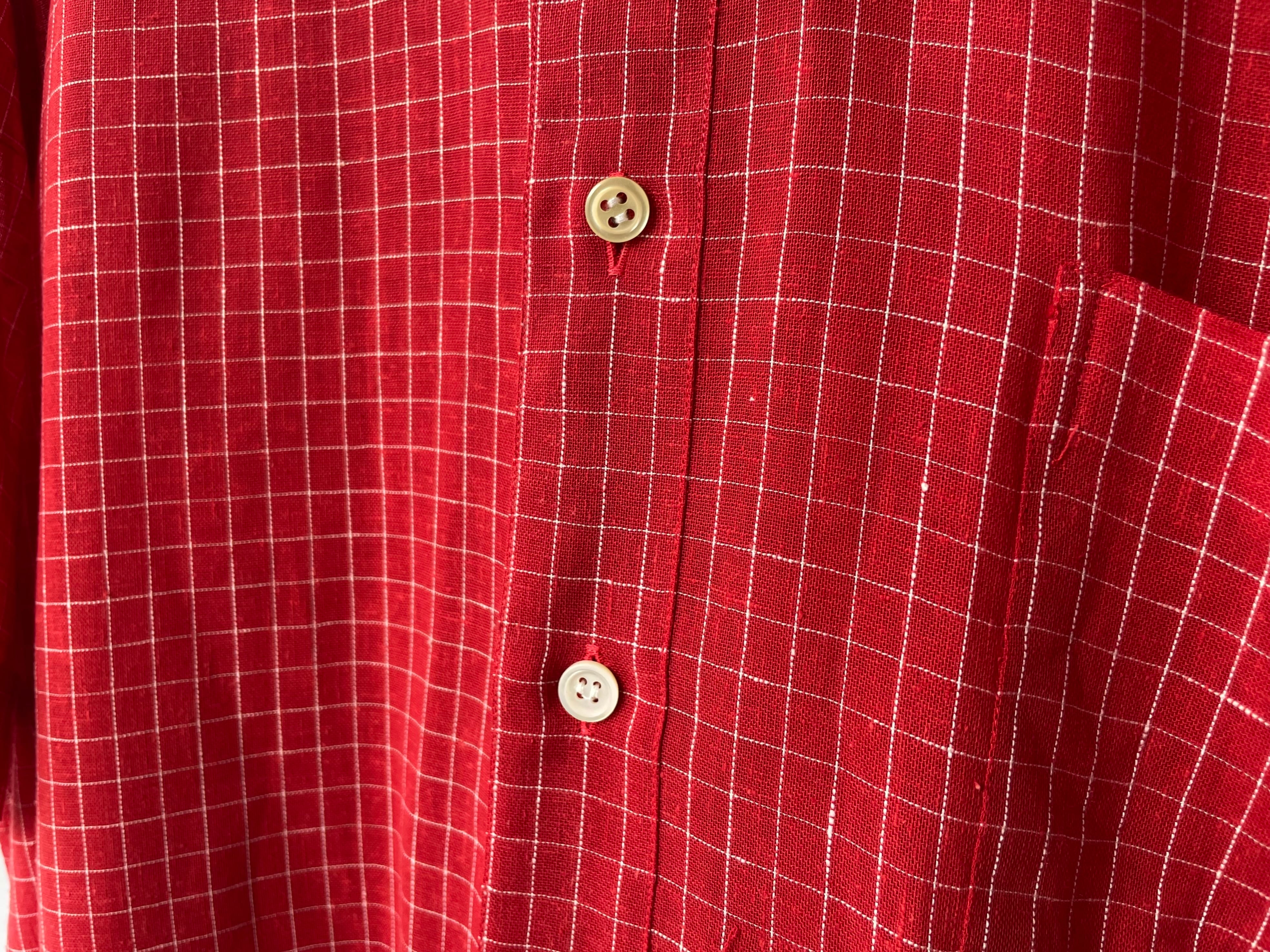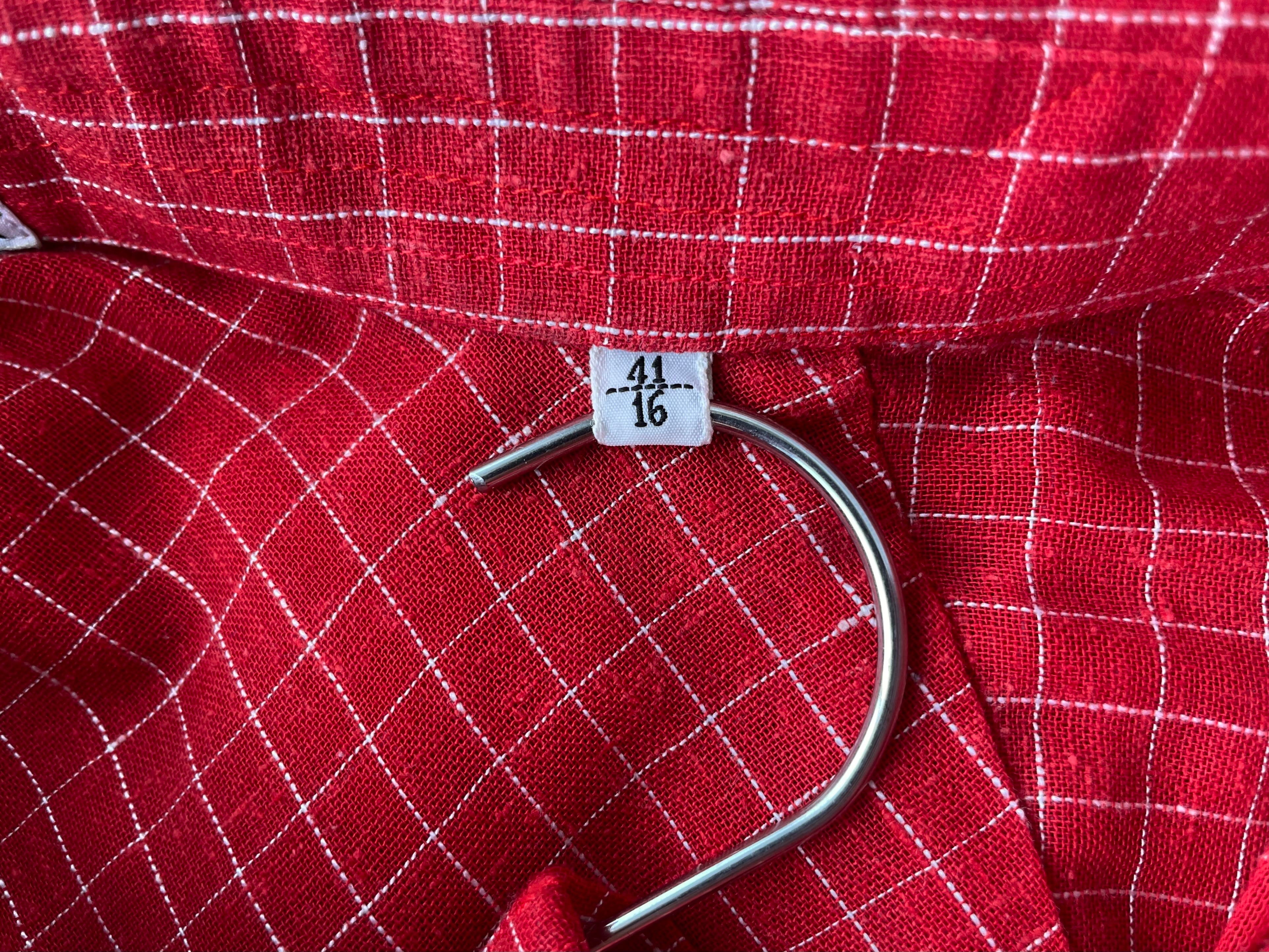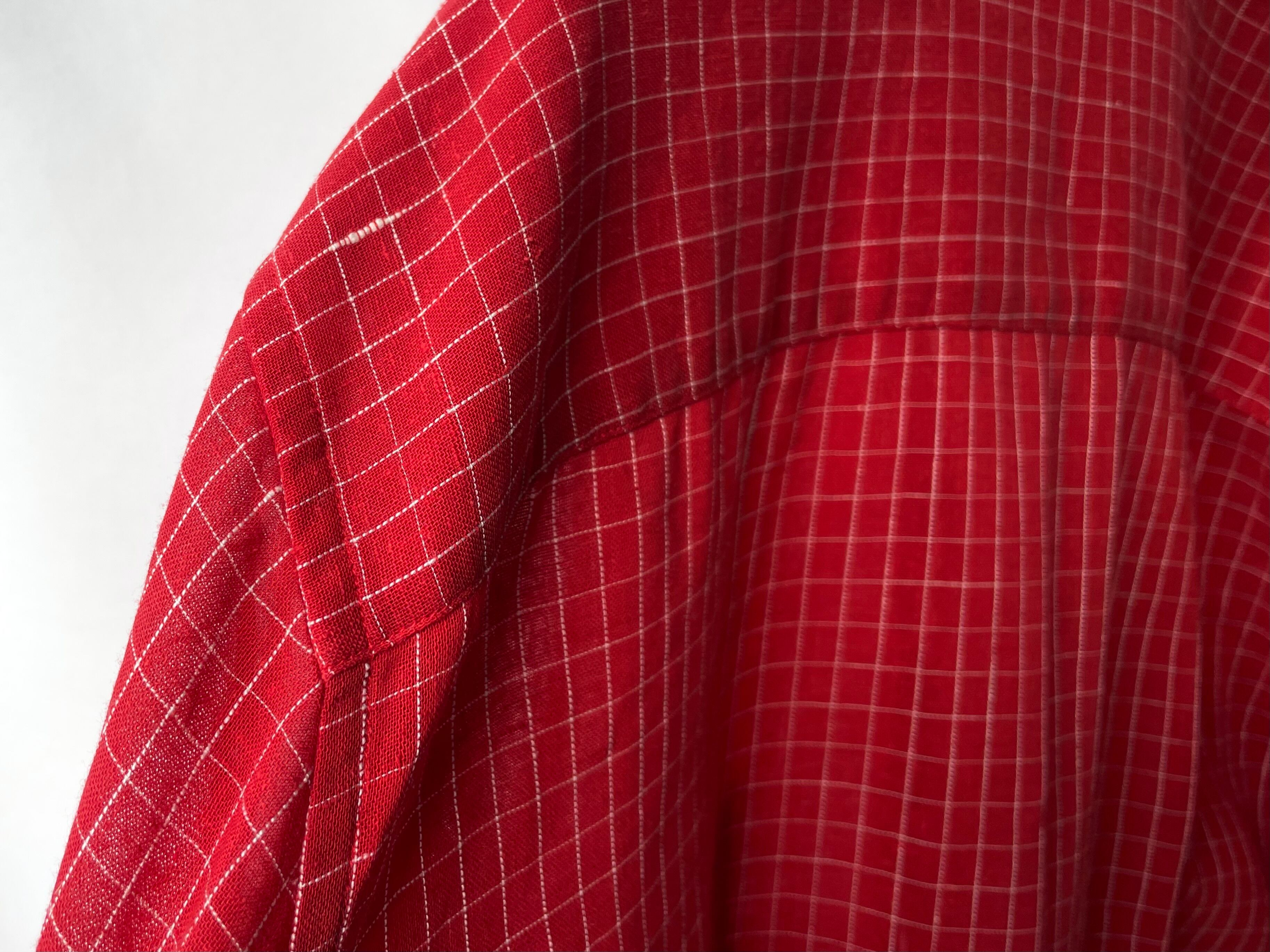 良い発色の赤ボディに細かな白糸が乗った、細かな格子柄。