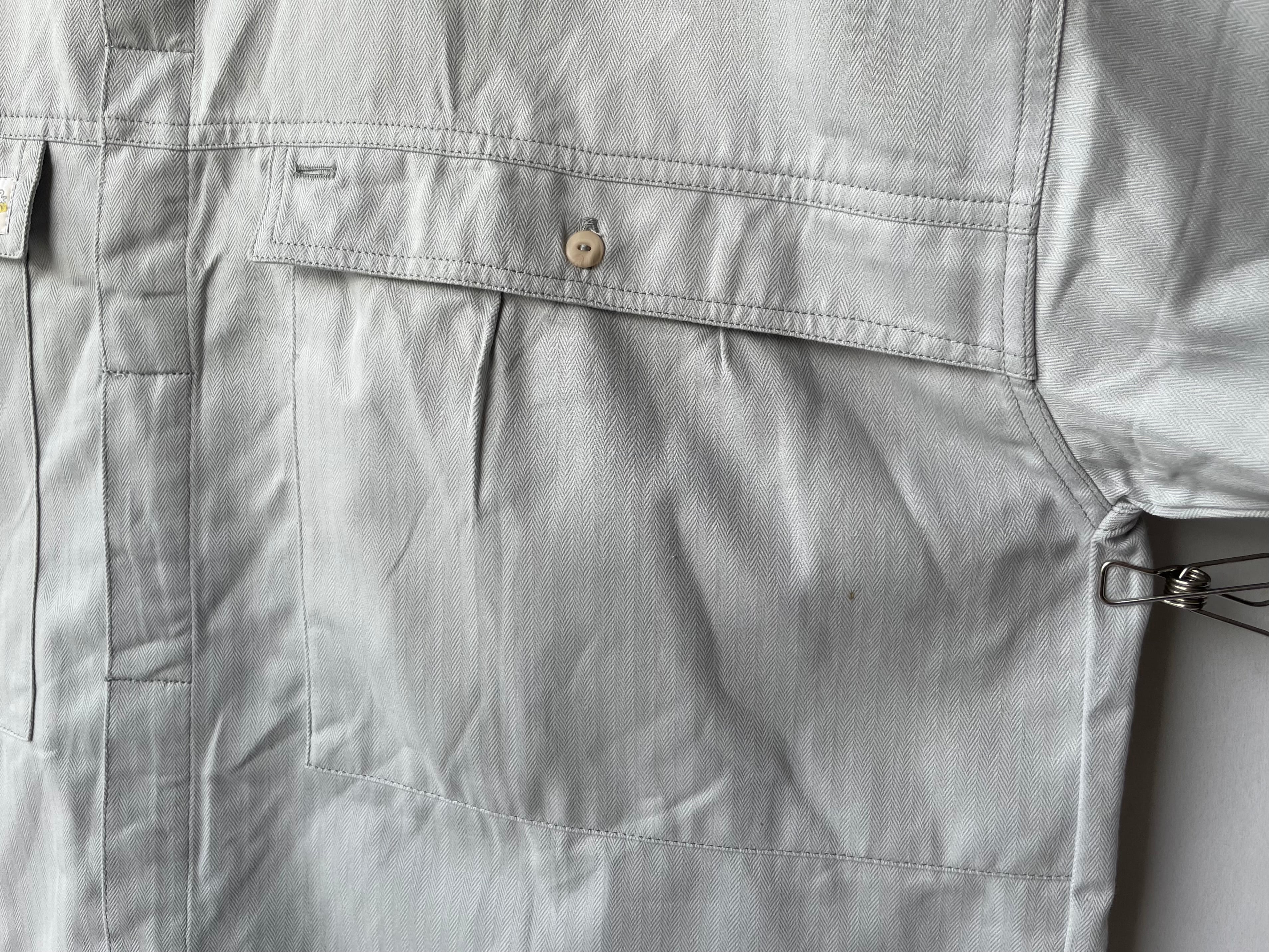 無機質なライトグレーの細かなヘリンボーンツイル。