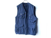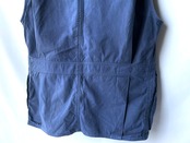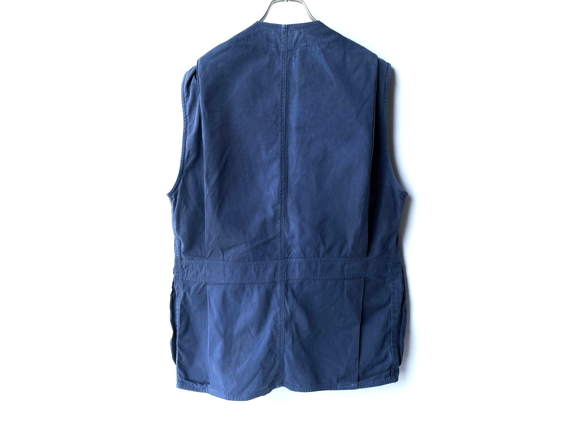 Instead of the hunting pockets commonly found on the backs of older models, the vest features a sash and action pleats for a sculpted look.
