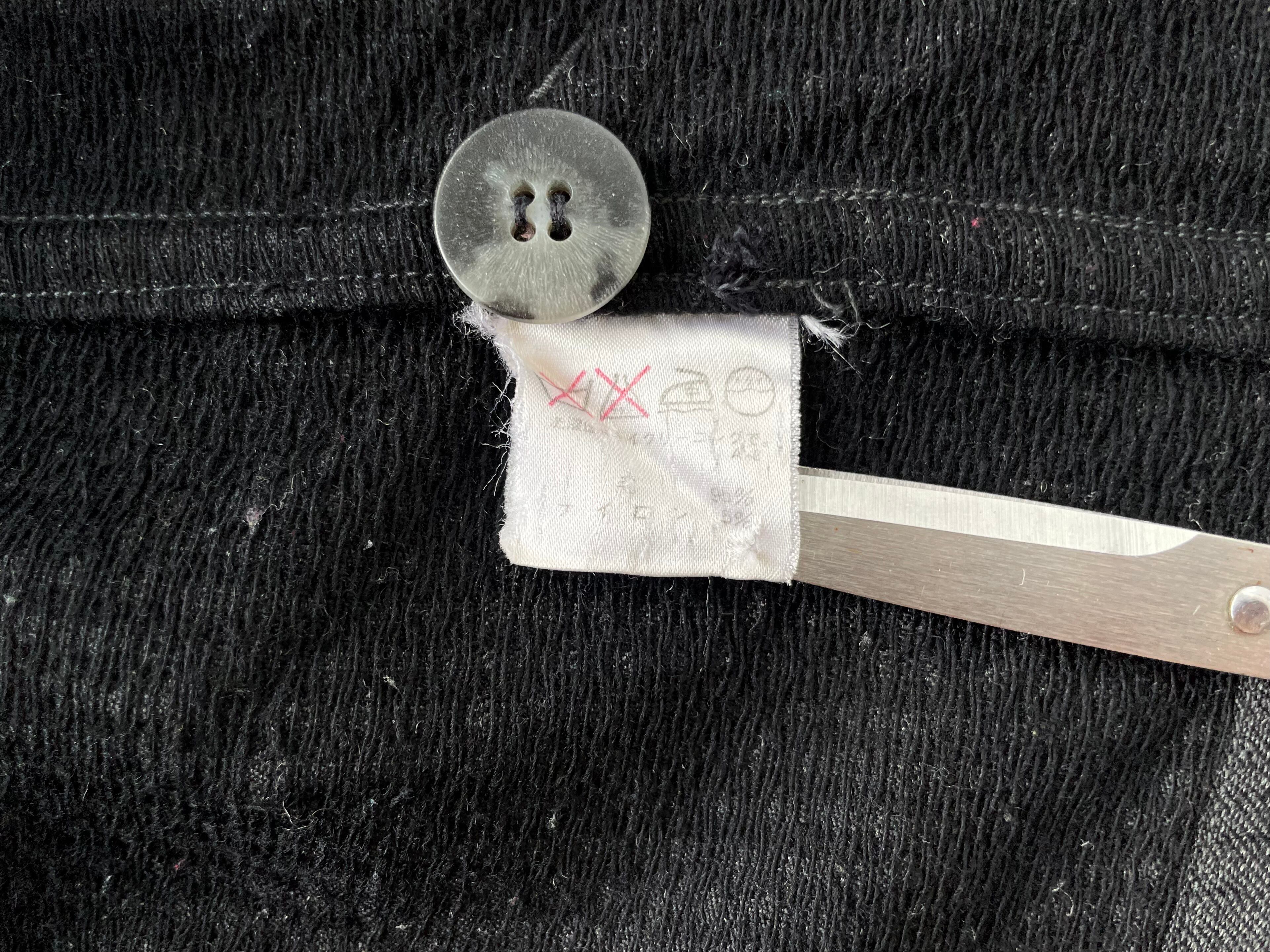 Large hem pockets with striking square stitching and a button adjuster made from the same fabric at the back hem.