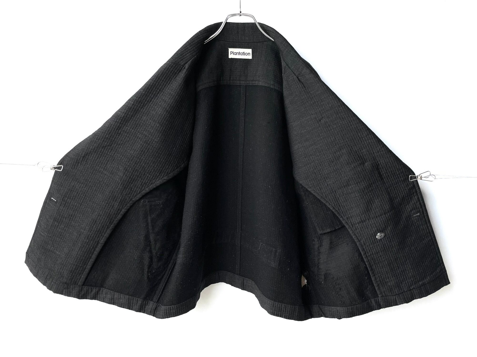 腹部一段のダブルブレスト、直線的な袖付けのワイドスリーブ。