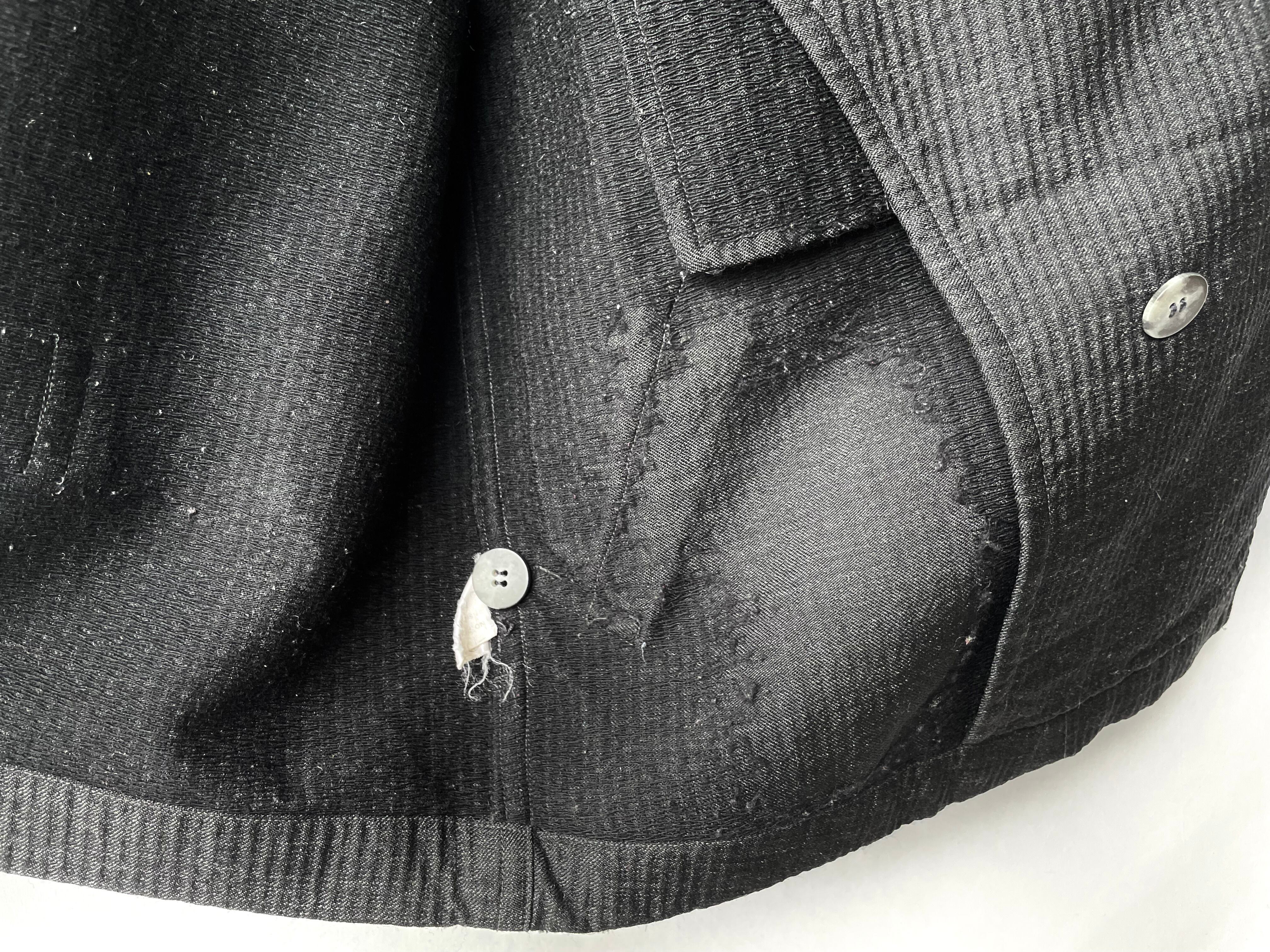ラペル裏に重なる様な縦方向のスリットポケット。