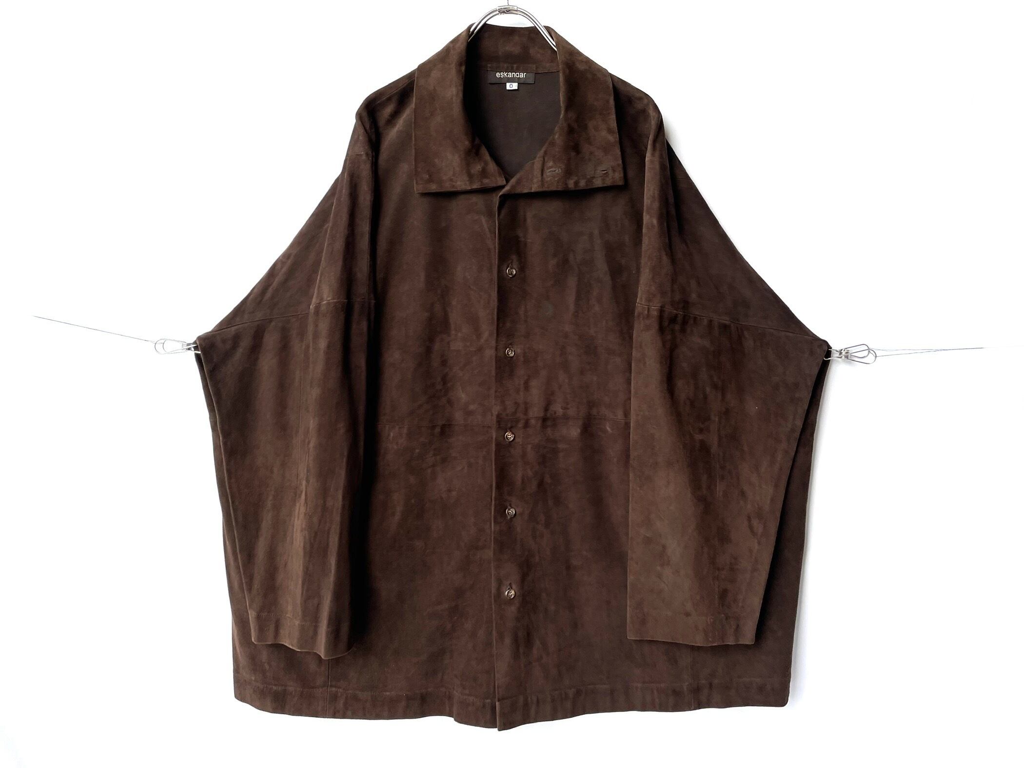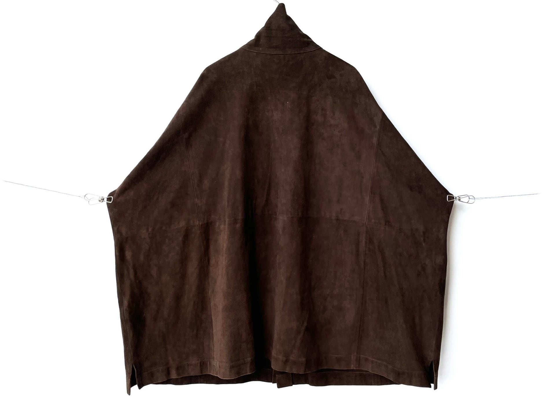 トップクオリティのレザー生地による、縦横が逆転した平面的なワイドシルエット。(着丈70cm/身幅79cm)