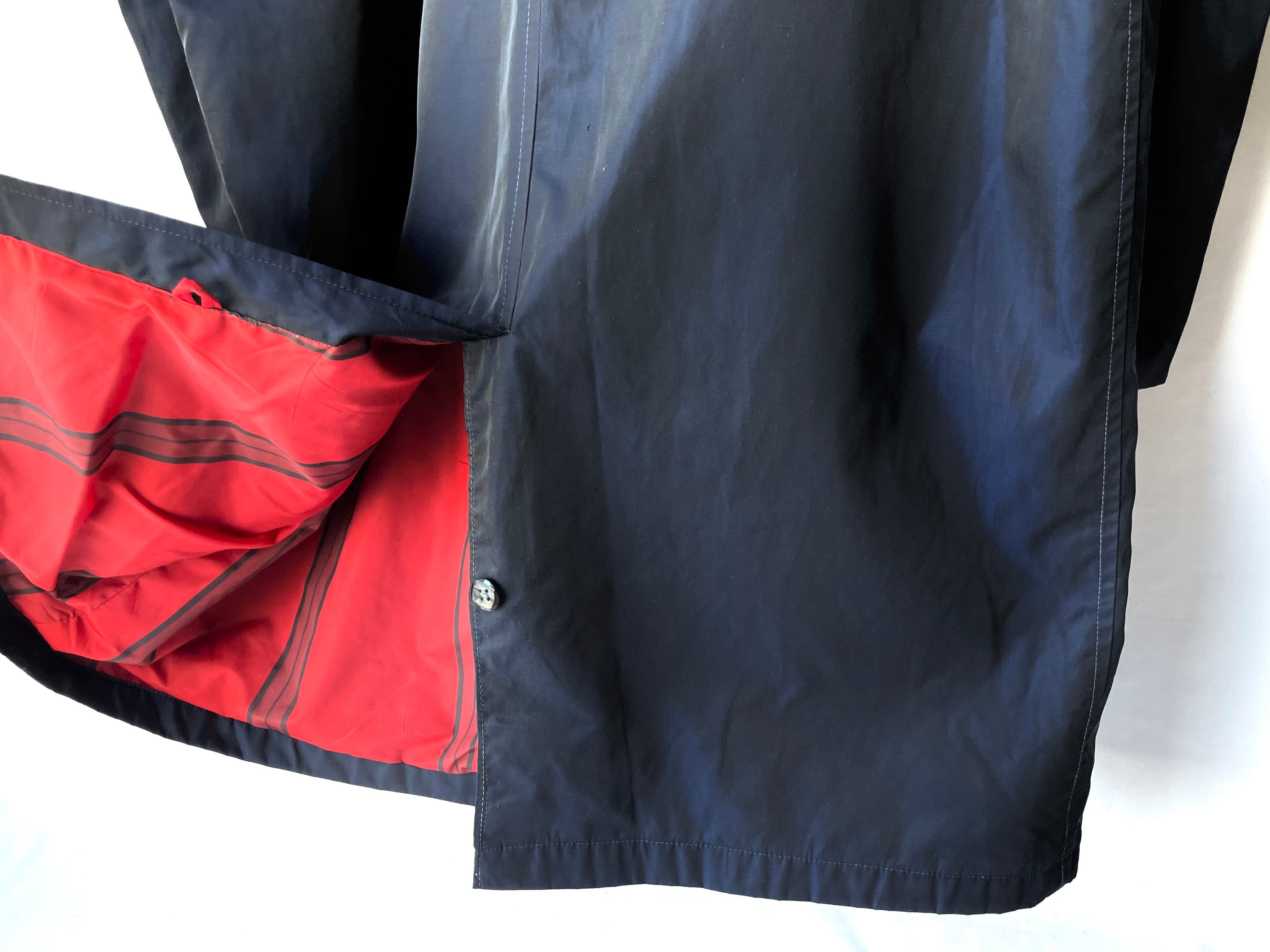 This iridescent trench coat is rare for this era, but this coloring is hard to find and gives it a more modern impression.