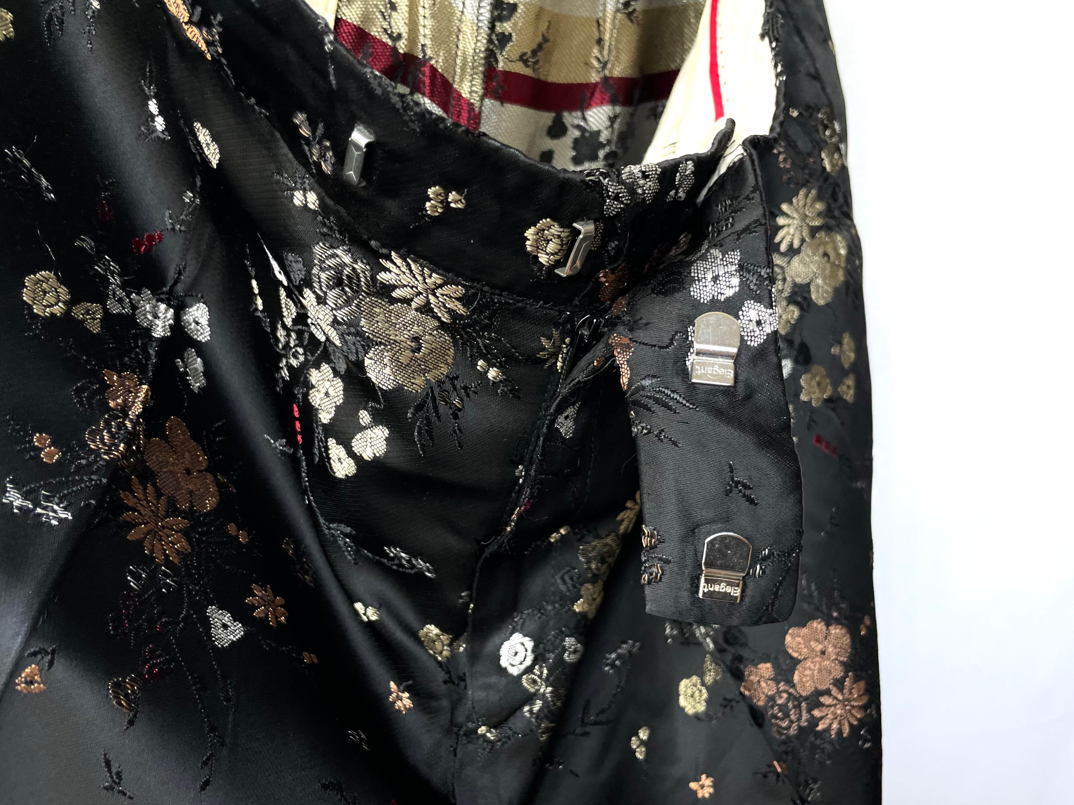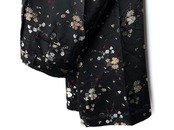 日本の着物の様な雰囲気もある、艶のある黒ベースの小花柄。