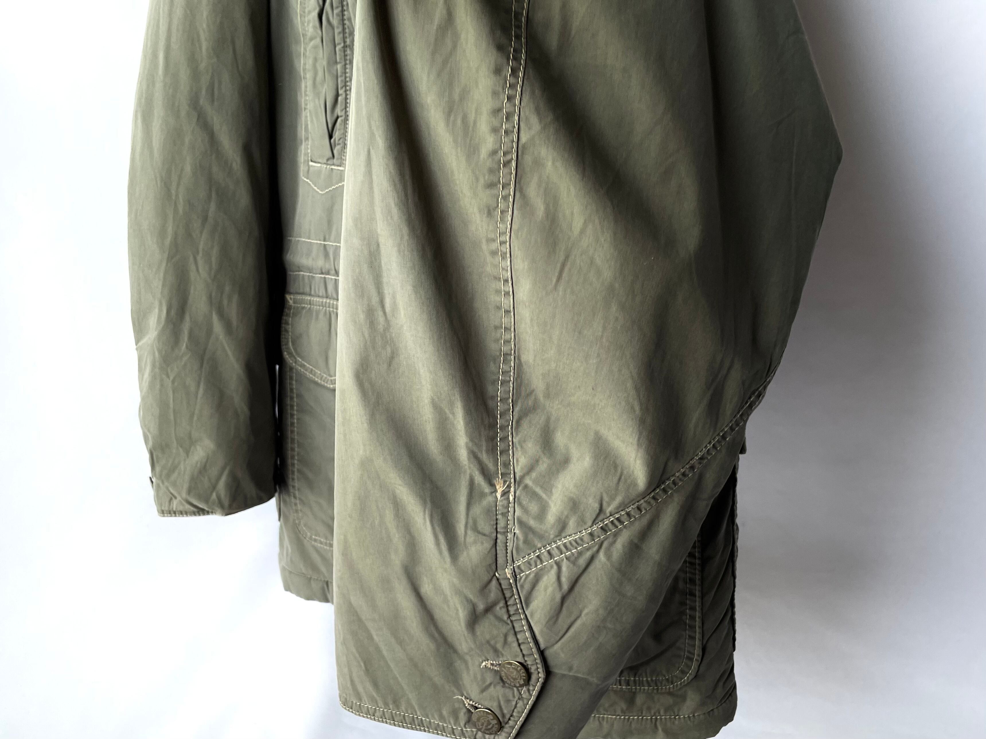 This piece is likely based on gunner-style military wear, but with a unique twist, perhaps tailored for everyday outdoor wear.
