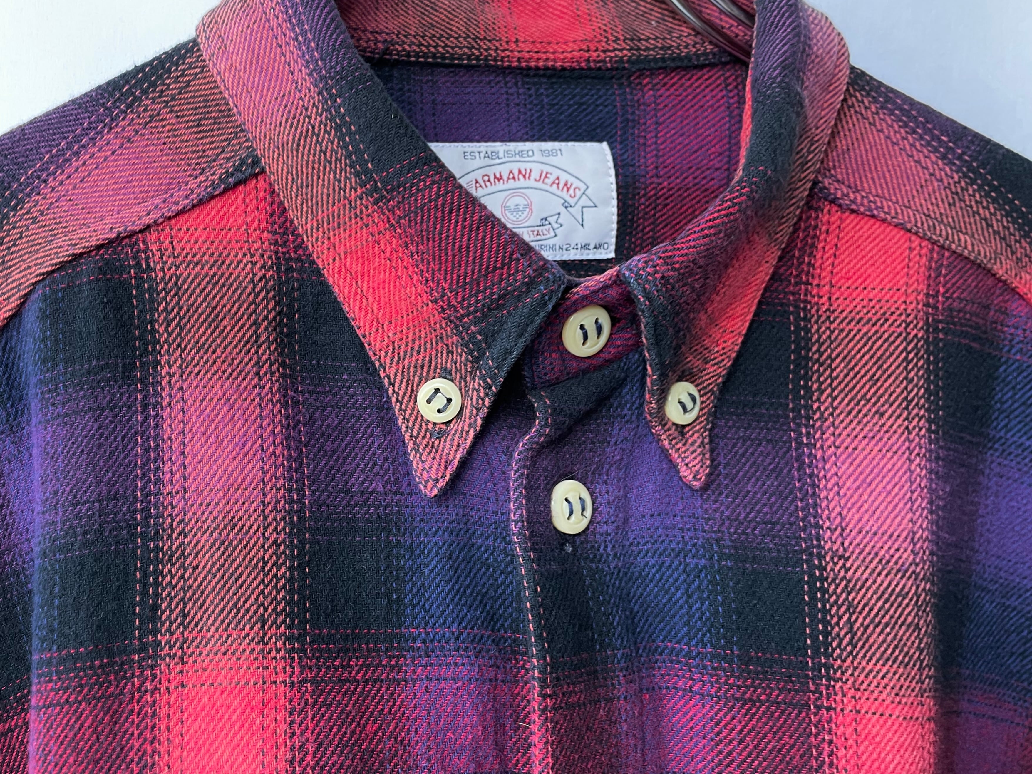 肉厚で柔らかなコットンネルに、古いワークウェアのに見られる様なぽてっとした形の4つ穴ボタン。