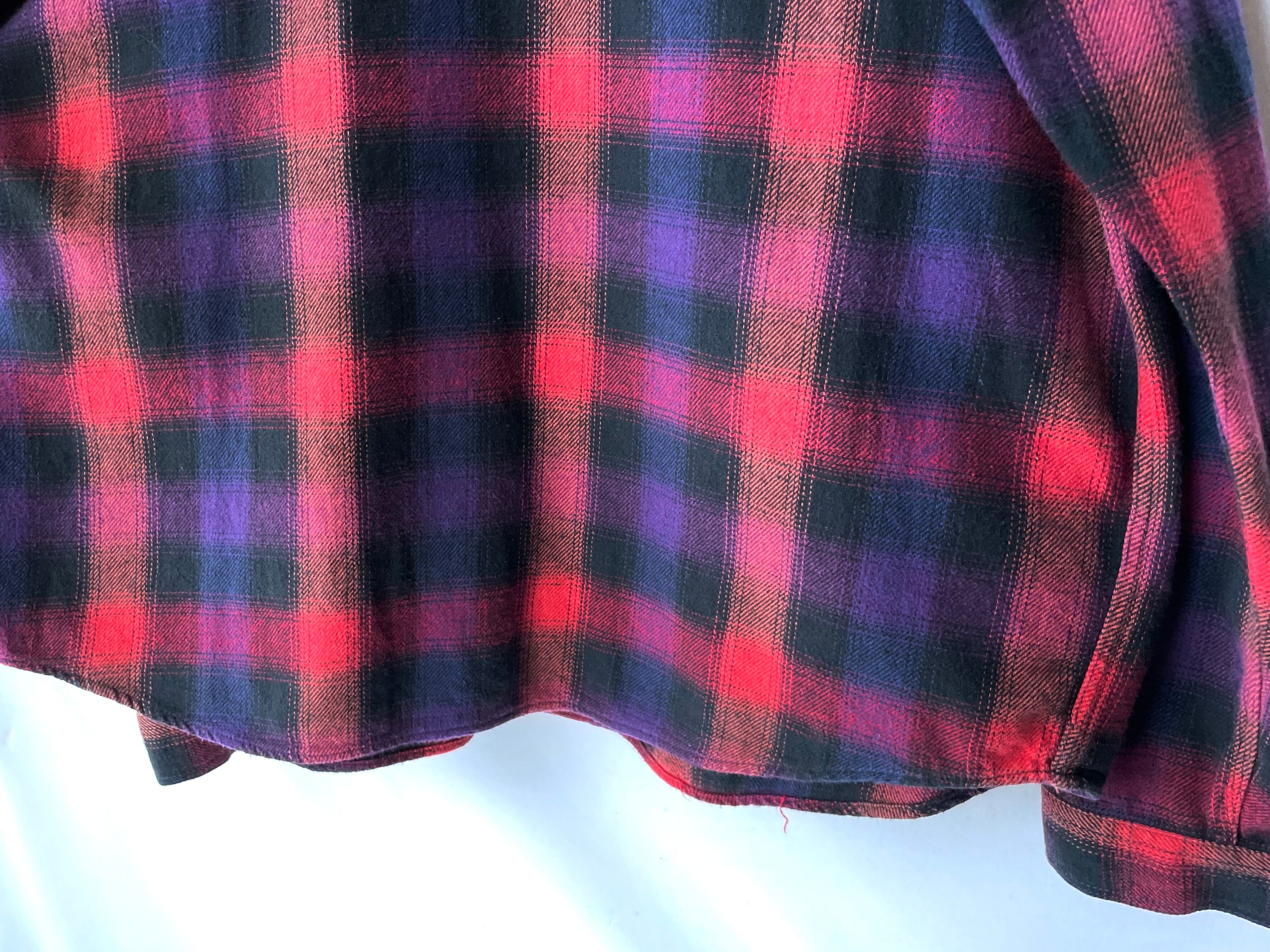 深い朱色/紫/黒の暗色のオンブレチェック。